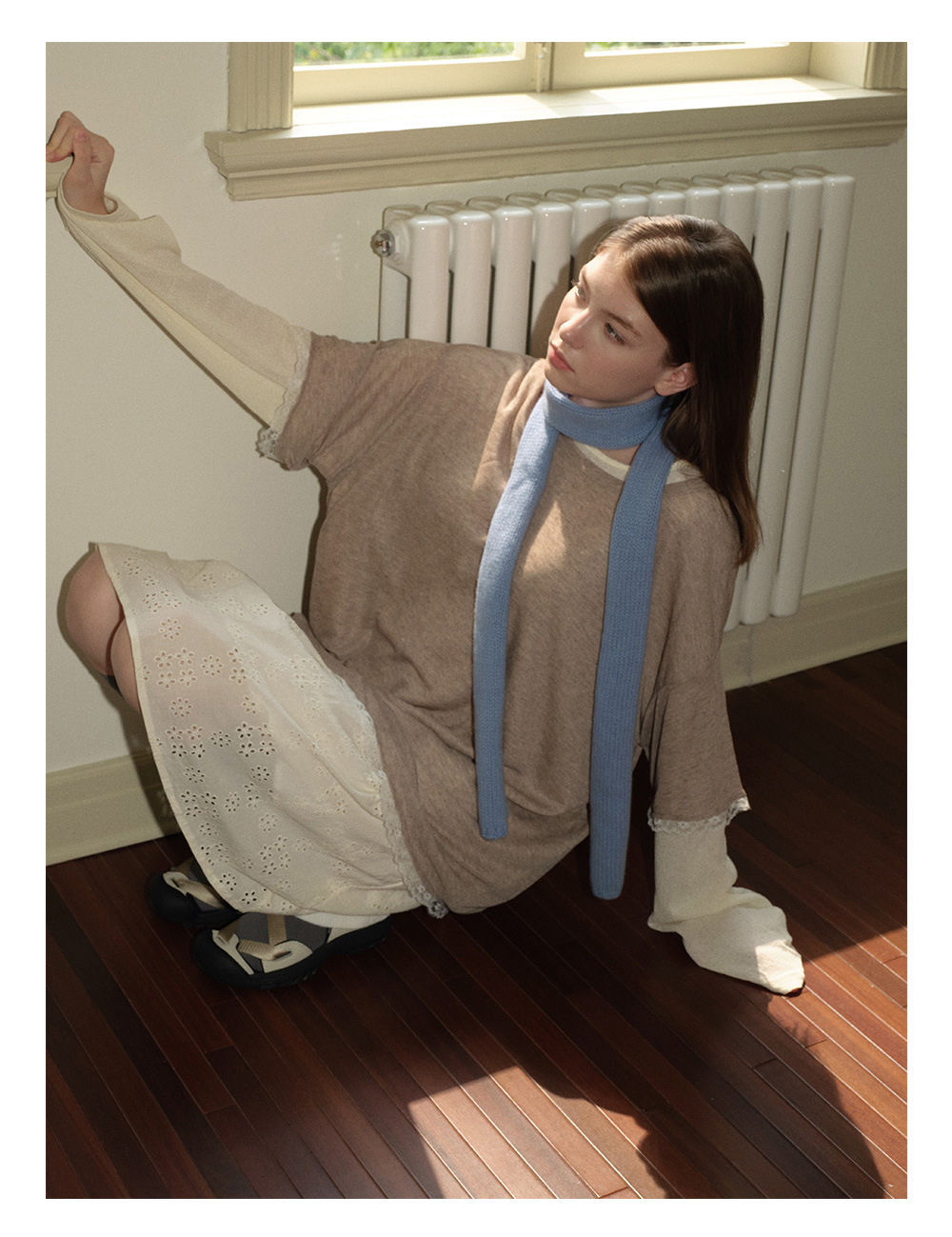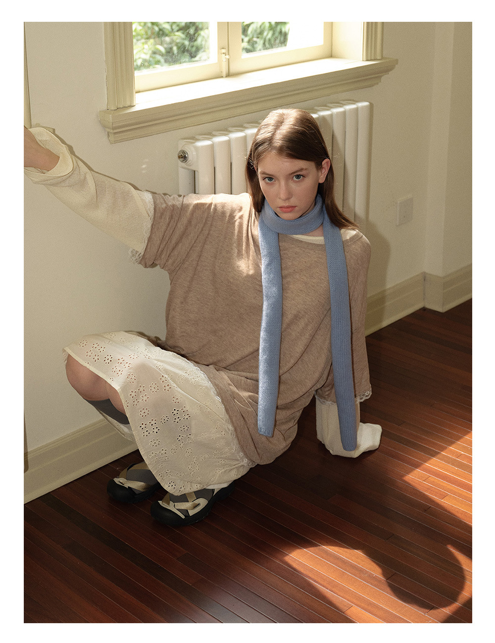 100% selected all-wool scarf women's autumn and winter fine sausage decoration soft solid color wool knitted scarf