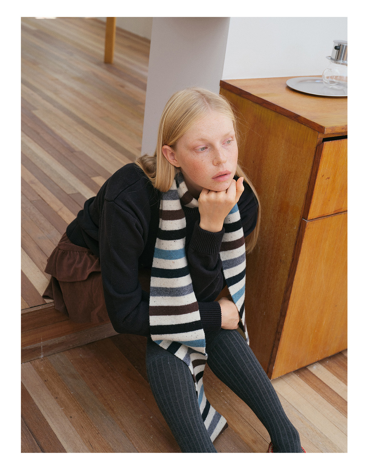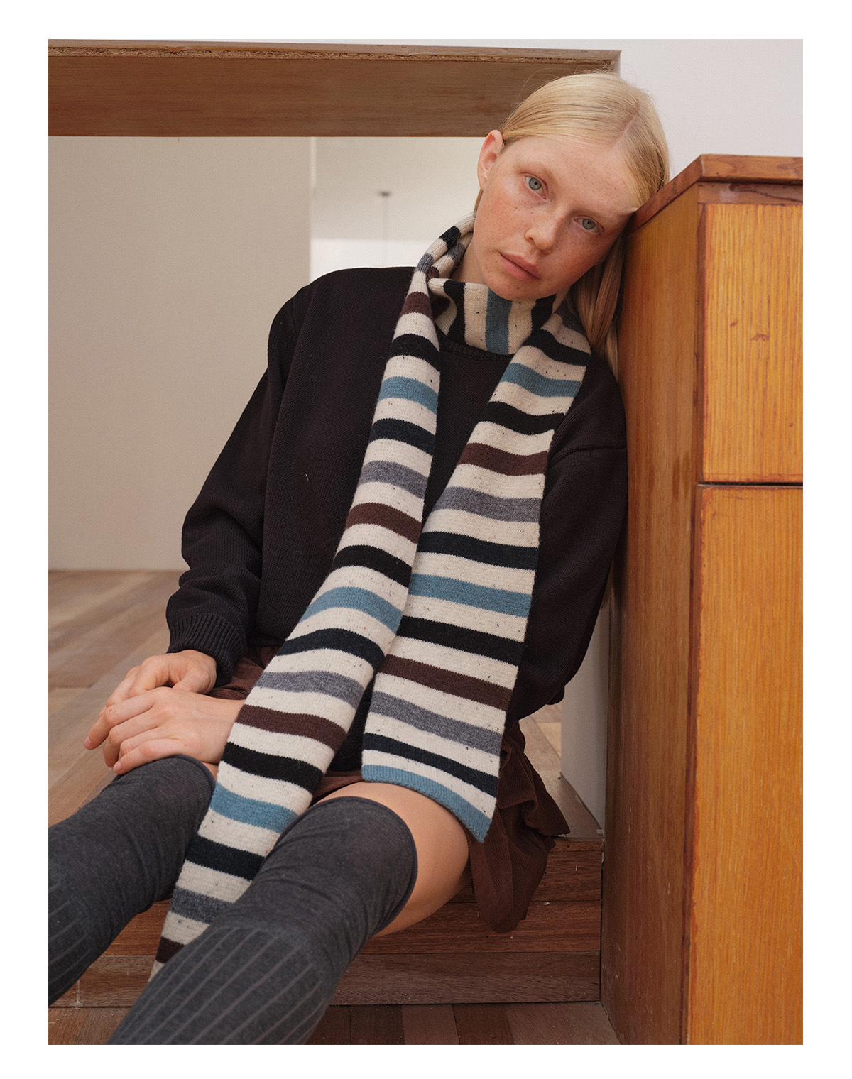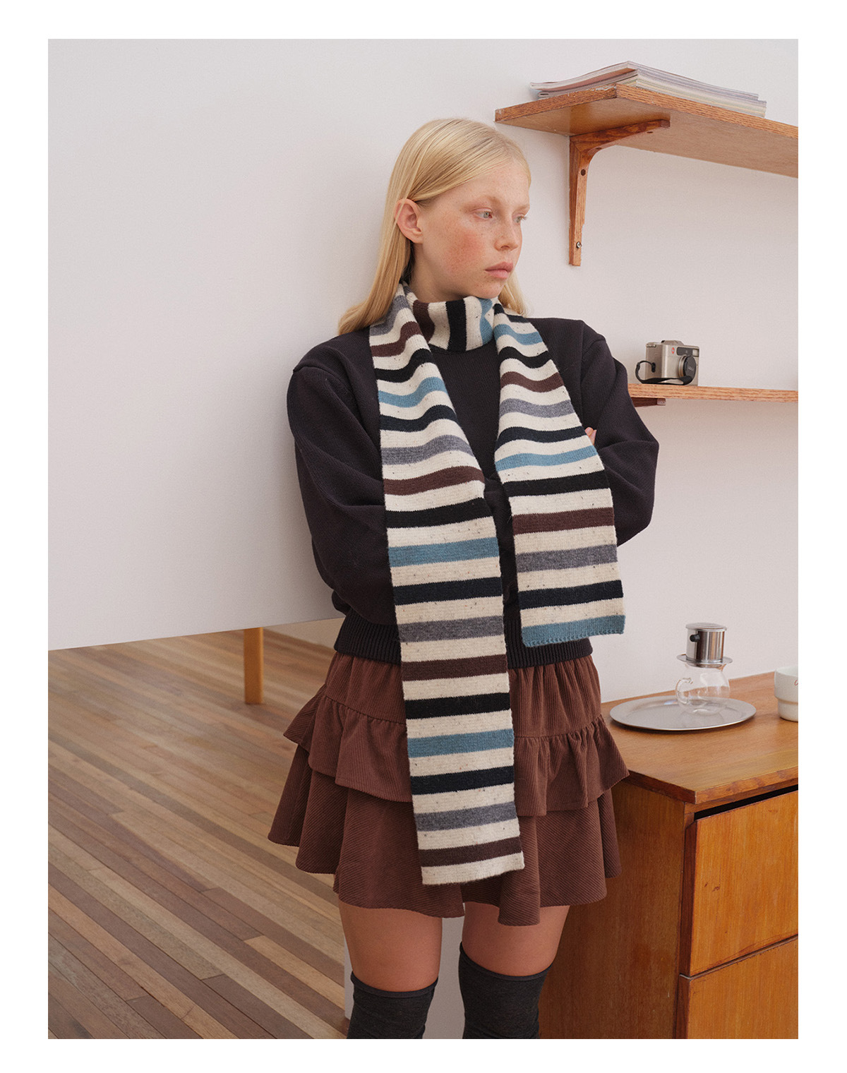 100% selected pure cotton wool striped scarf women's autumn and winter with contrasting colors thin and narrow long soft scarf
