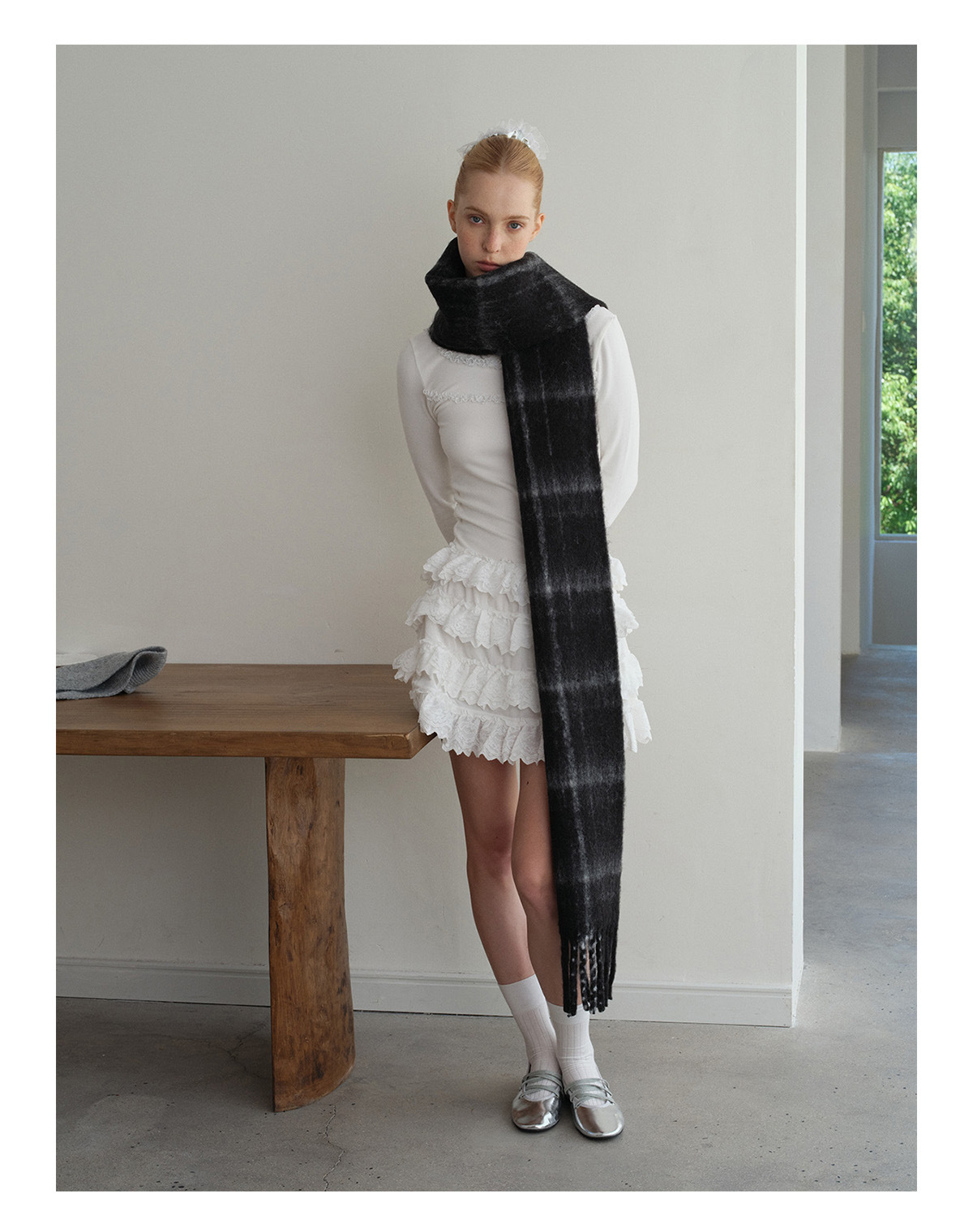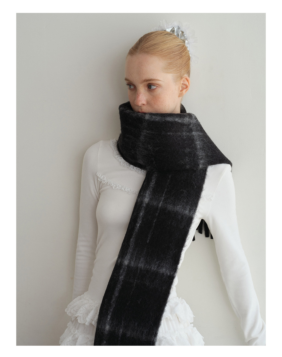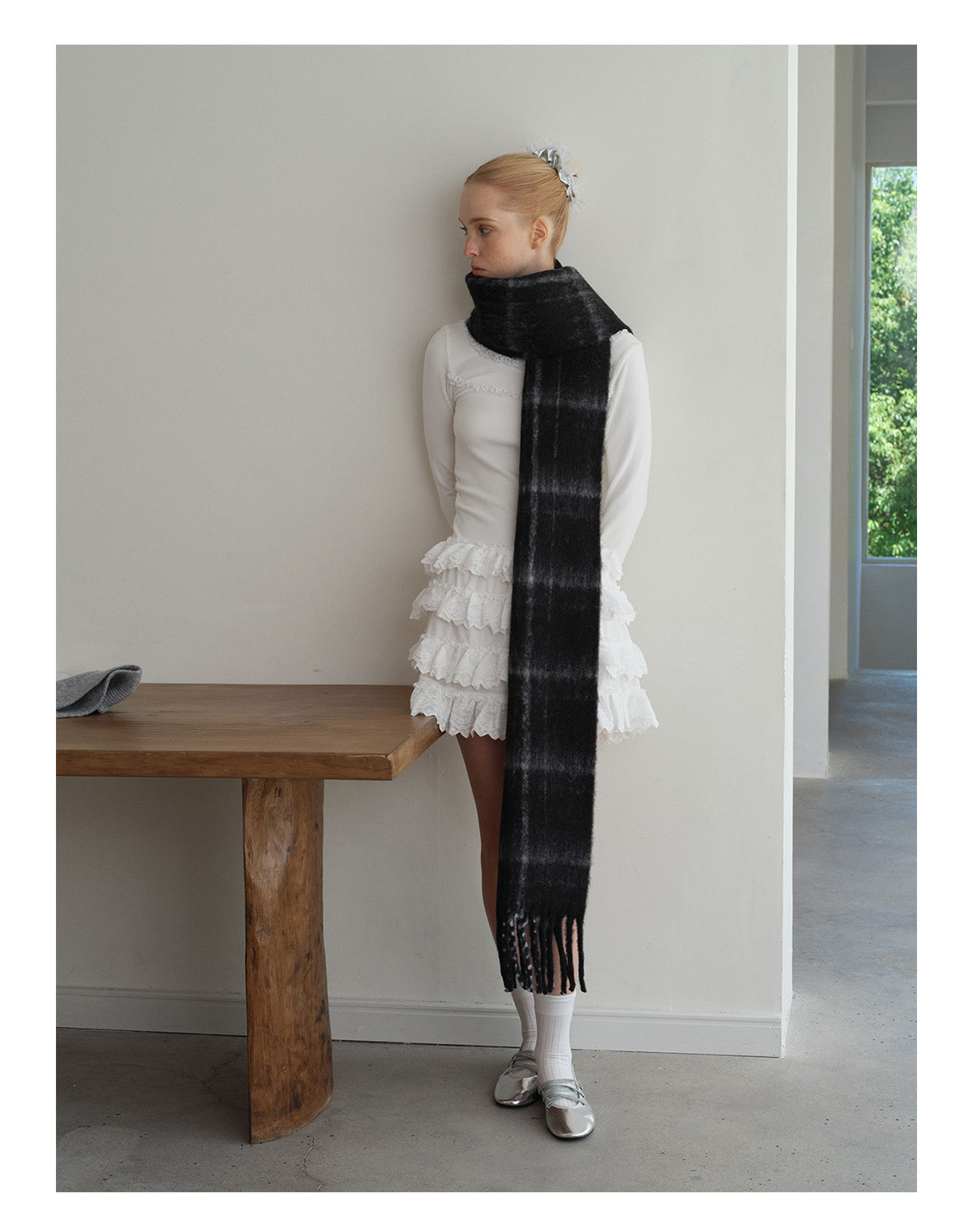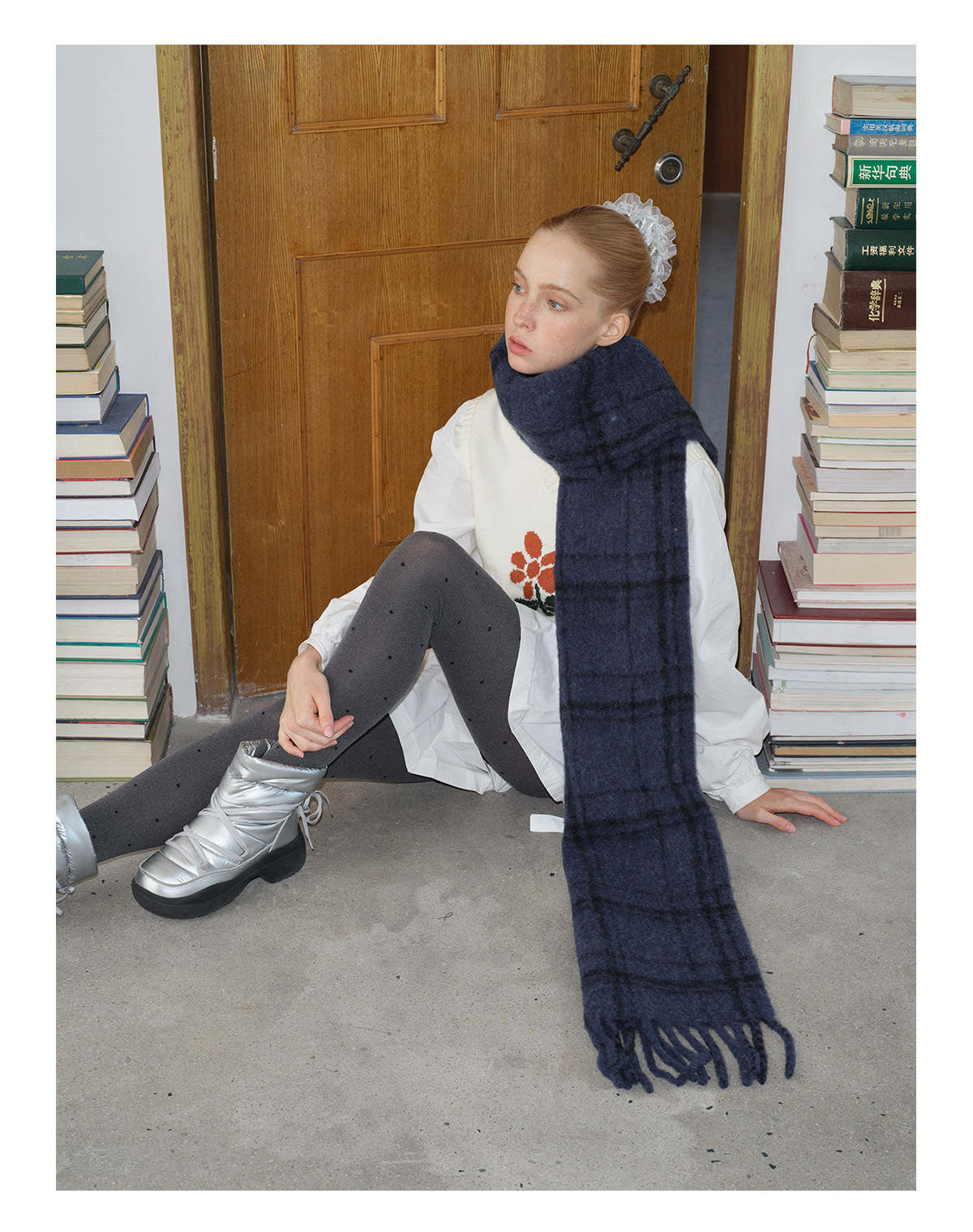 20% New Zealand wool blend neutral plaid scarf women's winter black retro plaid vibe long scarf