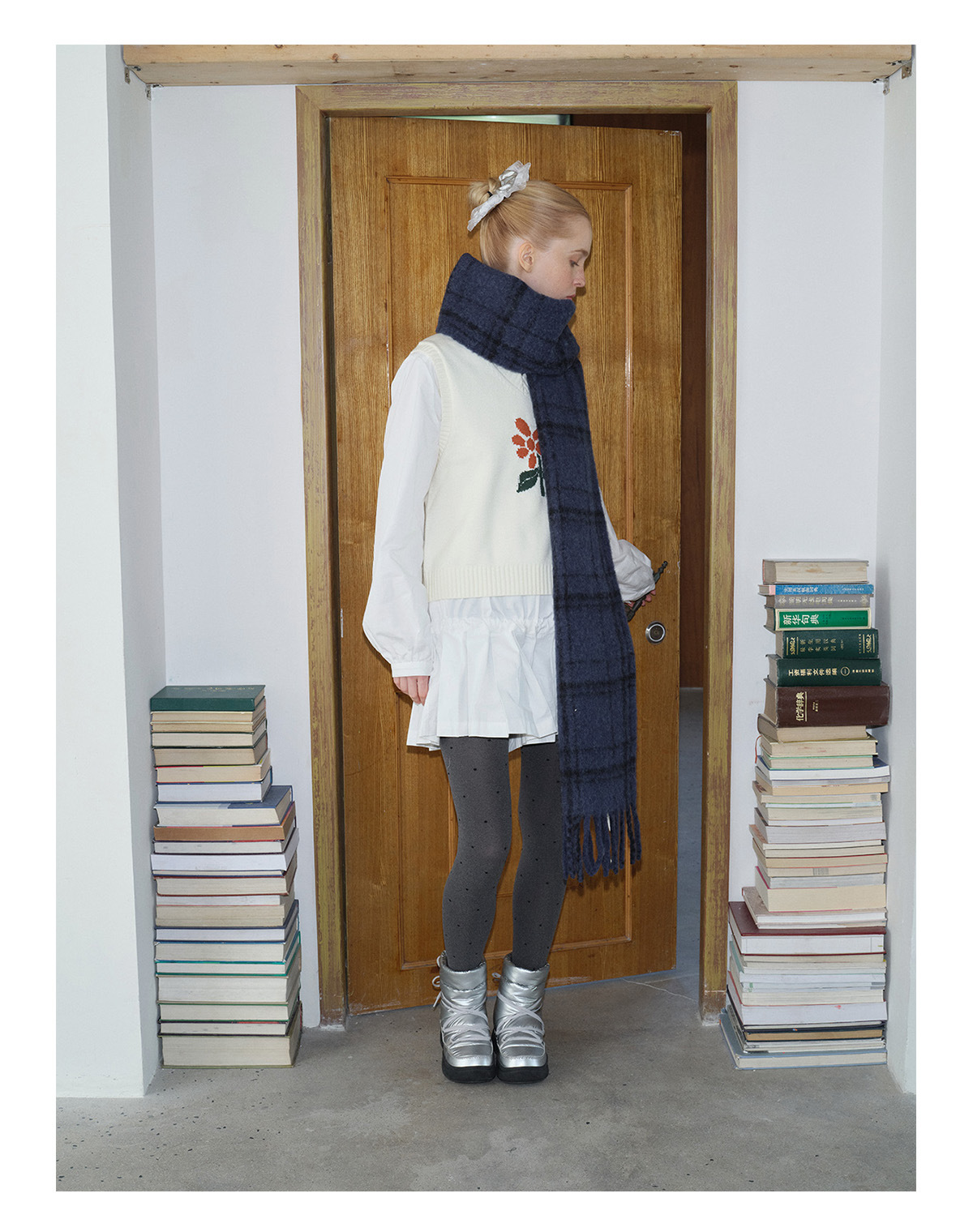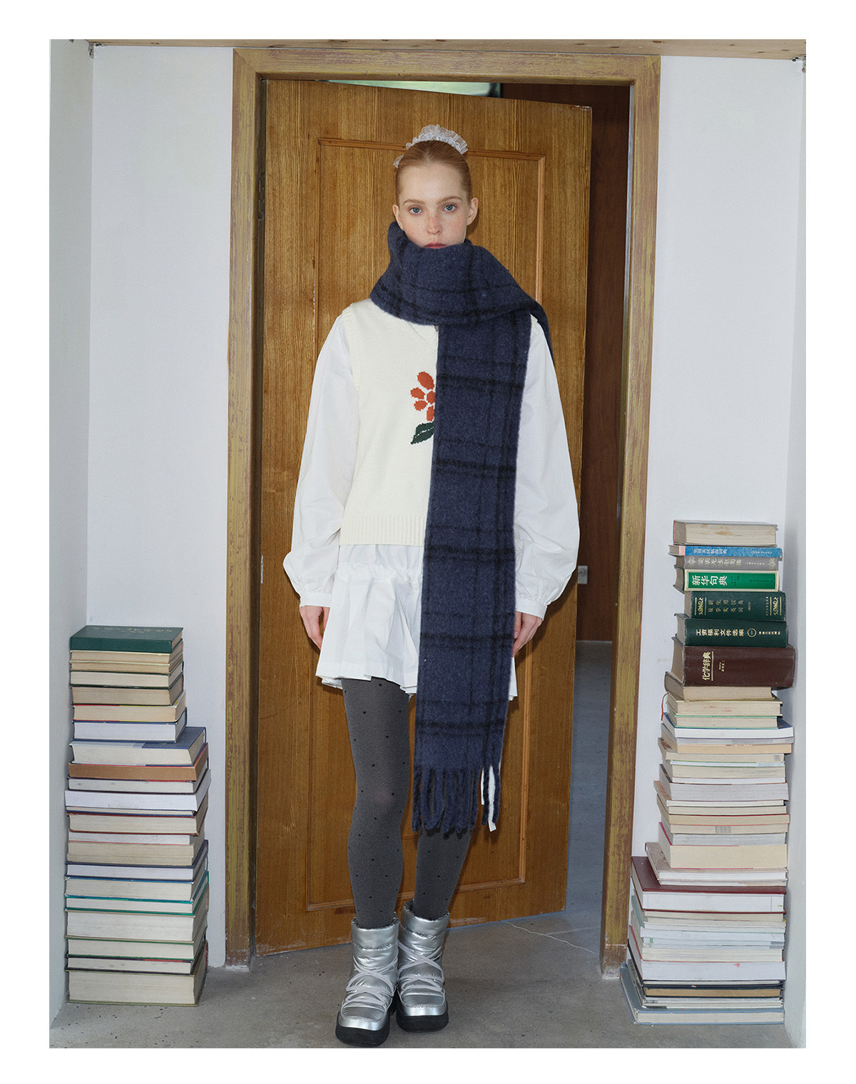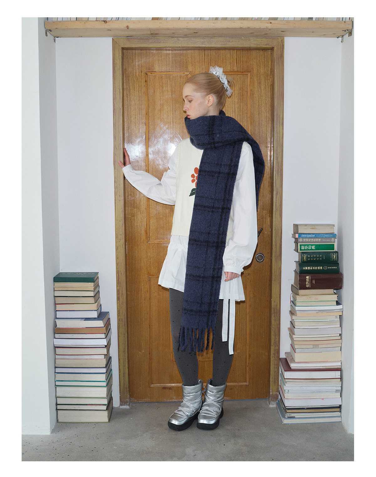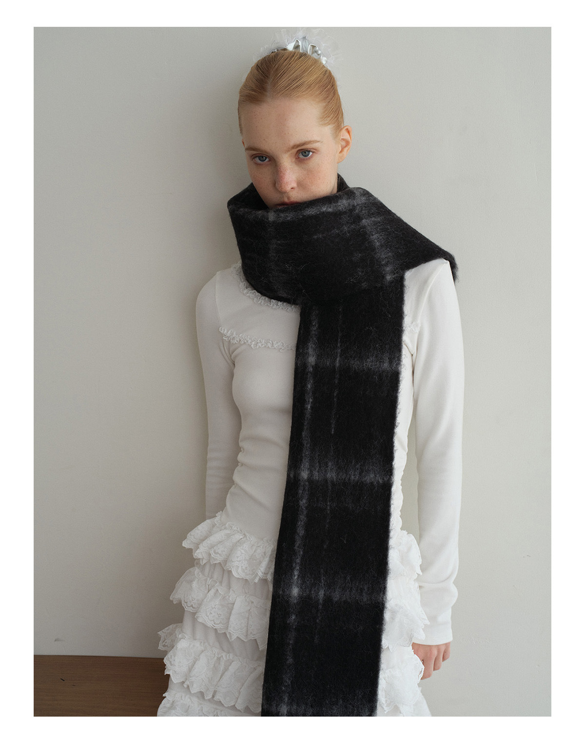 20% New Zealand wool blend neutral plaid scarf women's winter black retro plaid vibe long scarf