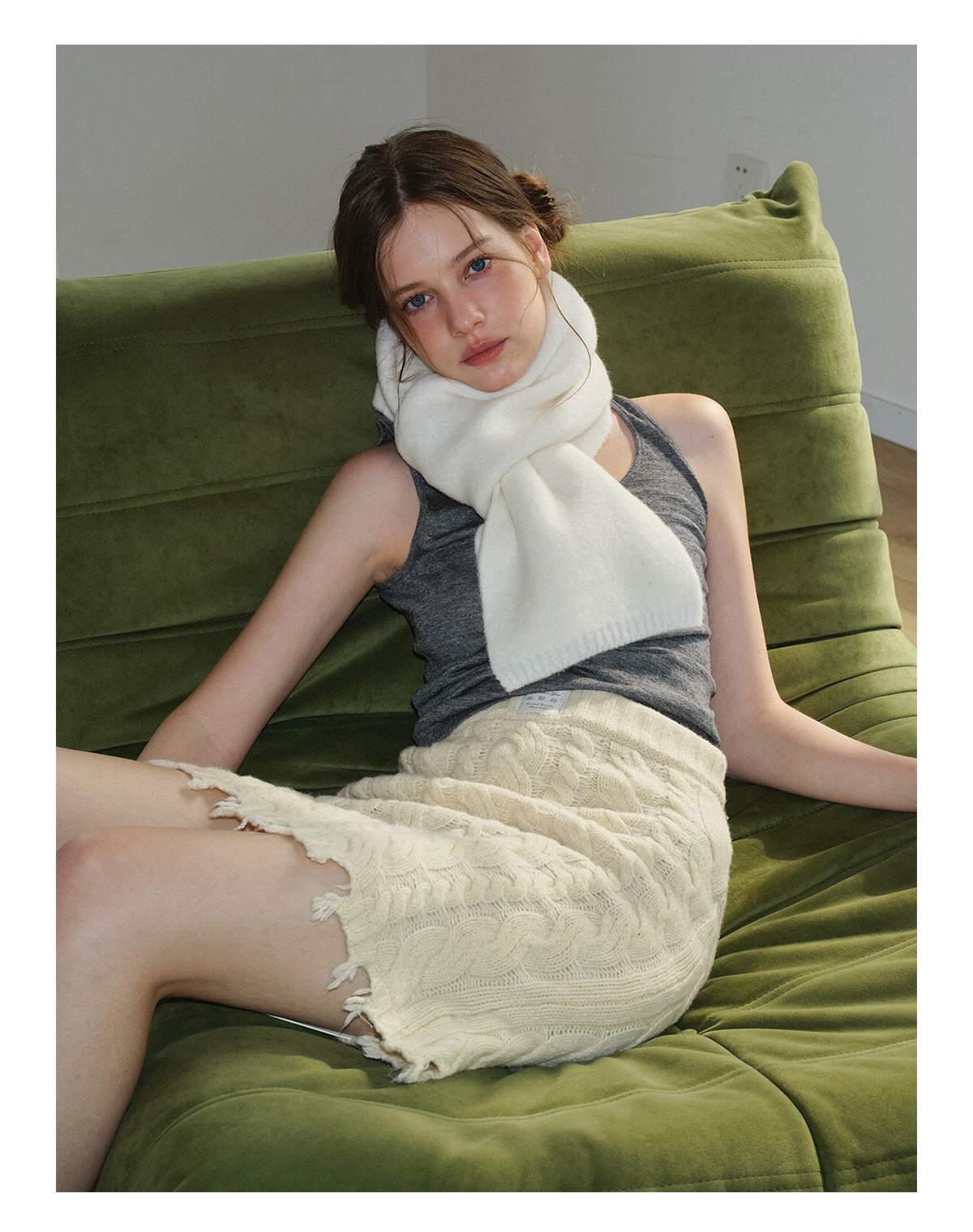 35% wool clip flower solid color knitted scarf women's winter Korean girl atmosphere soft wool scarf