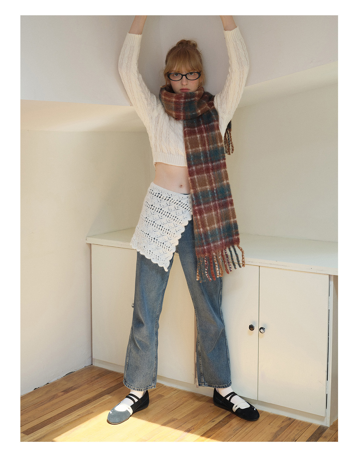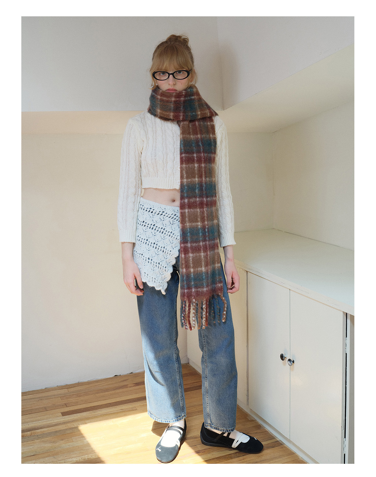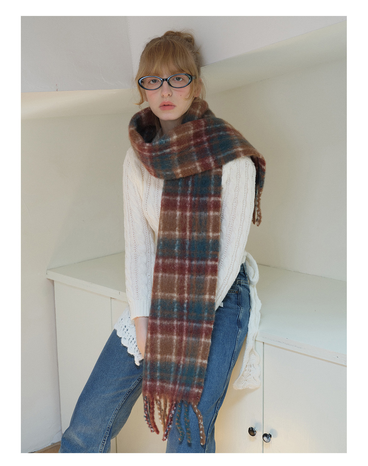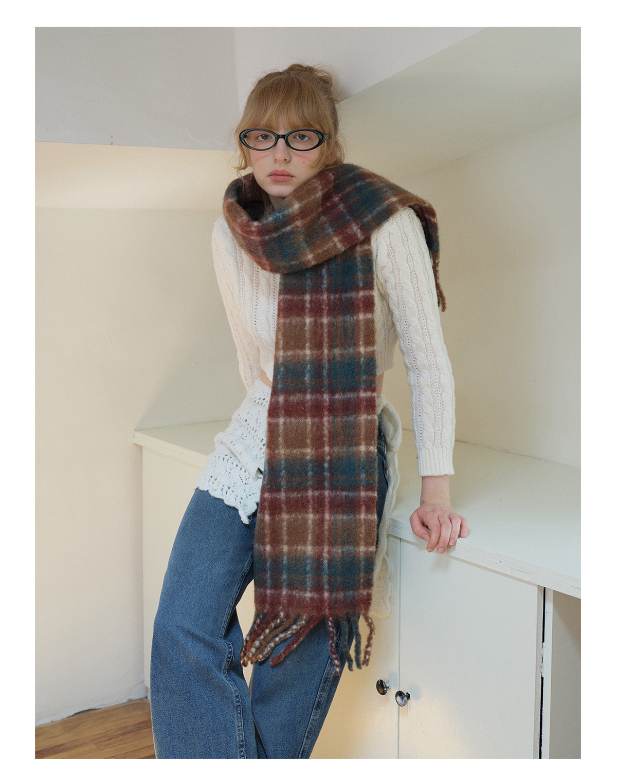 6% mohair 40% wool retro plaid scarf women's winter millennium retro soft vibe scarf