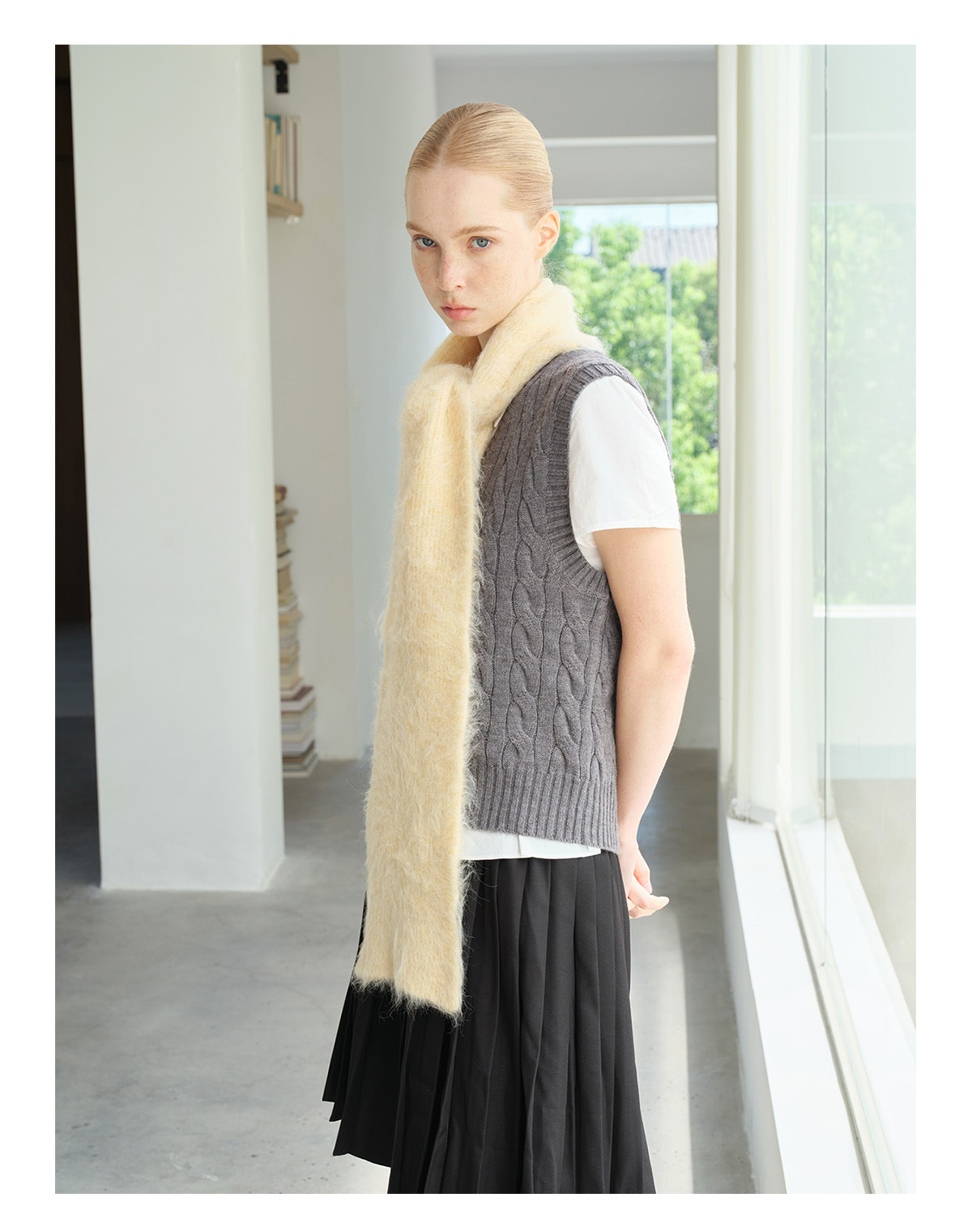 78% Alpaca Alpaca Warm Classic Solid Color Knitted Scarf Women's Winter Hairy Scarf