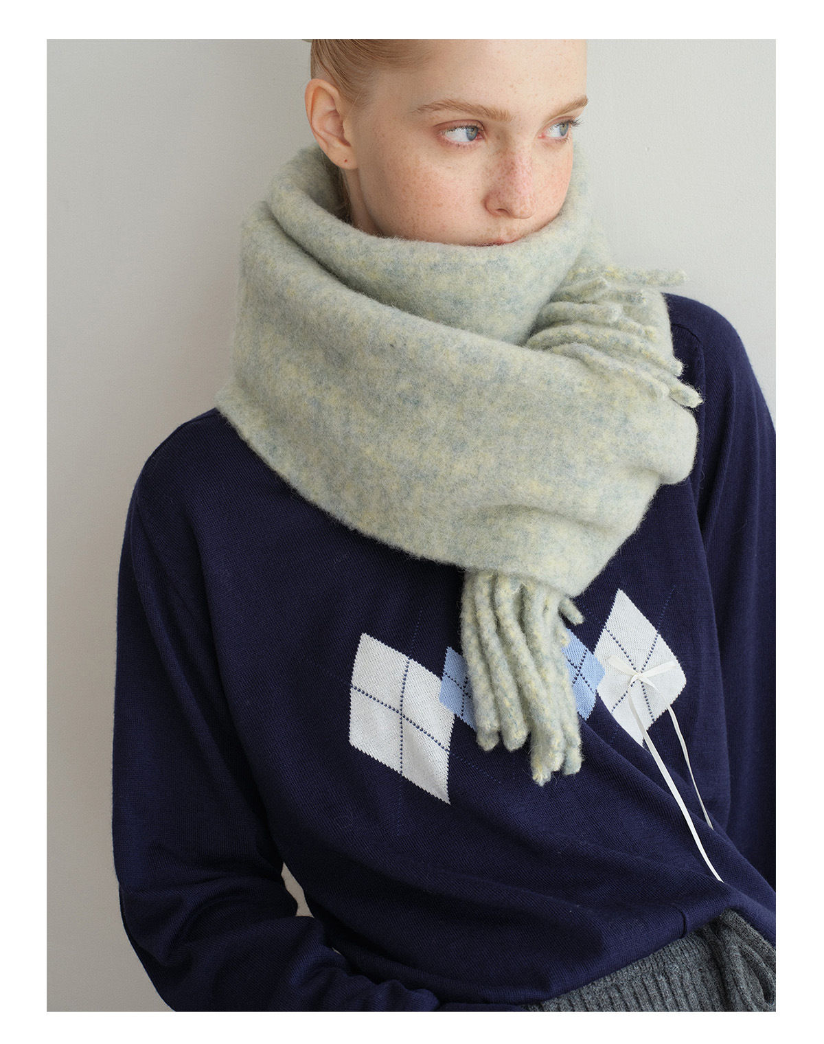 82% Duncan wool clip flower solid color scarf women's winter Korean atmosphere thickened fringed shawl scarf