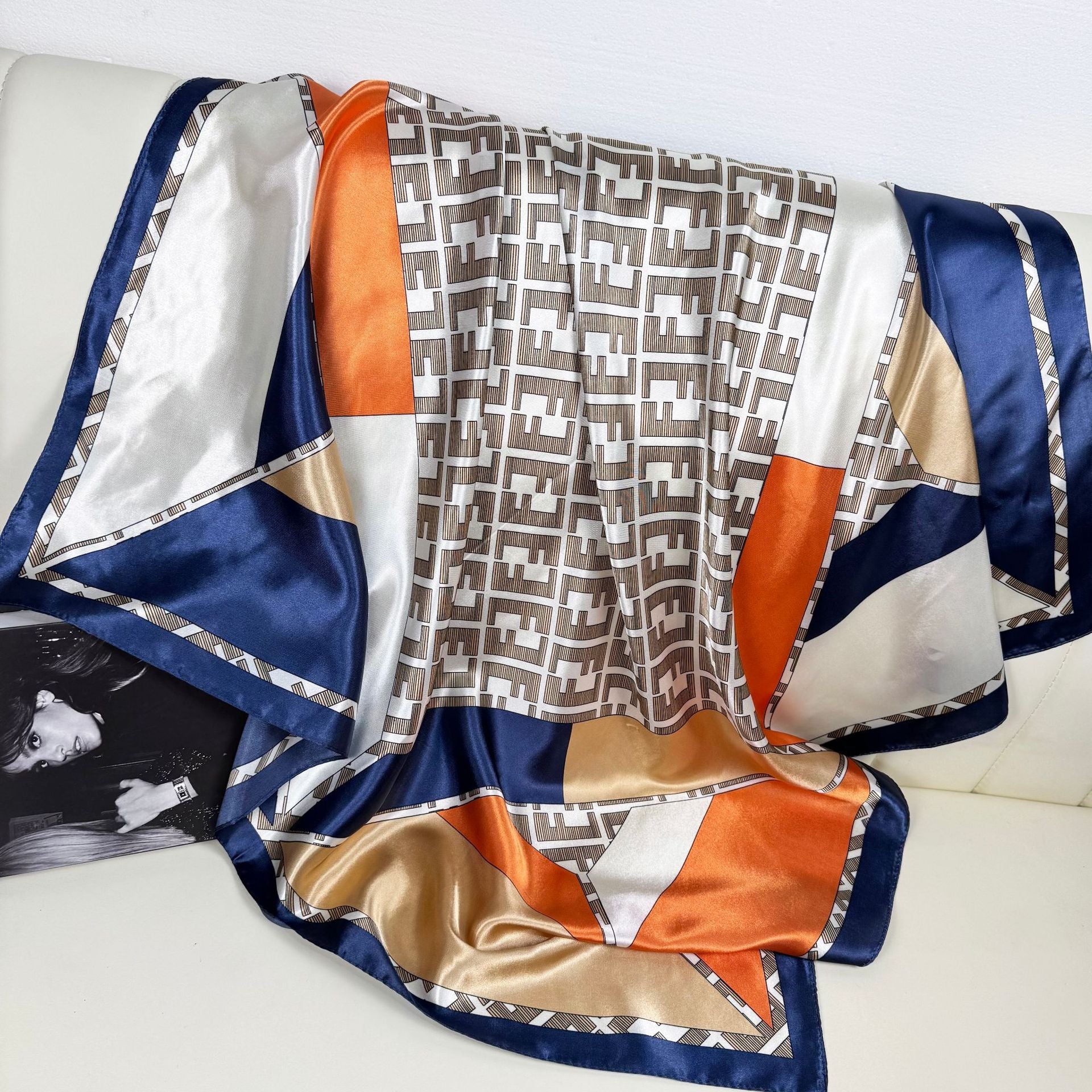 90Cm satin square scarf, European and American women's headscarf, printed Middle Eastern scarf, decorative scarf