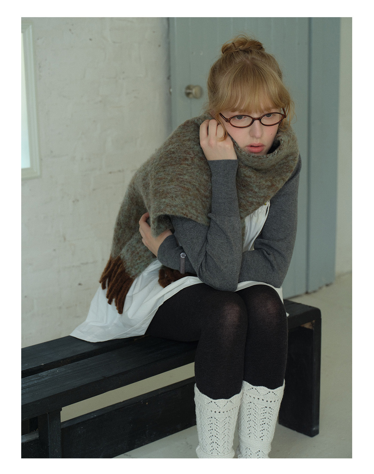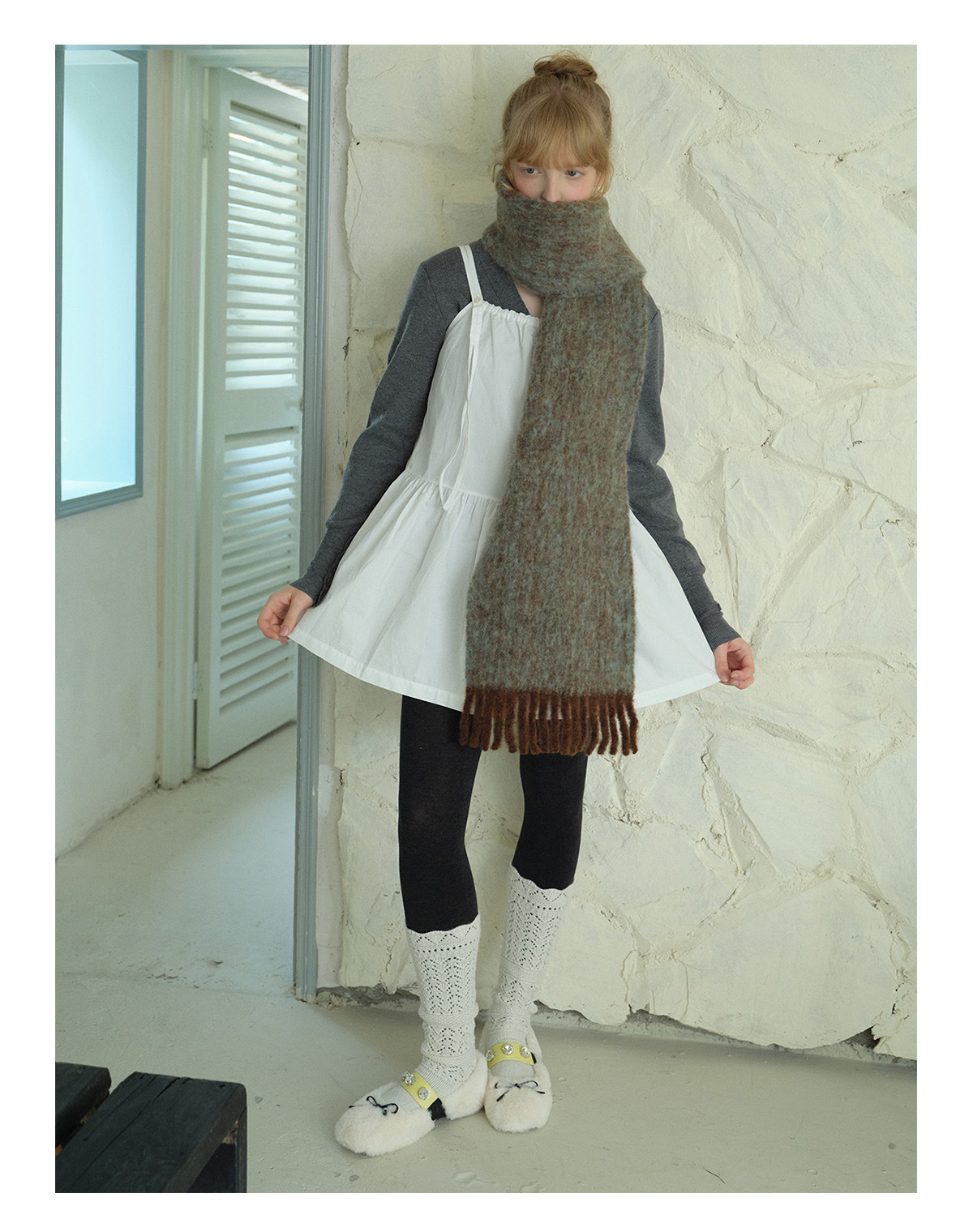 Alpaca wool blended tassel contrasting scarf women's autumn and winter Korean atmosphere scarf enlarged shawl
