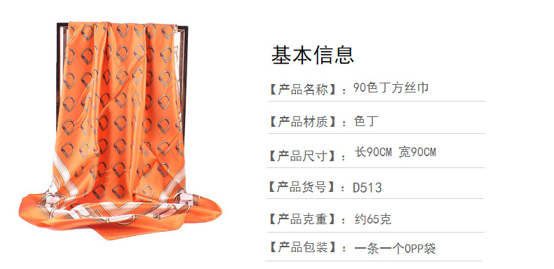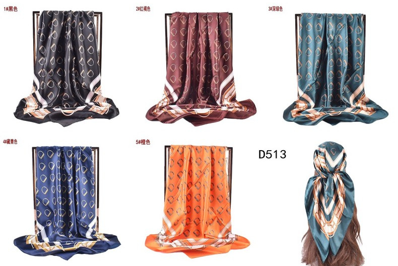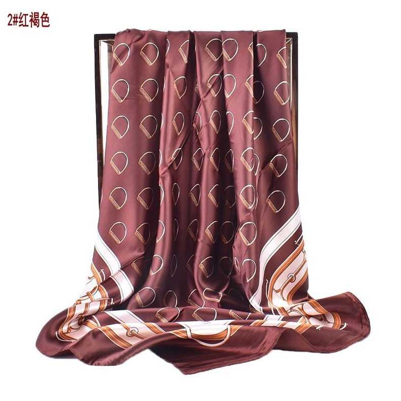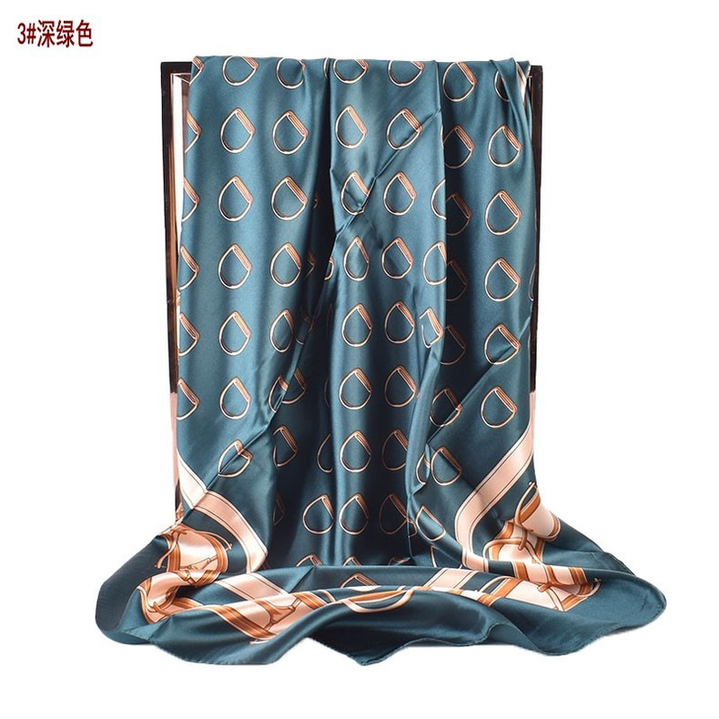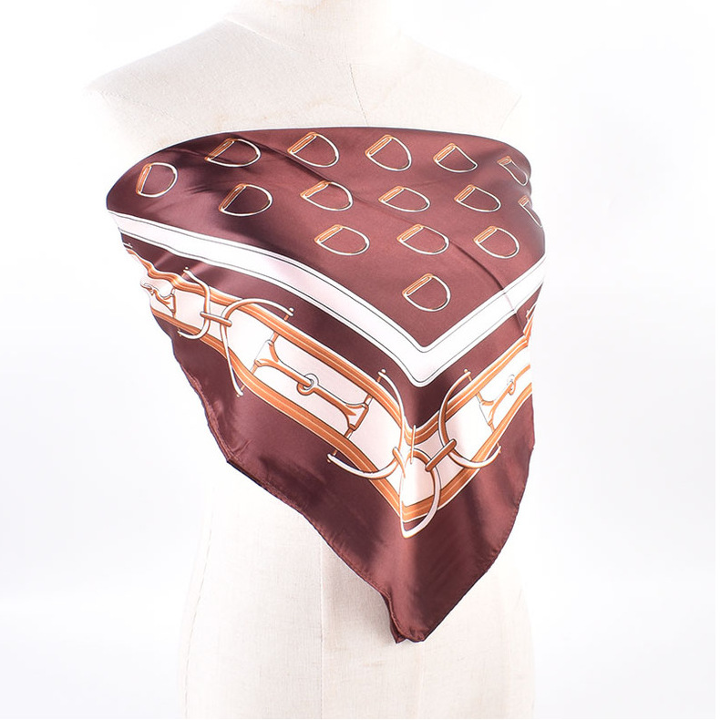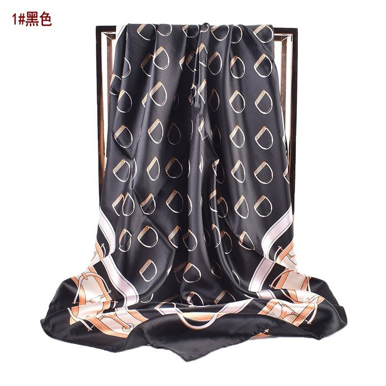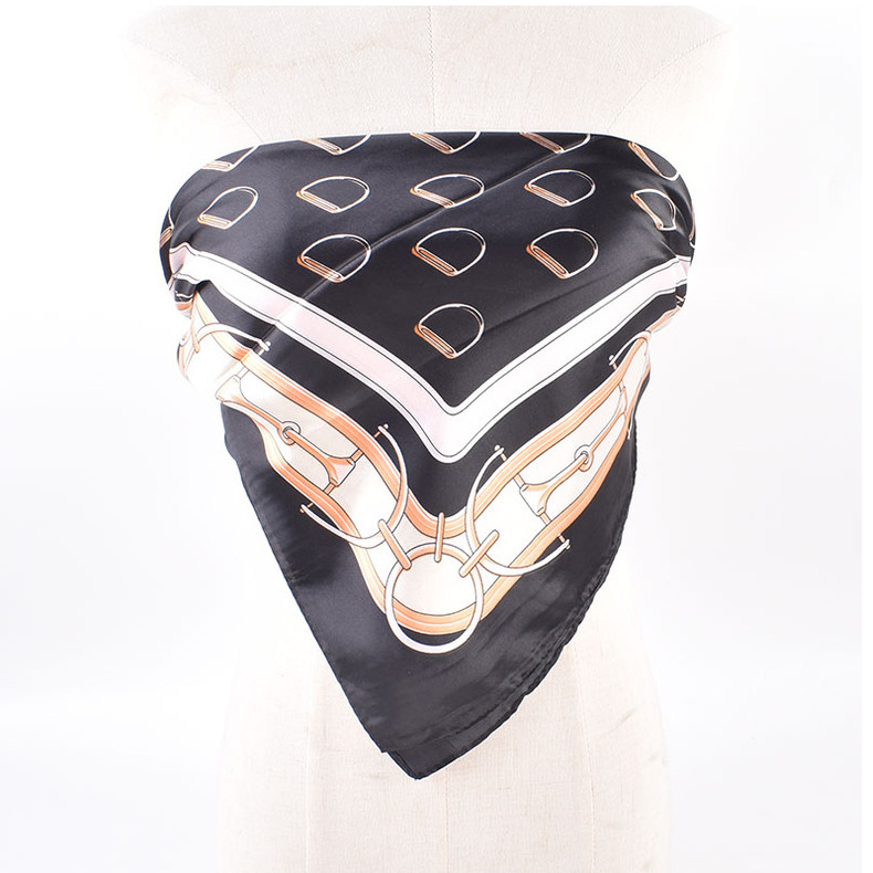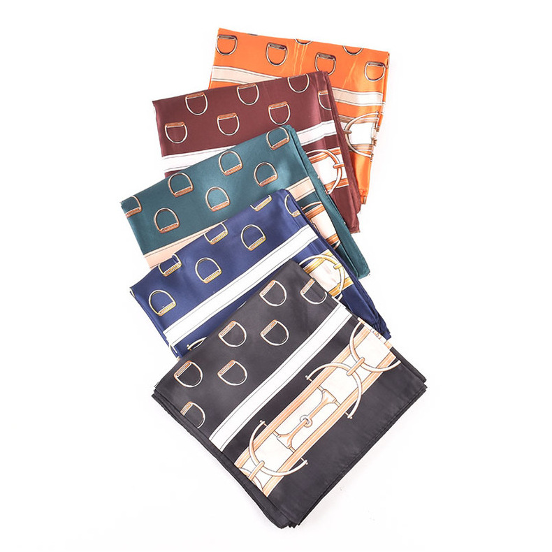 Autumn and winter new scarf saddle buckle accessories printed light luxury silk scarf 90 satin high-end square scarf