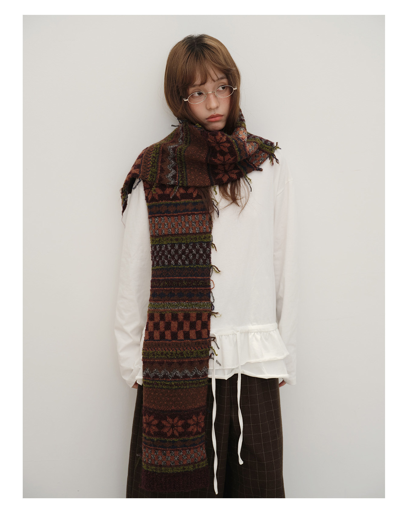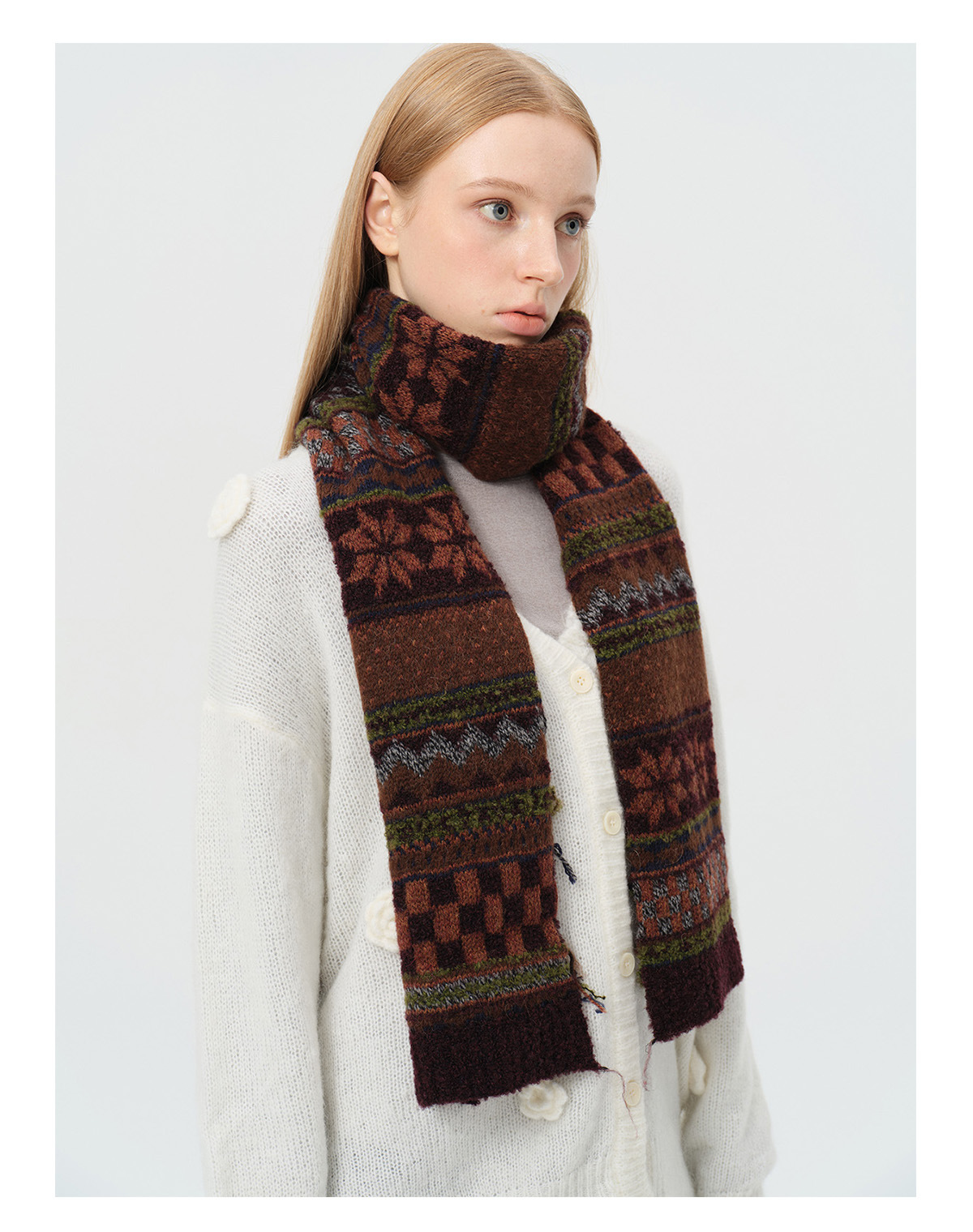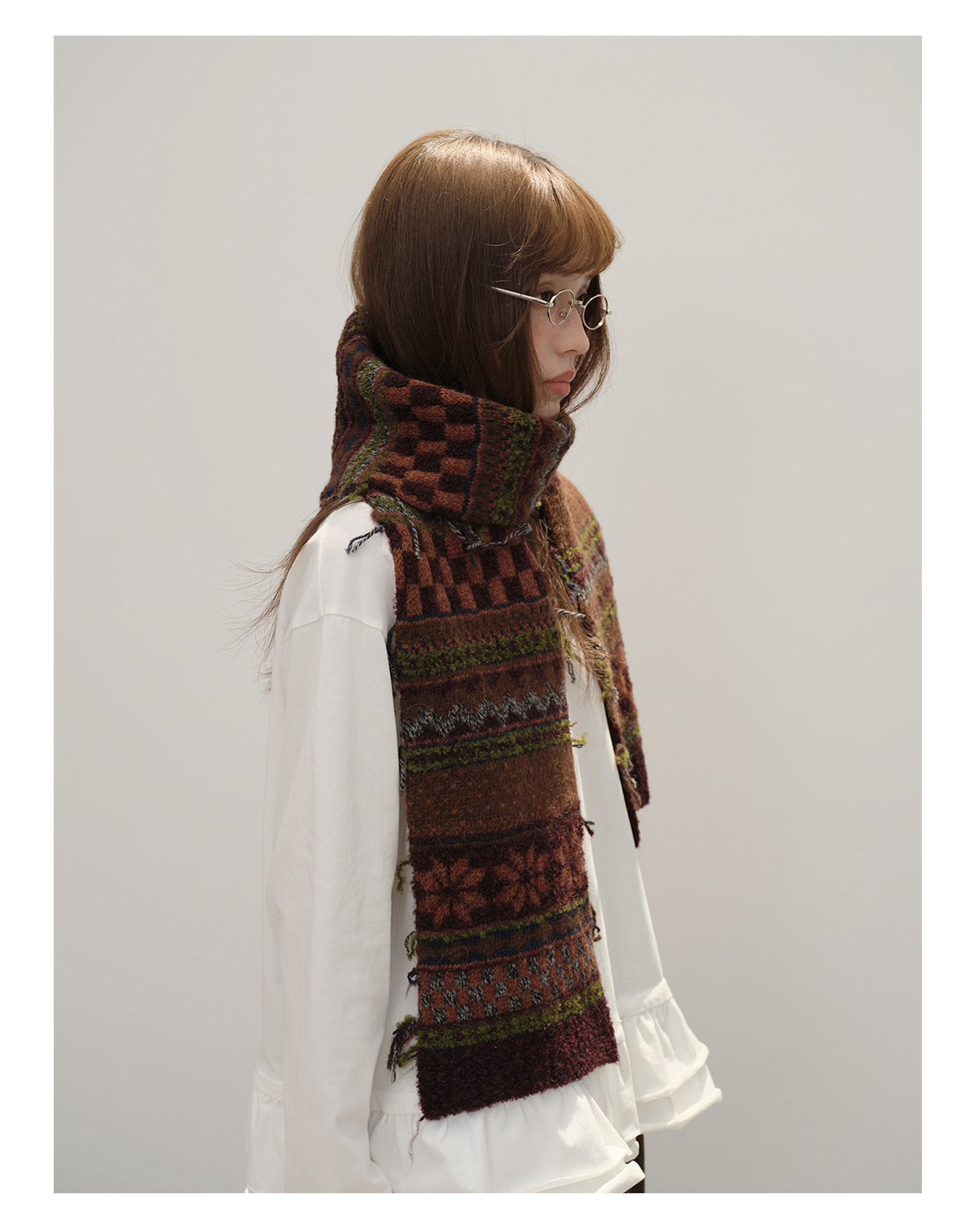 Designer 50% wool blended Fair Island jacquard rough edge knitted scarf women's winter vintage wool scarf