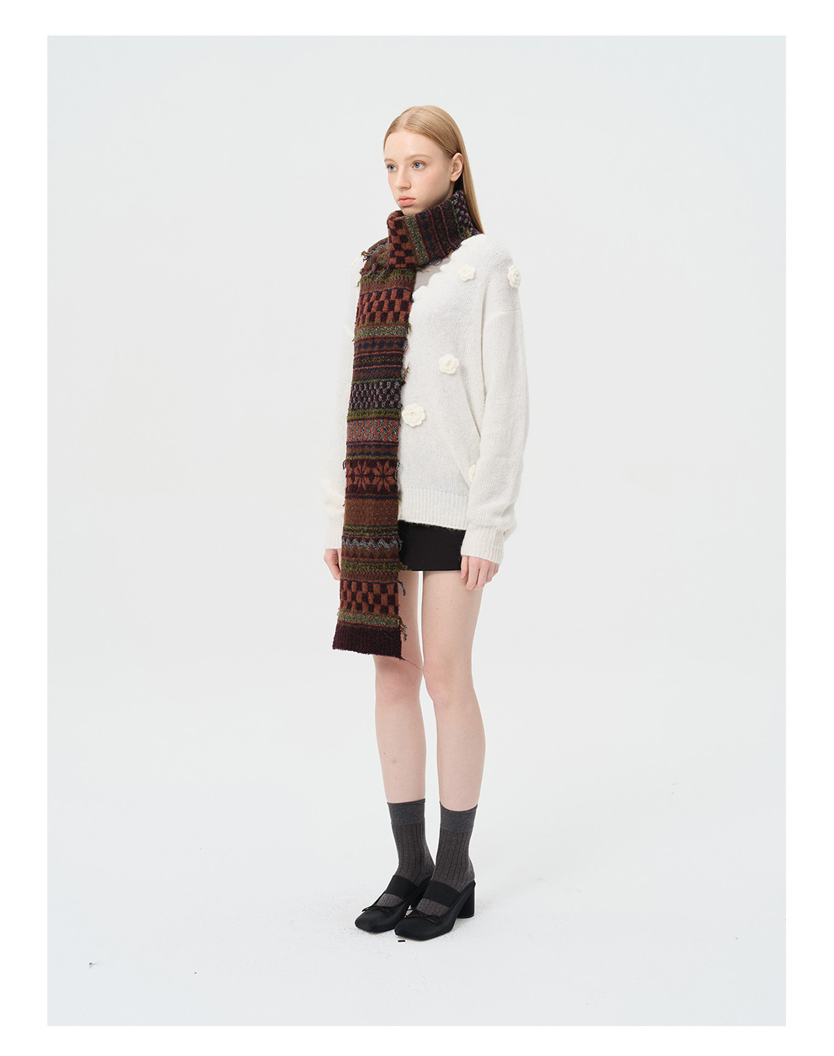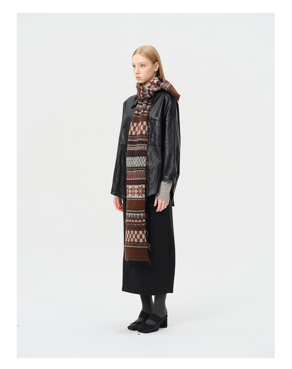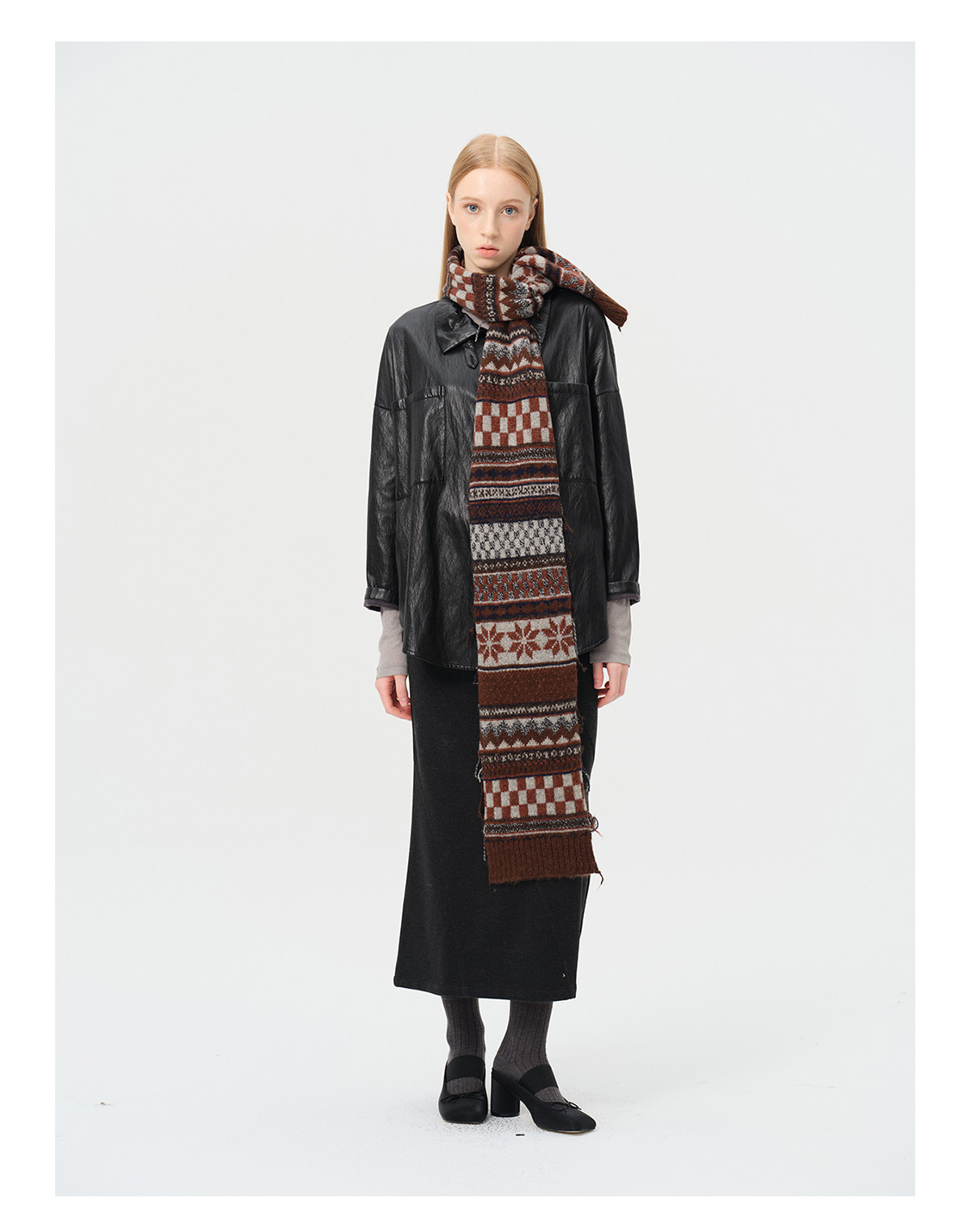 Designer 50% wool blended Fair Island jacquard rough edge knitted scarf women's winter vintage wool scarf