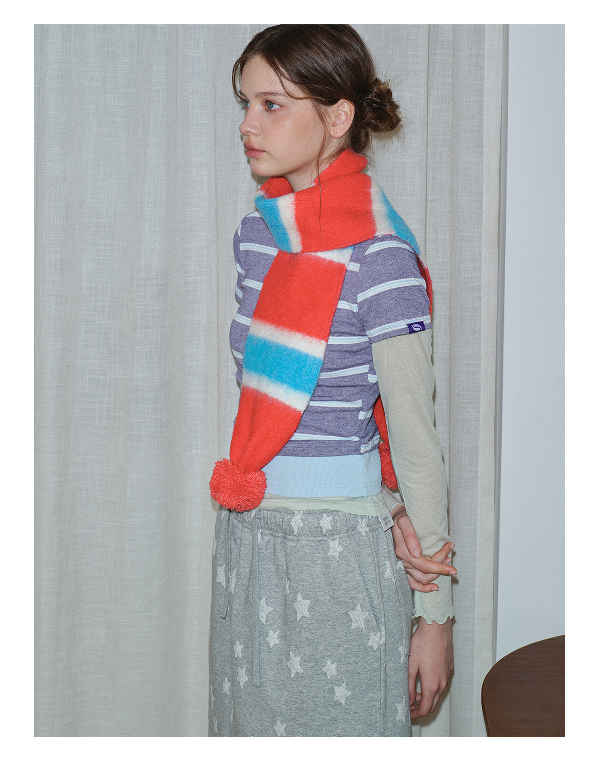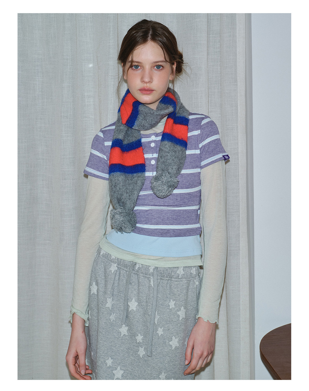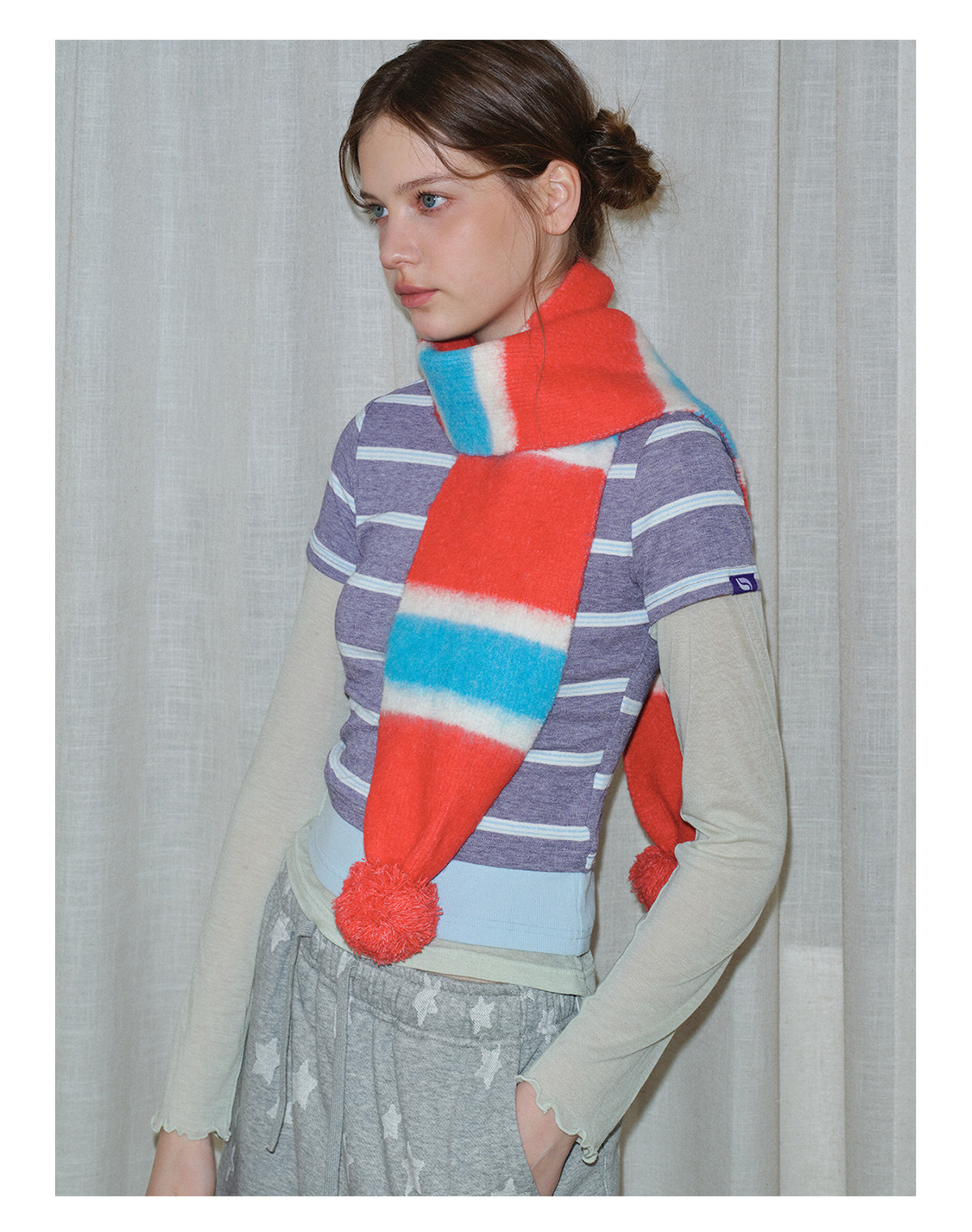 Designer wool-blend brushed striped knitted scarf female winter girl hanging hairball contrasting color Korean scarf
