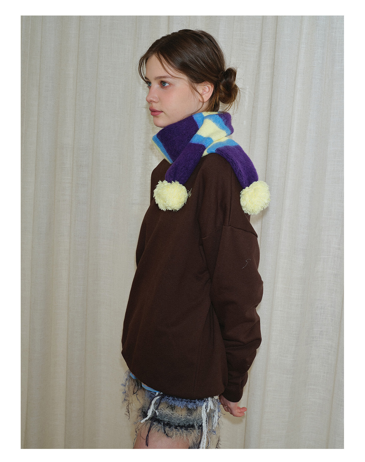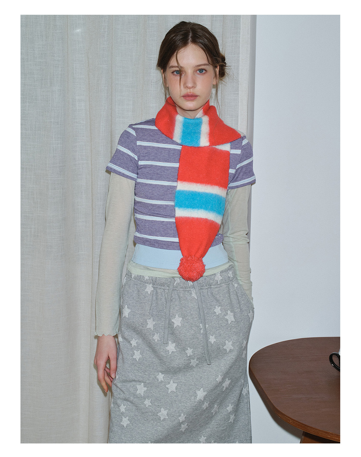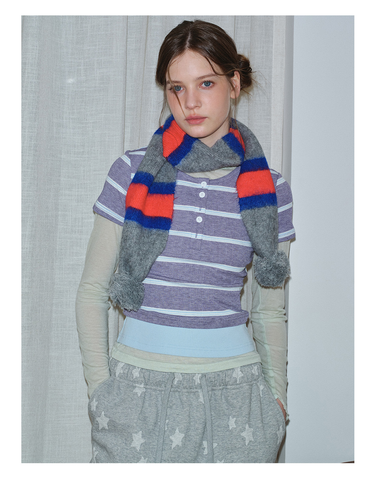 Designer wool-blend brushed striped knitted scarf female winter girl hanging hairball contrasting color Korean scarf