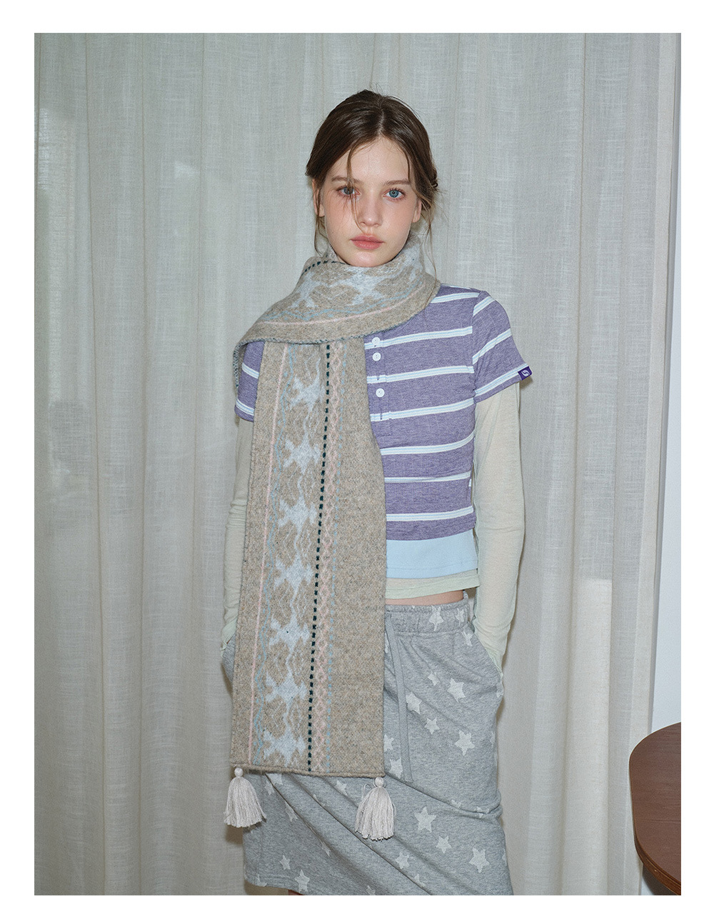 Designer's same Pingti wool blended Fair Island scarf for men and women in winter with soft wool scarf