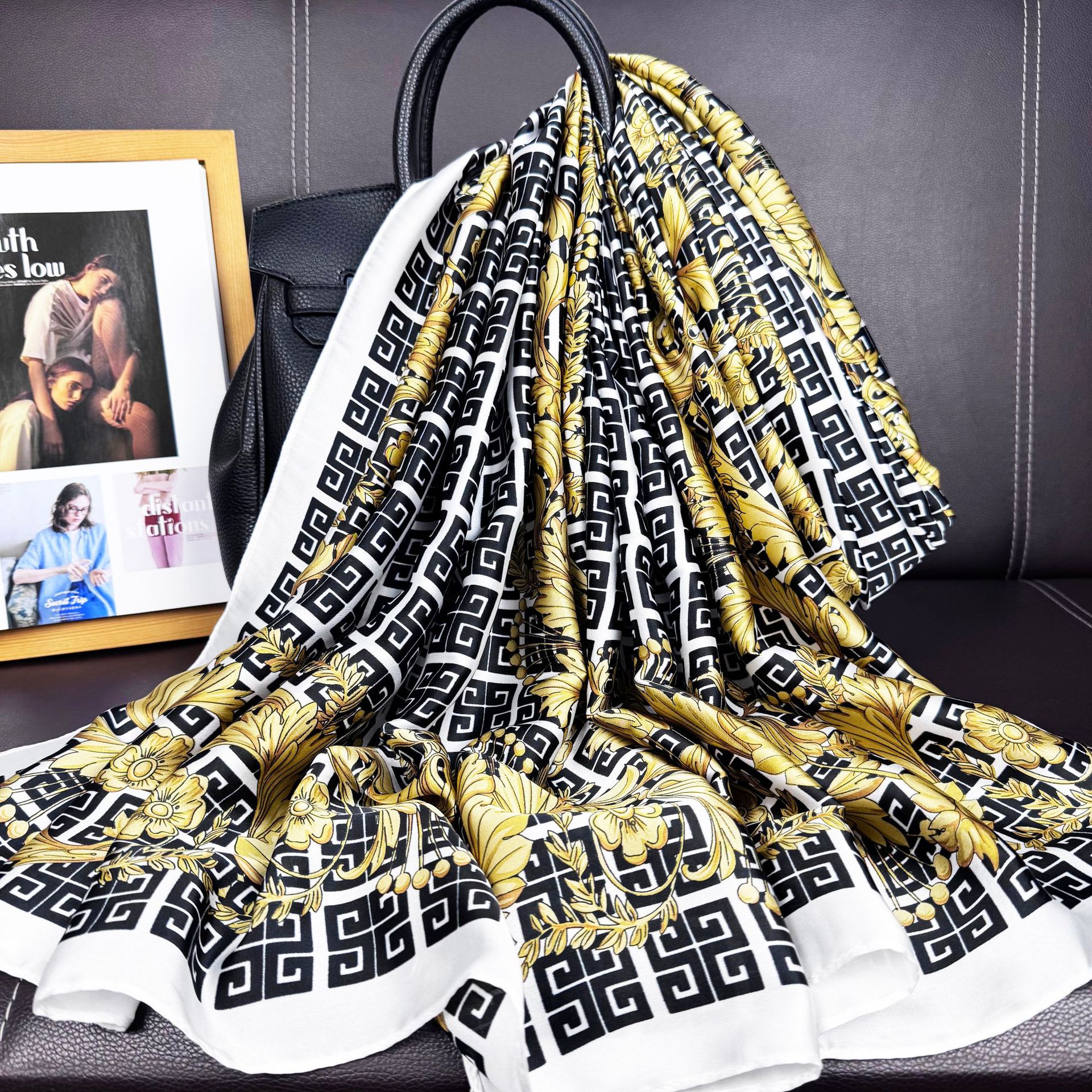 Elegant national four palaces totem simulation silk long silk scarf, spring, summer and autumn travel and vacation women's outer shawl