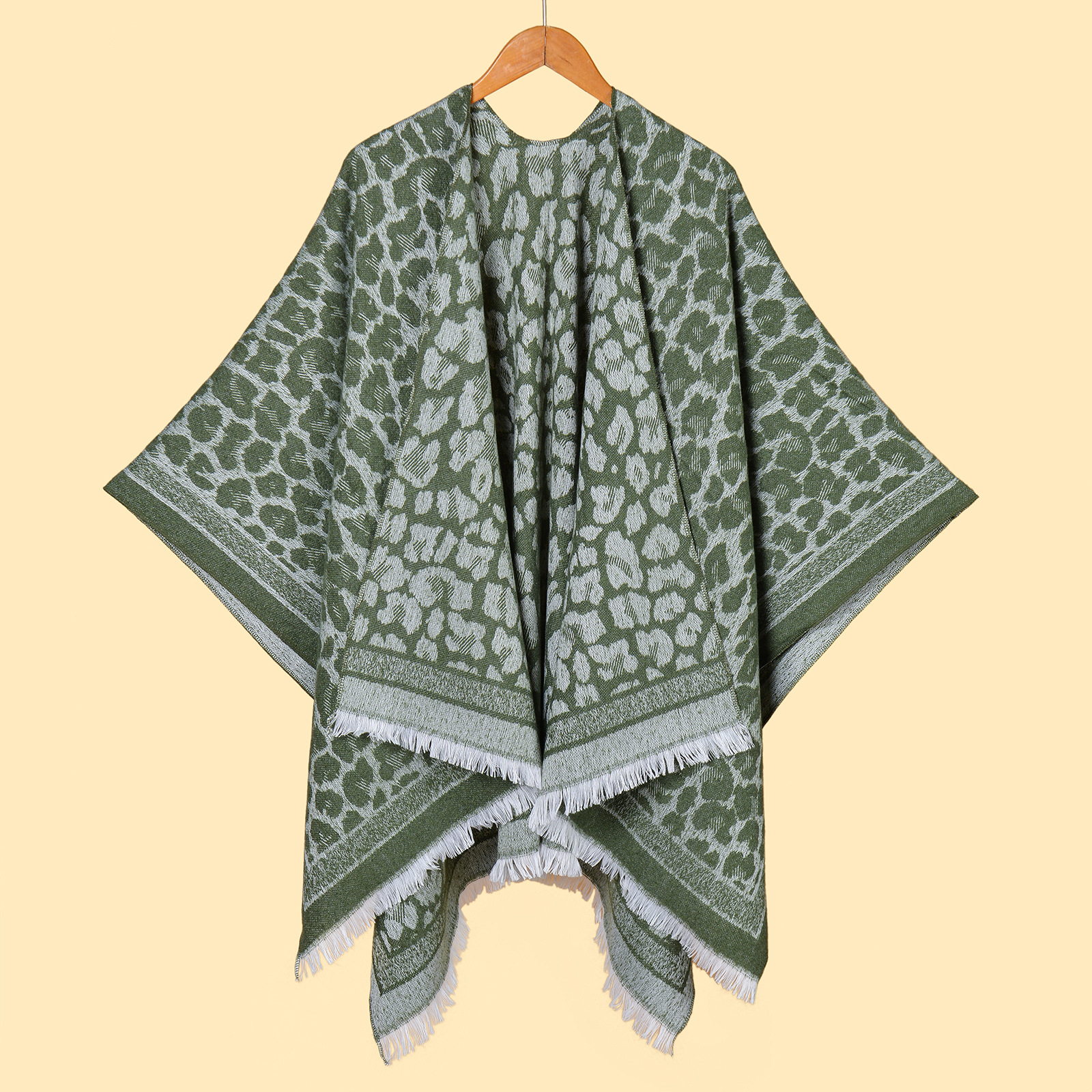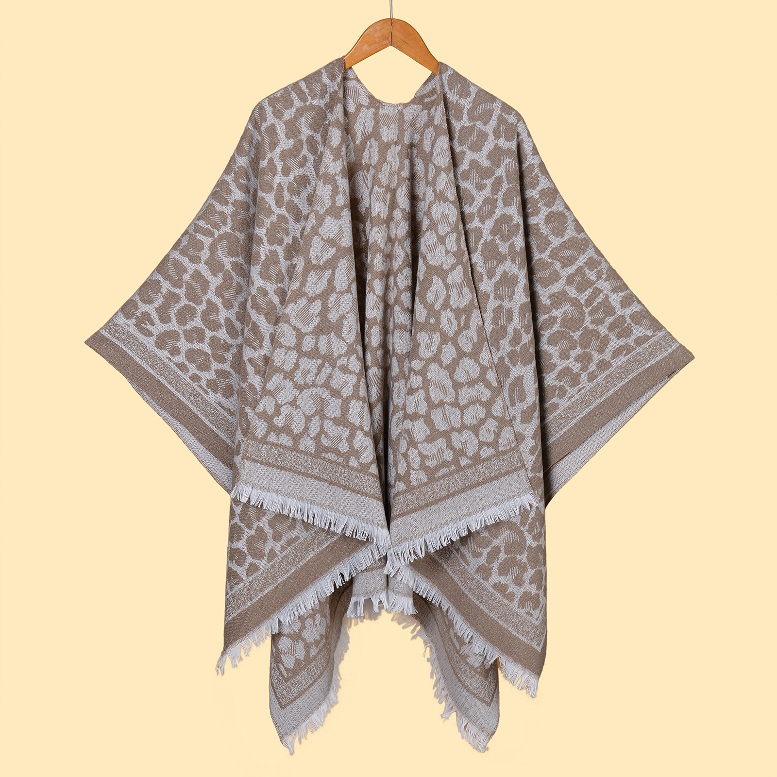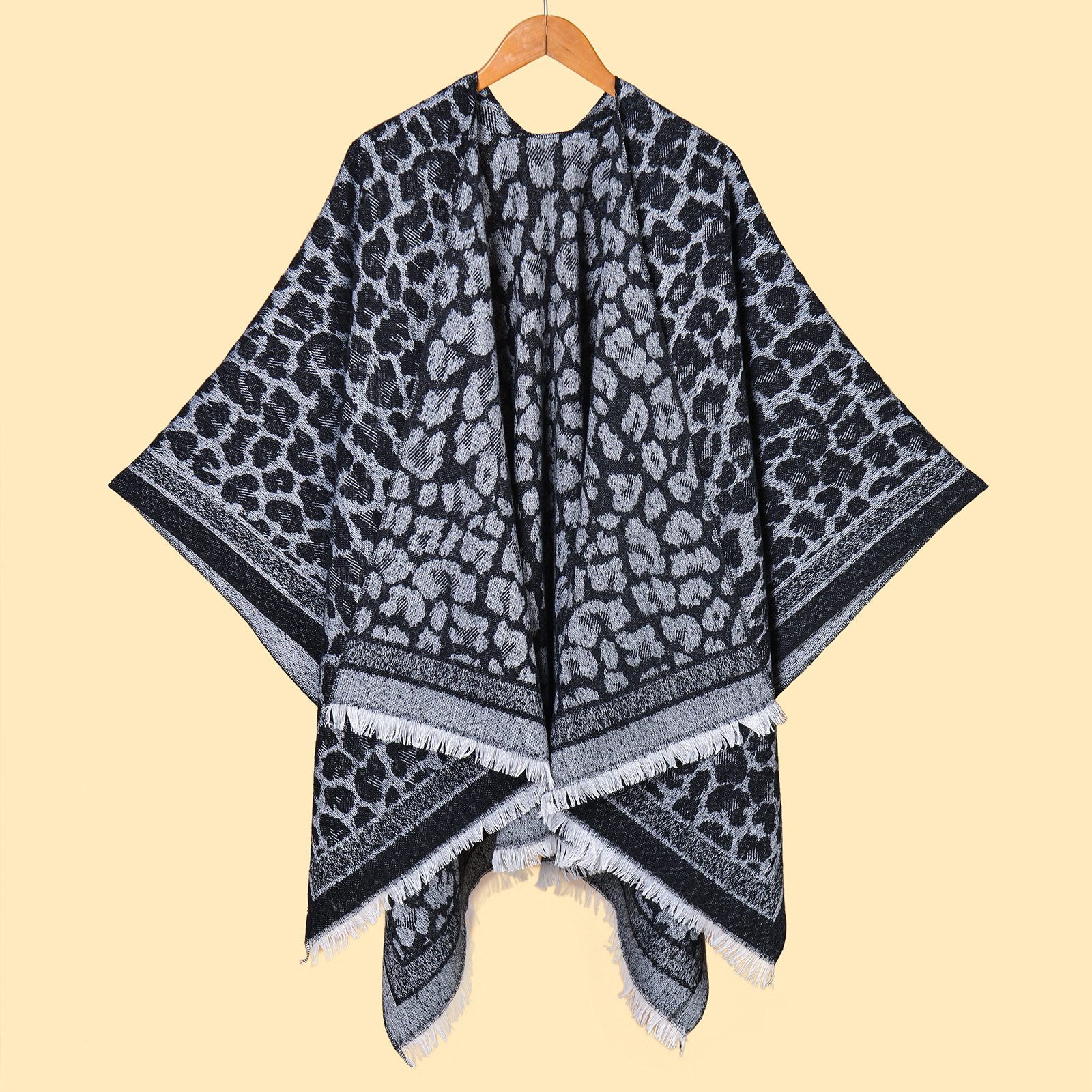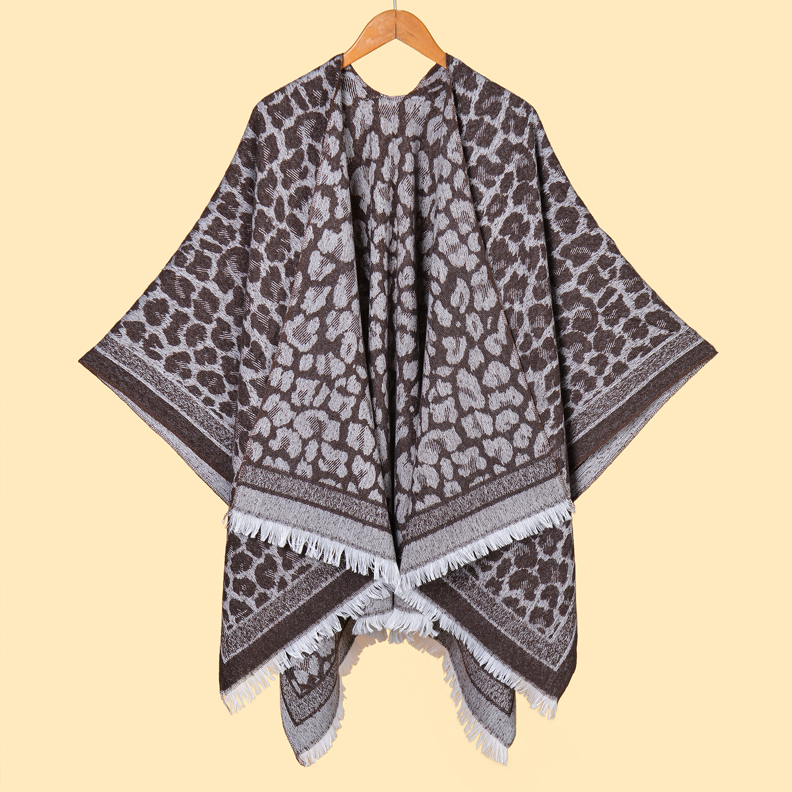 European and American classic leopard print shawl women's double-sided can wear out jacquard warm and cold cardigan