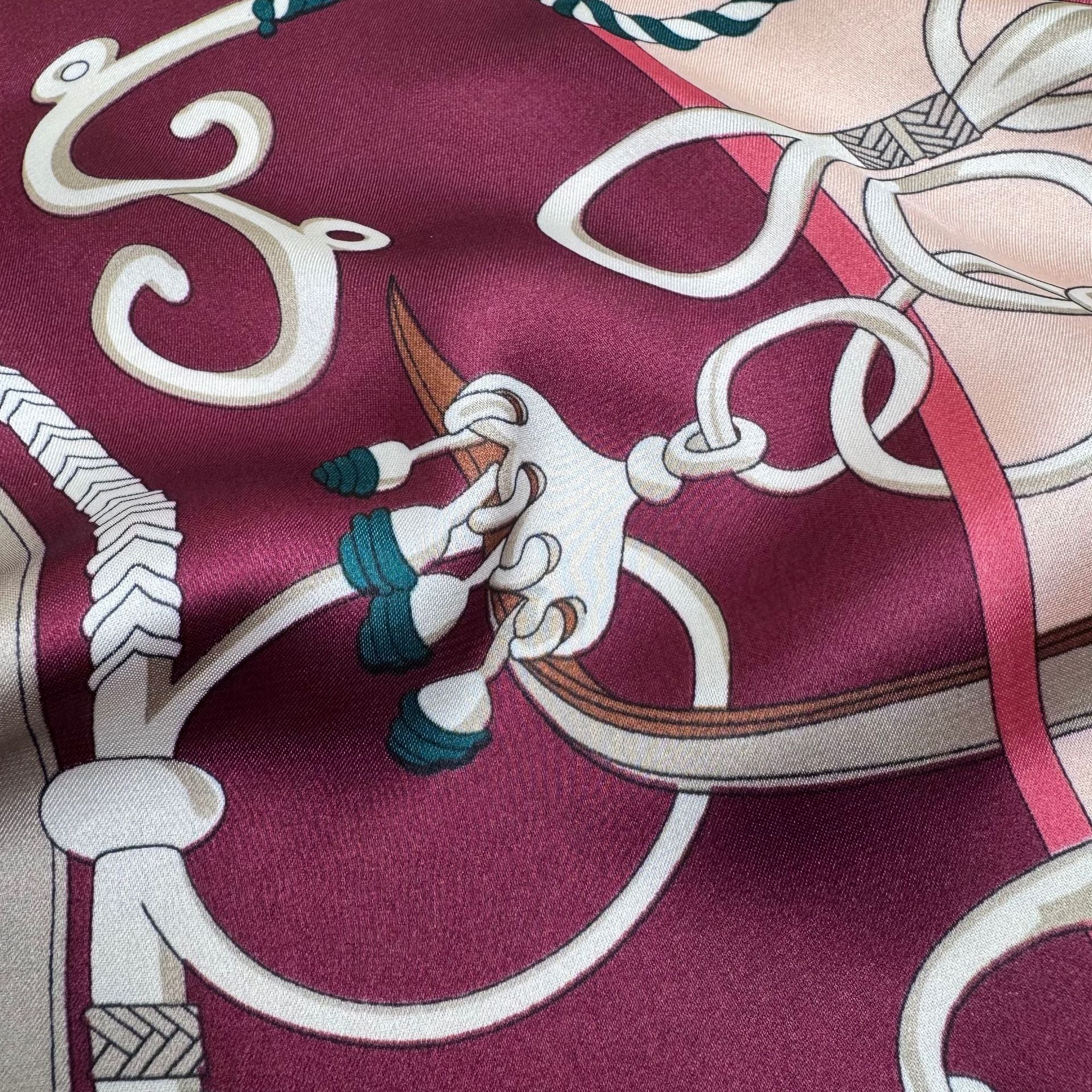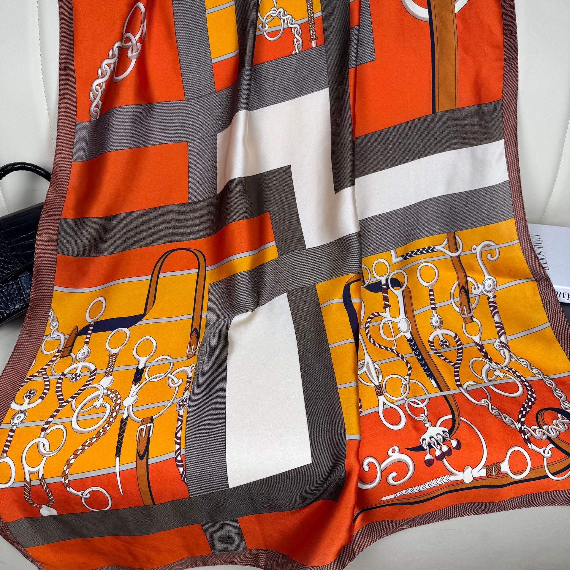 European and American fashion belt chain printed beautiful brocade long silk scarf, Korean version geometric color matching temperament women's vacation shawl
