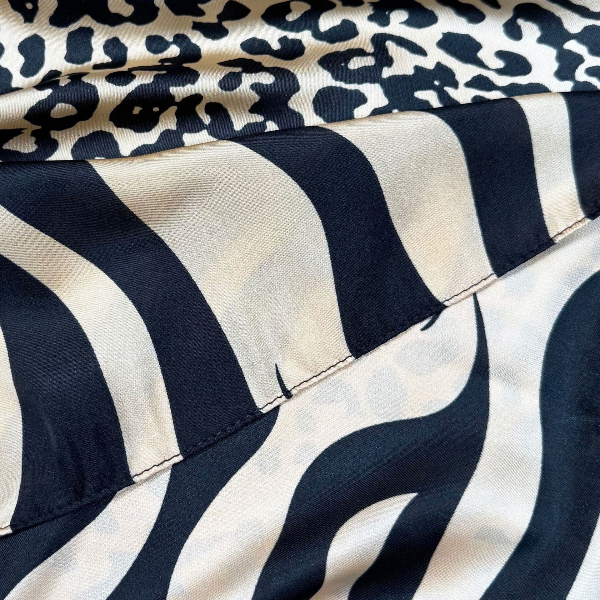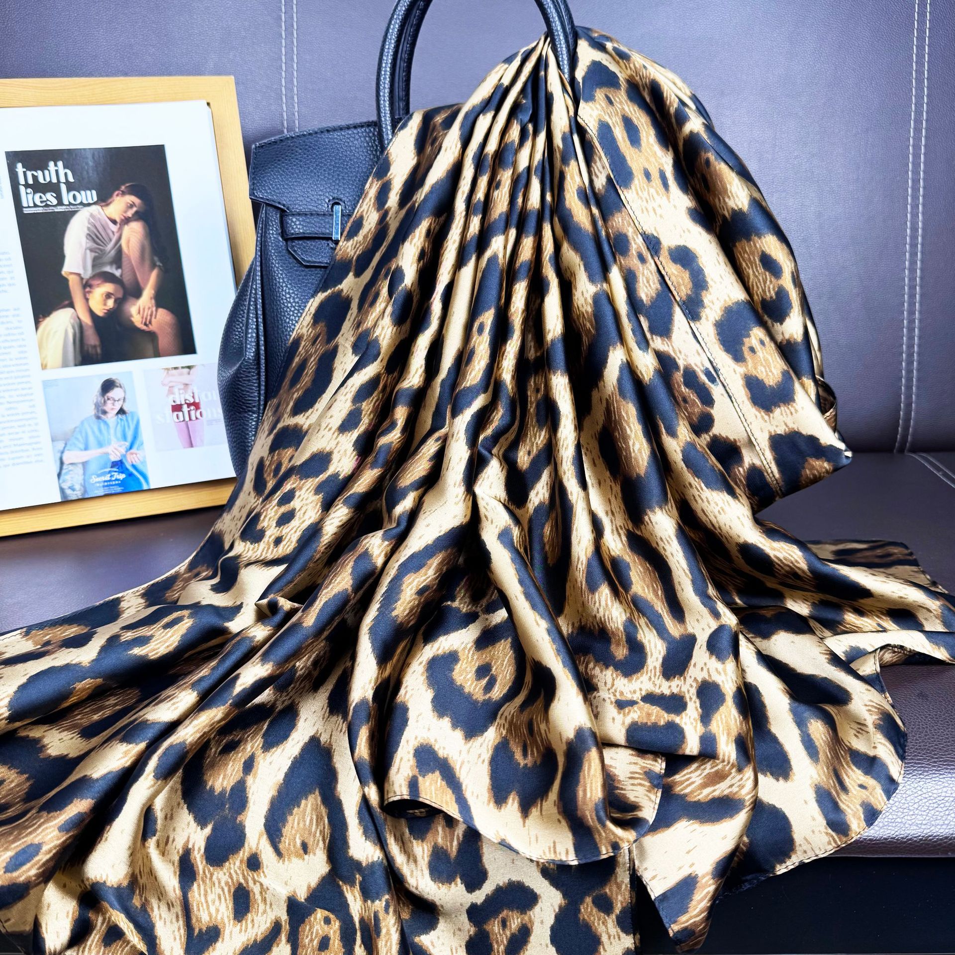 European and American fashion black and white leopard print texture printing long silk scarf, Korean version of versatile women's decorative outer shawl, scarf