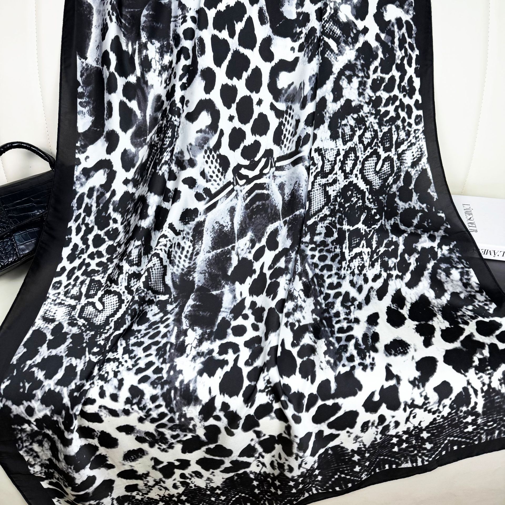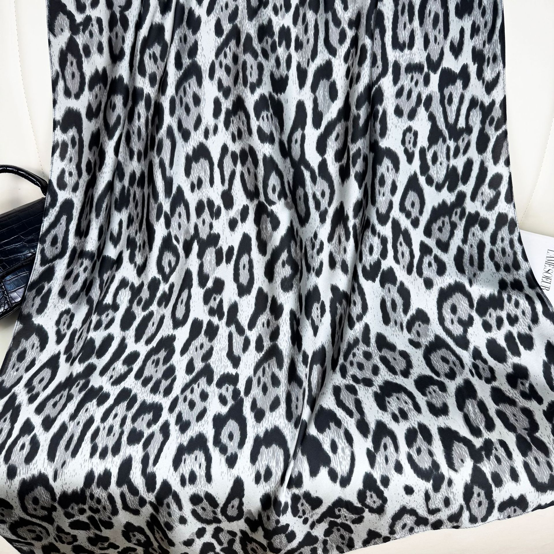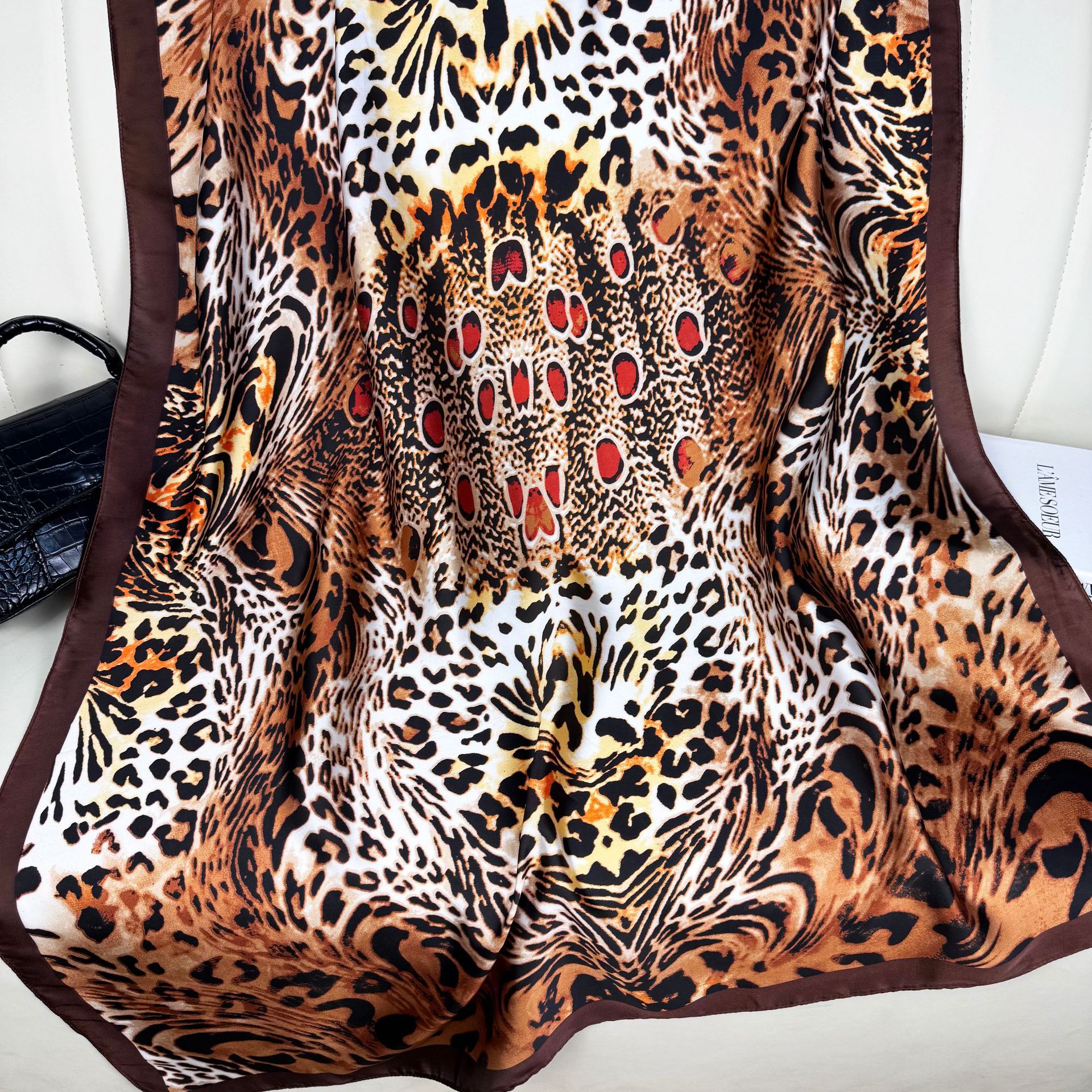 European and American fashion leopard print long silk scarf, spring, summer and autumn travel vacation sunscreen shawl beach towel headscarf