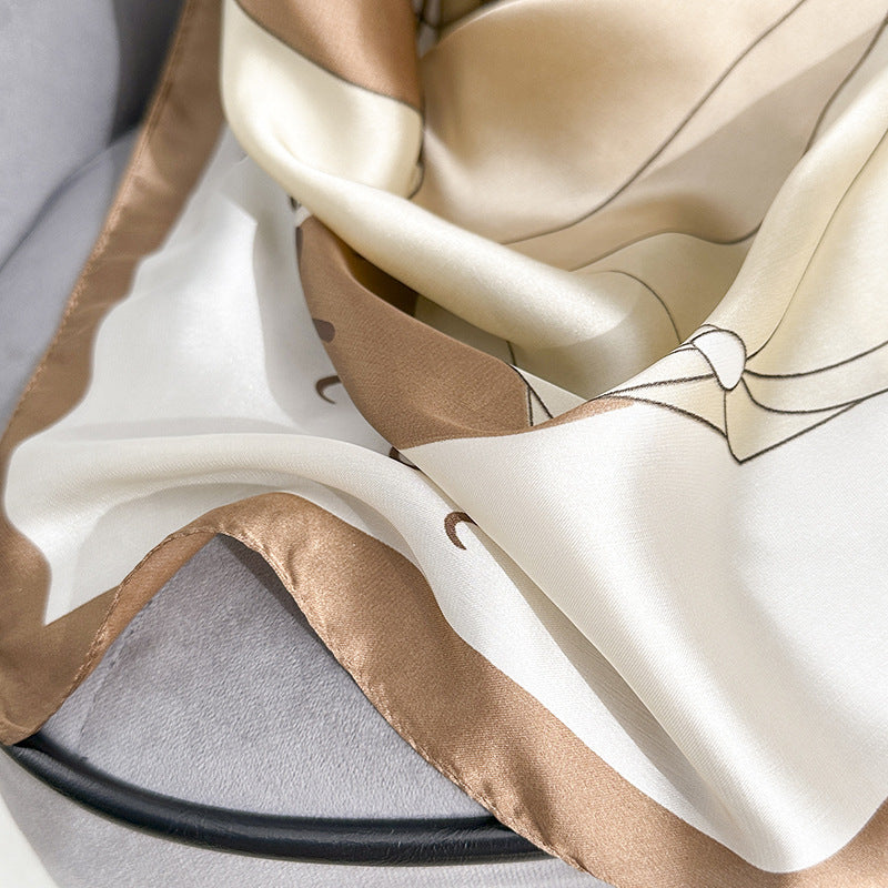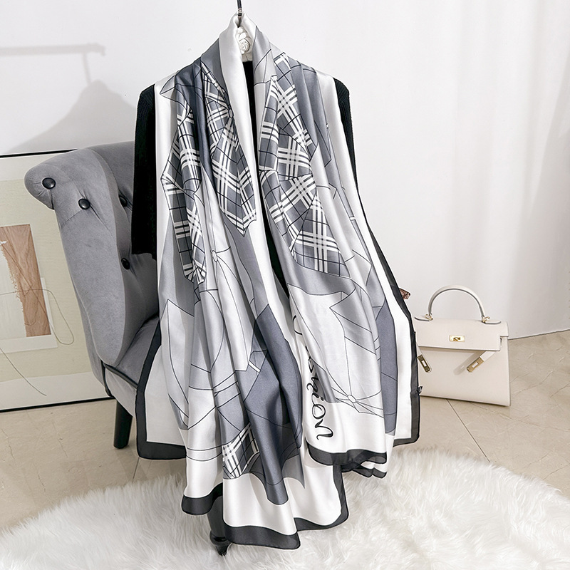 Fashion versatile geometric line plaid printing long silk scarf, elegant and light luxury women's outer yarn thin shawl
