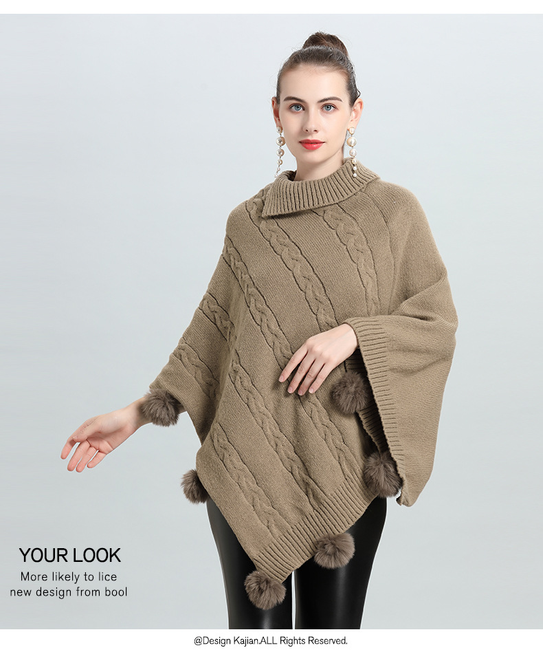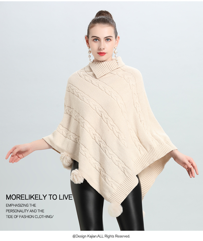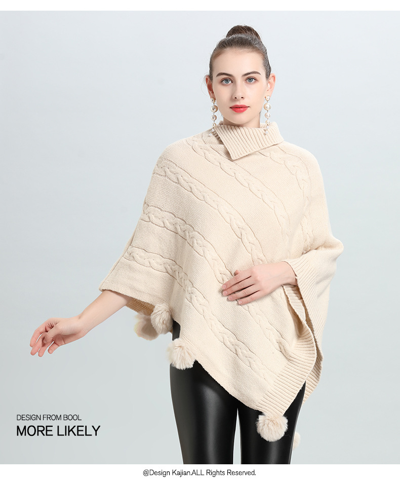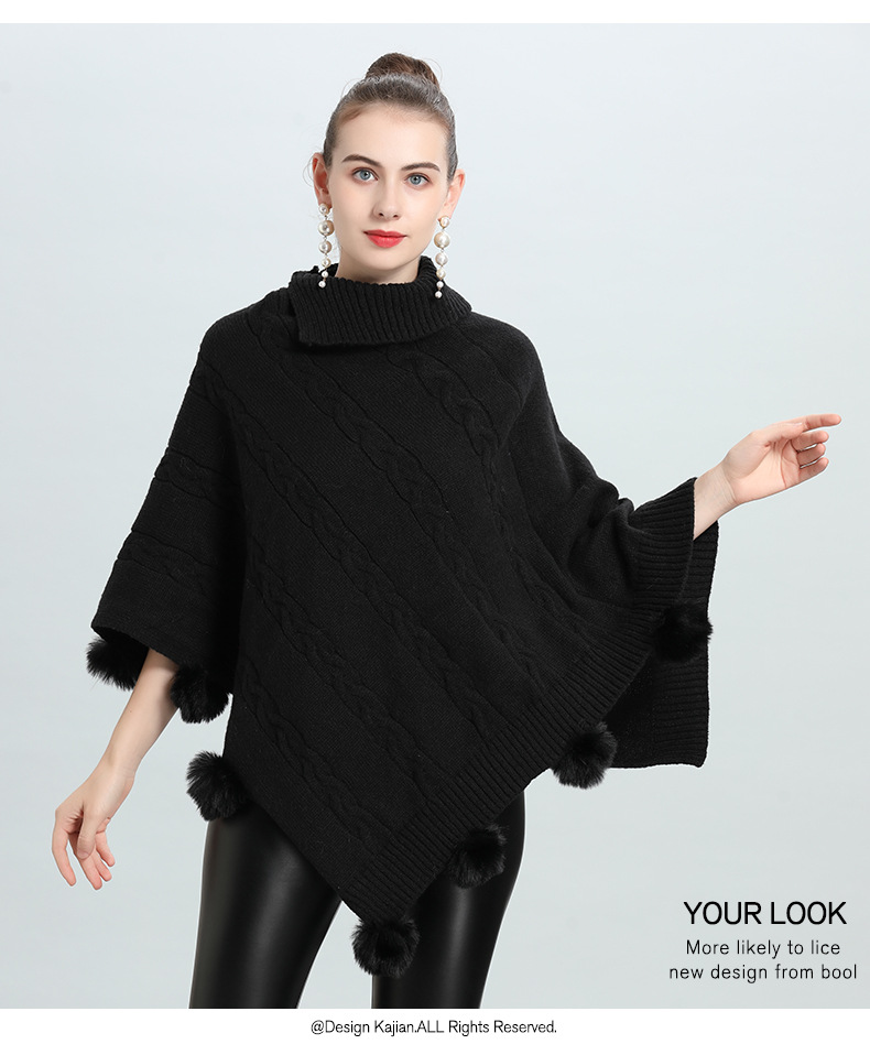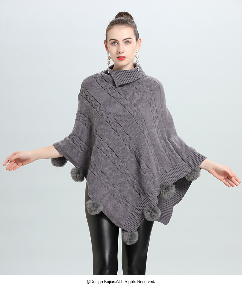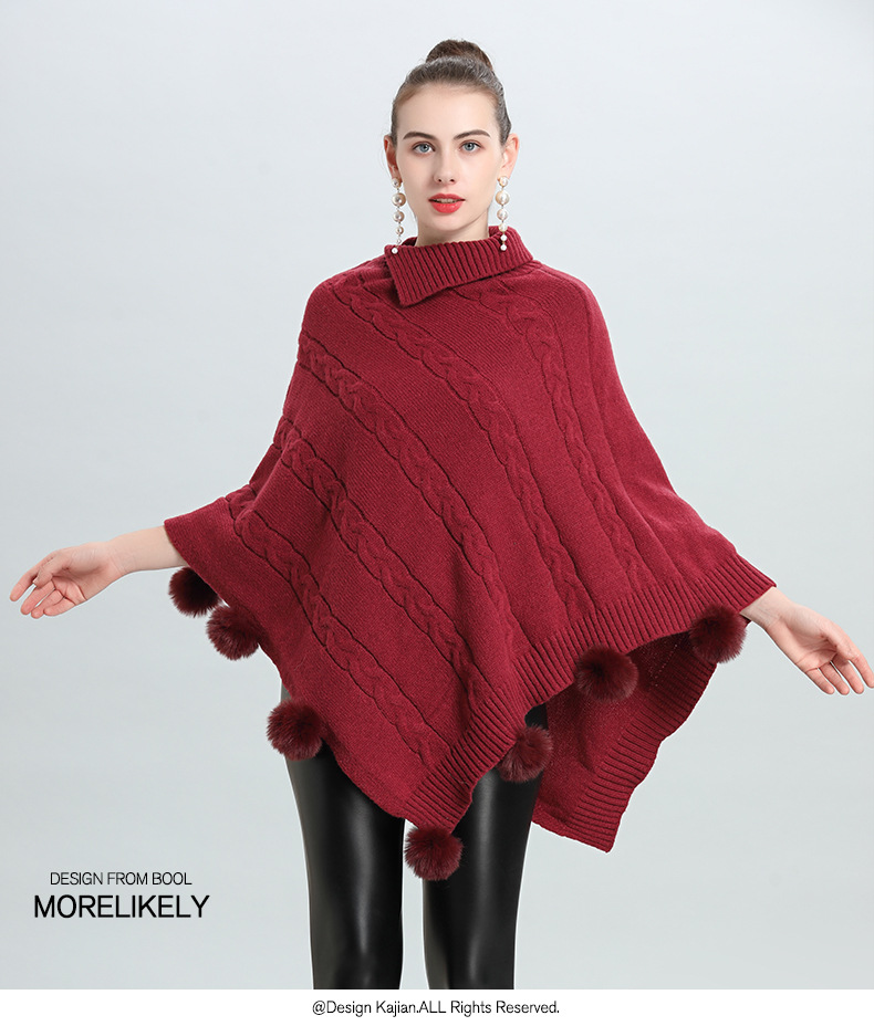 Hot European and Korean autumn and winter new loose jacquard hairball pullover knitted sweater cape shawl 0937 #