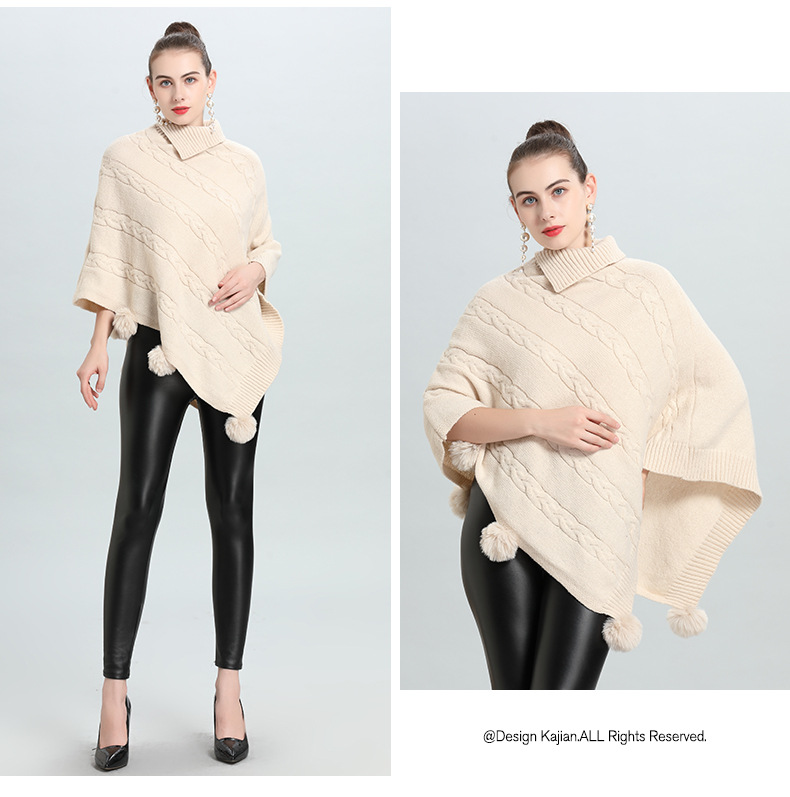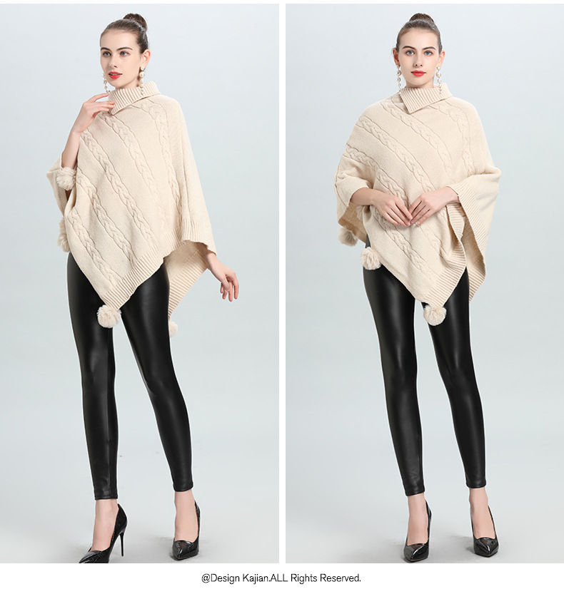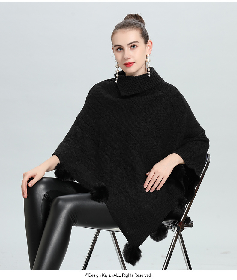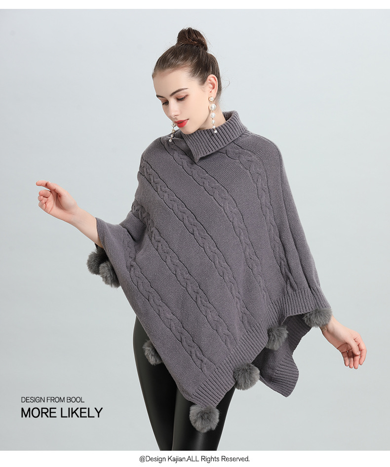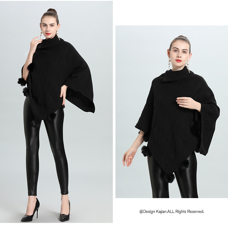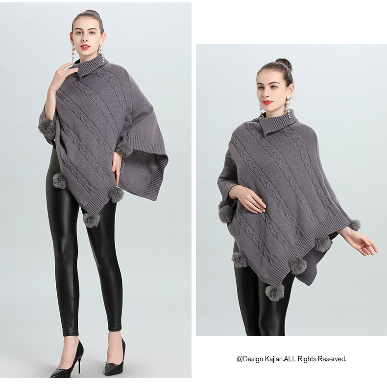 Hot European and Korean autumn and winter new loose jacquard hairball pullover knitted sweater cape shawl 0937 #