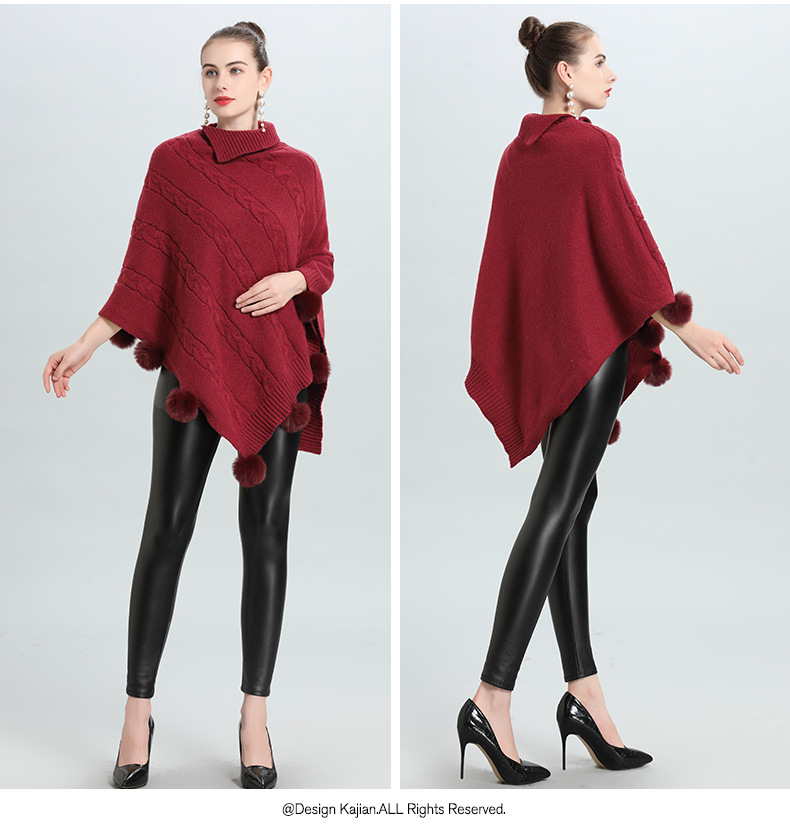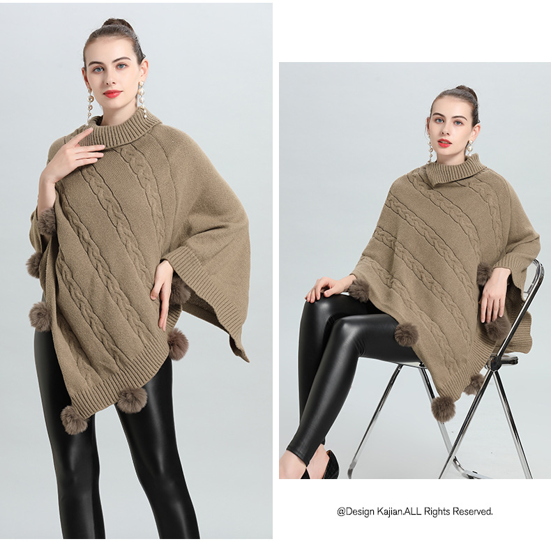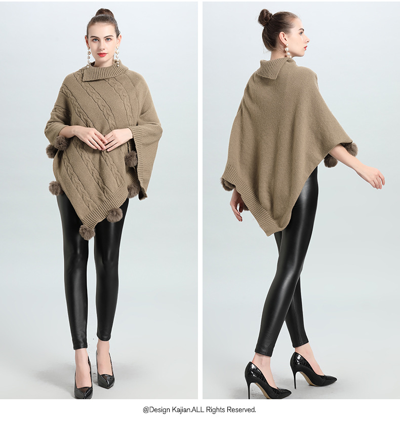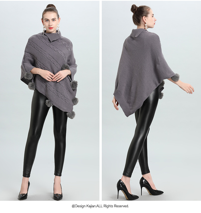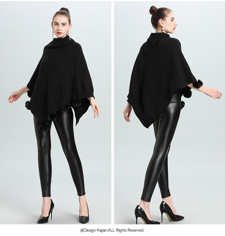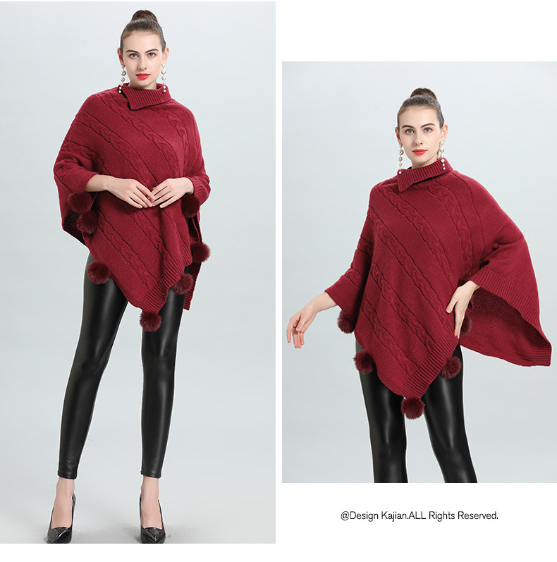 Hot European and Korean autumn and winter new loose jacquard hairball pullover knitted sweater cape shawl 0937 #