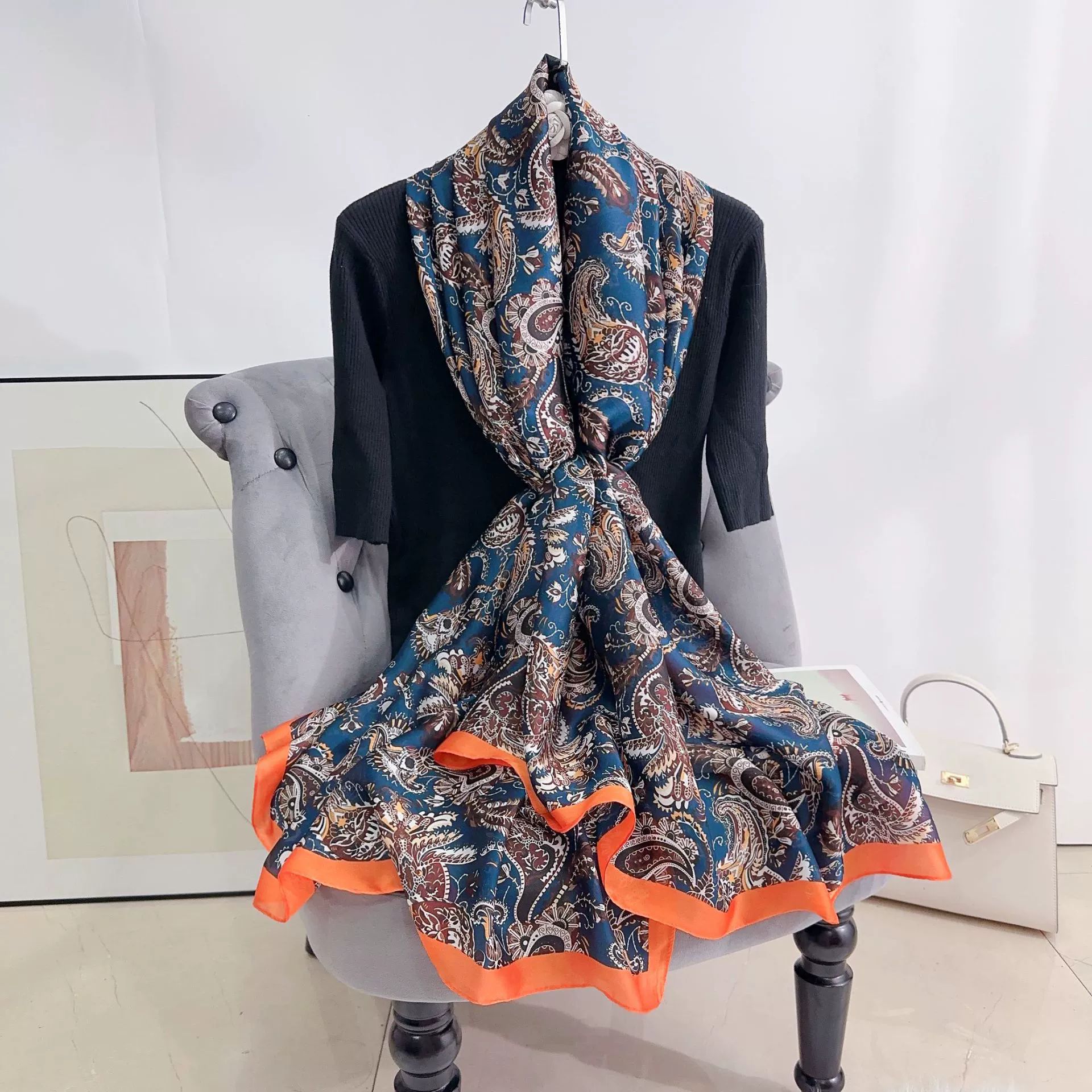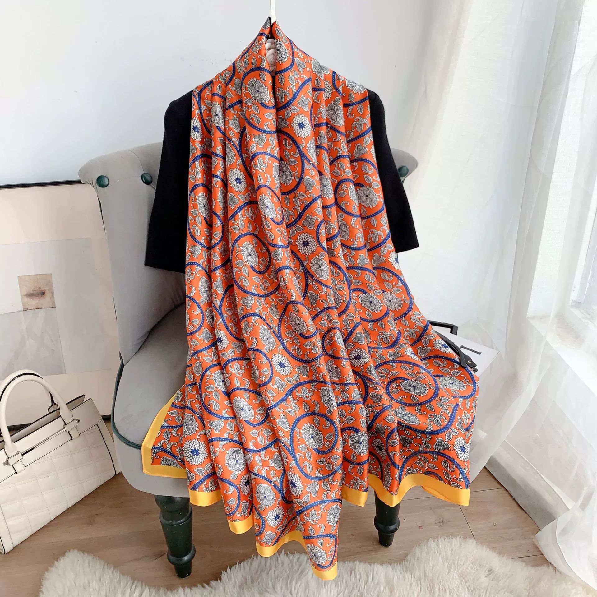 INS style Japan and Korea plant flower print scarf Mother's Day gift light luxury style retro temperament long scarf