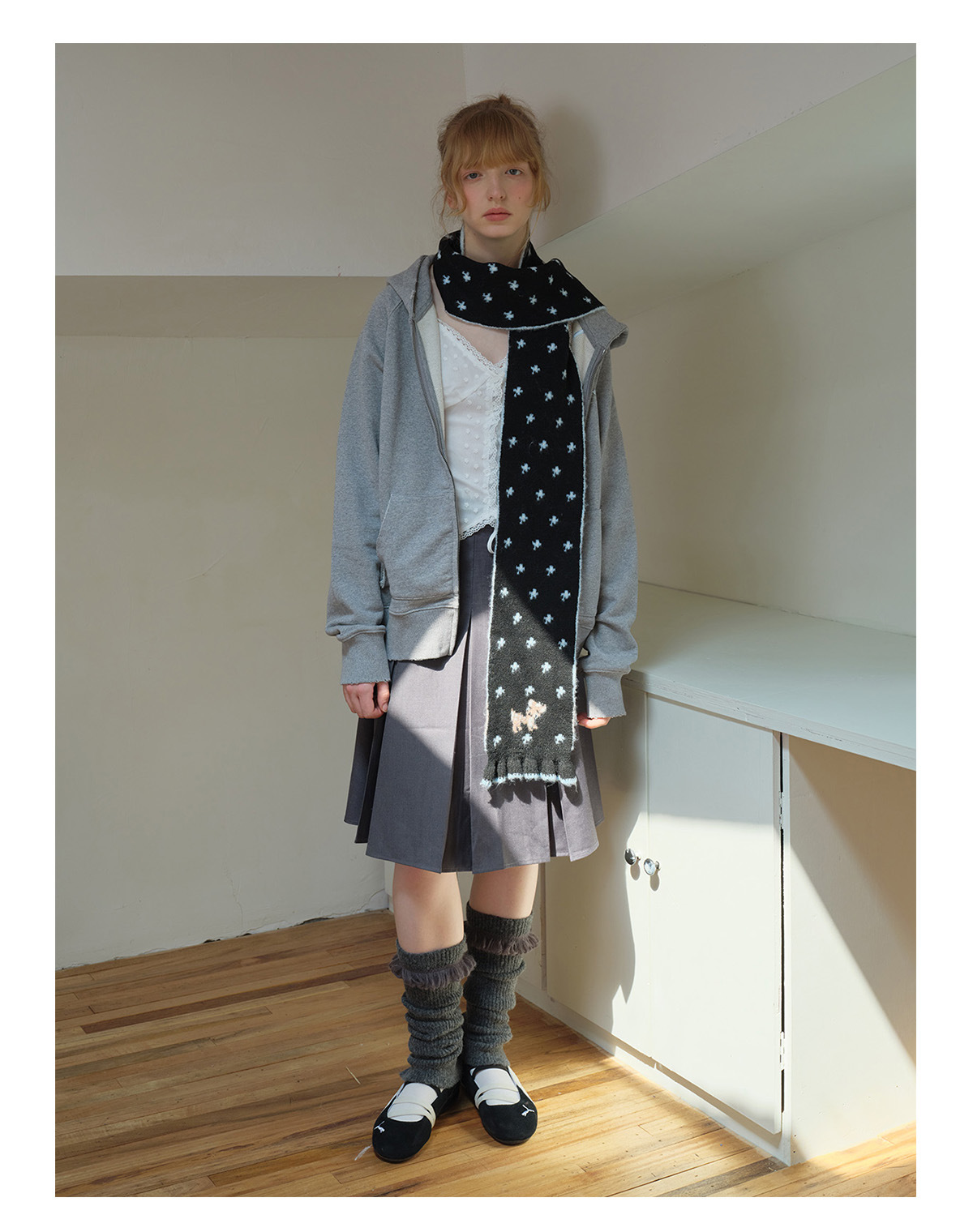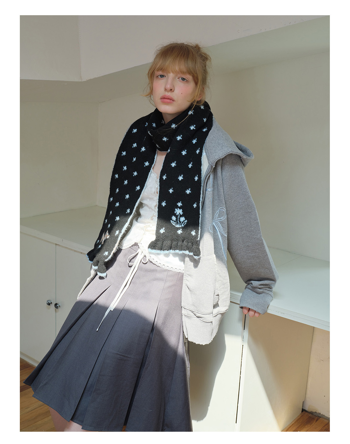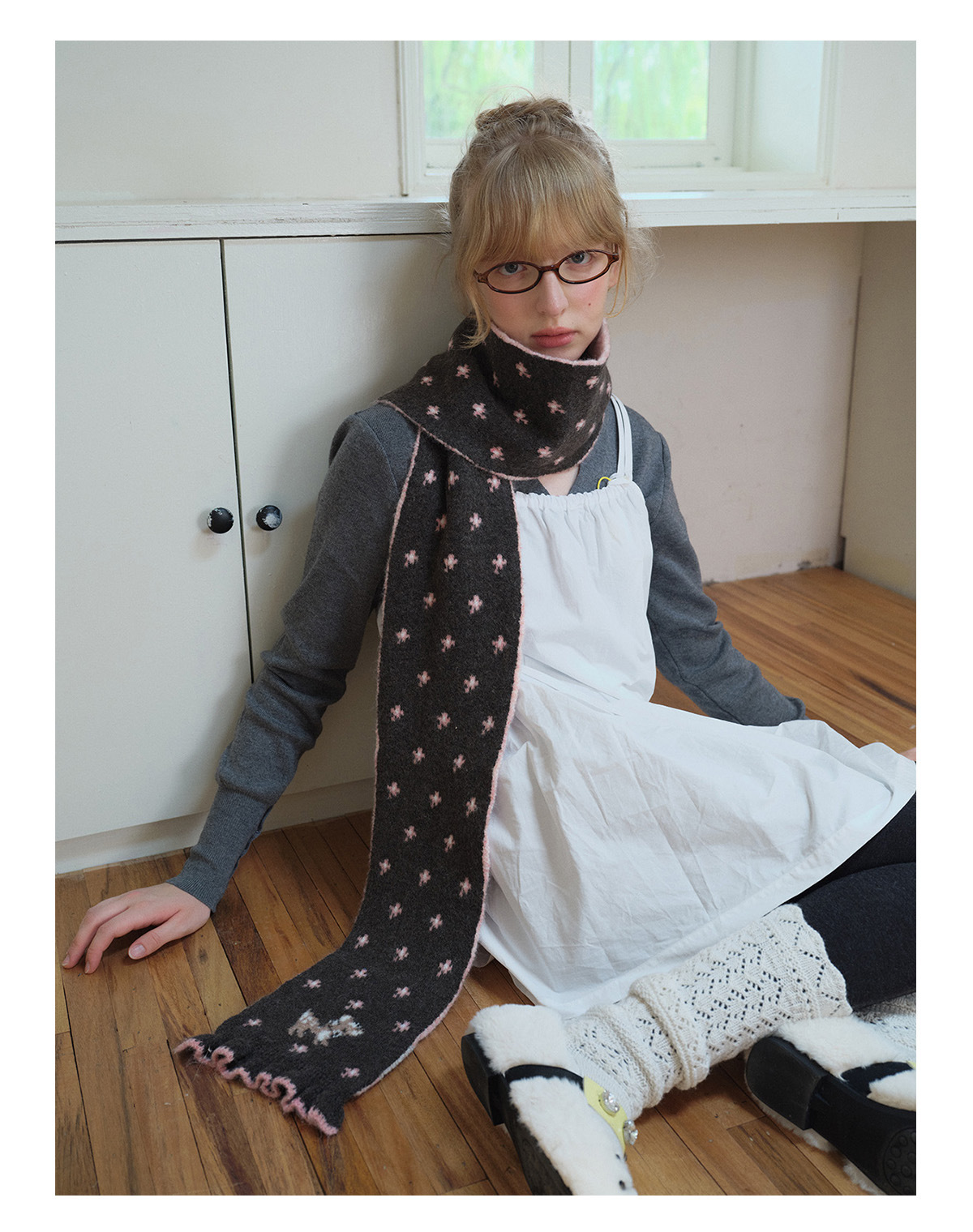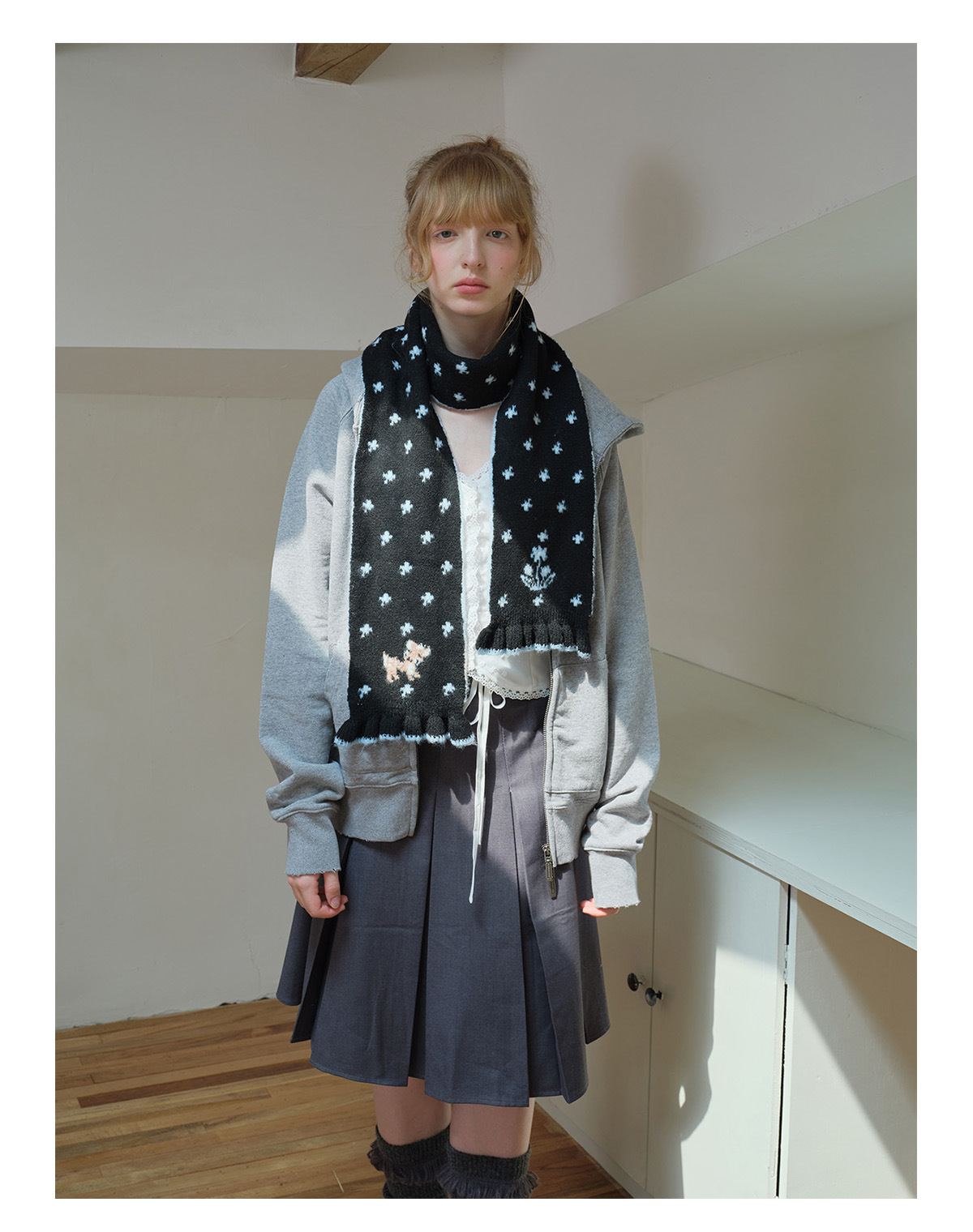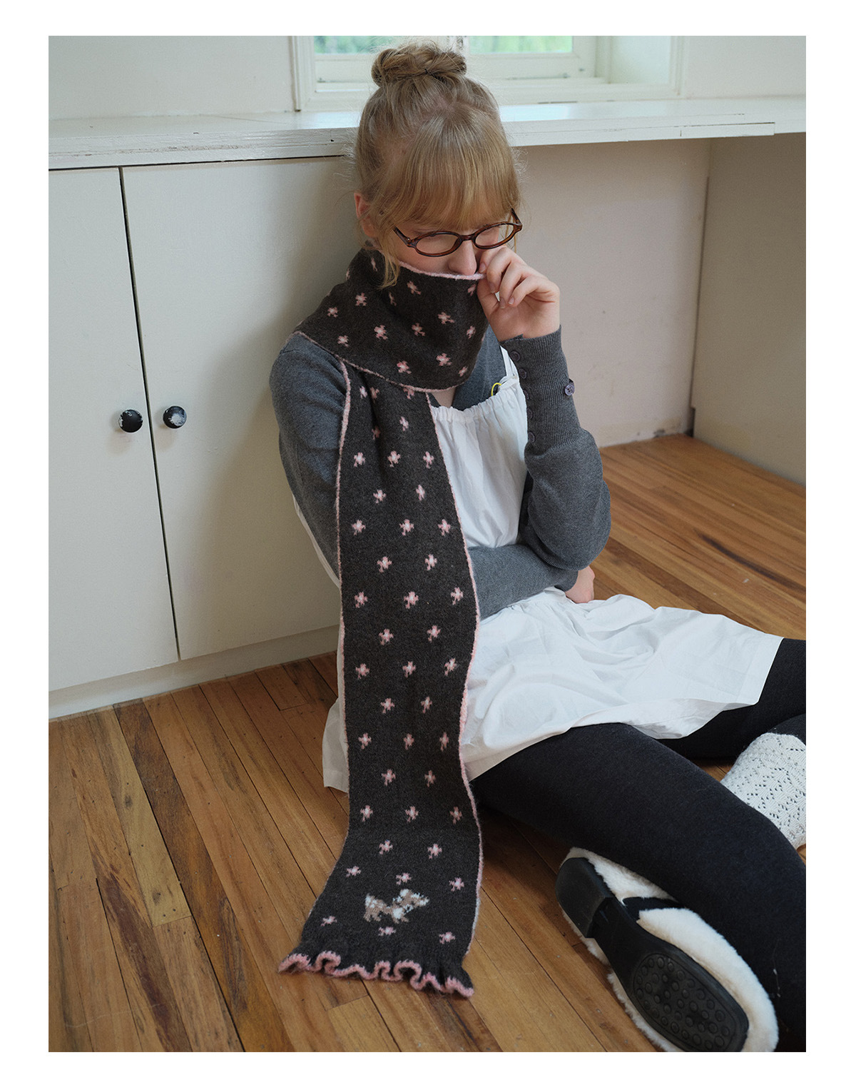Korean designer wool-blend cartoon deer jacquard knitted scarf women's winter girly lace scarf