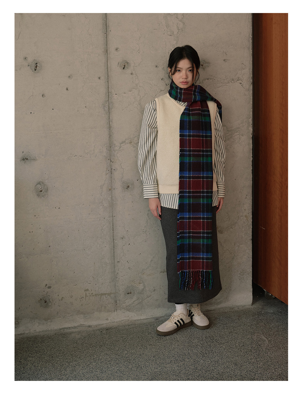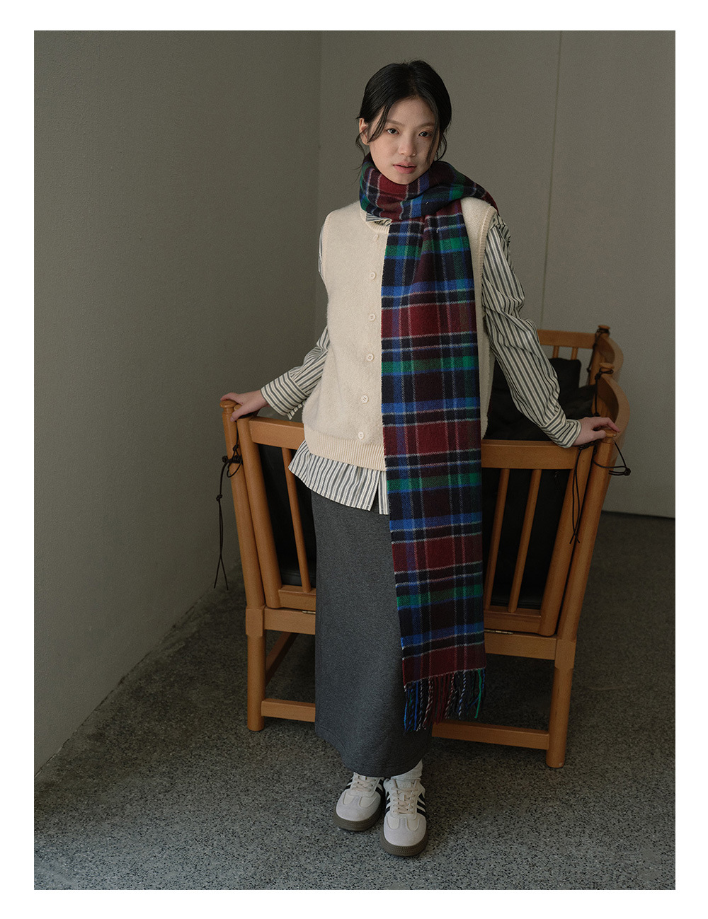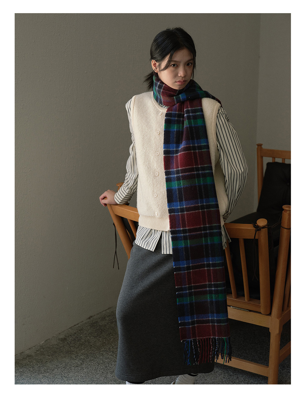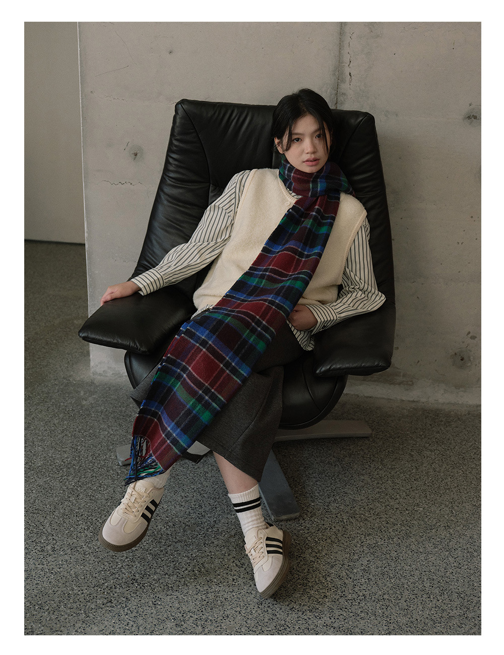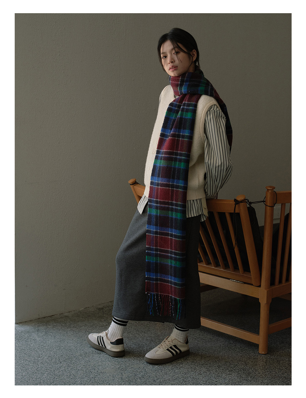 Korean designer wool-blend fringed plaid scarf men's autumn and winter soft plaid scarf