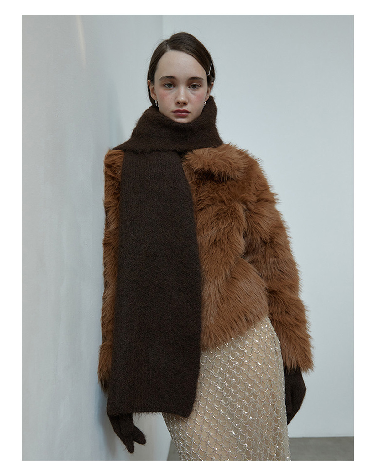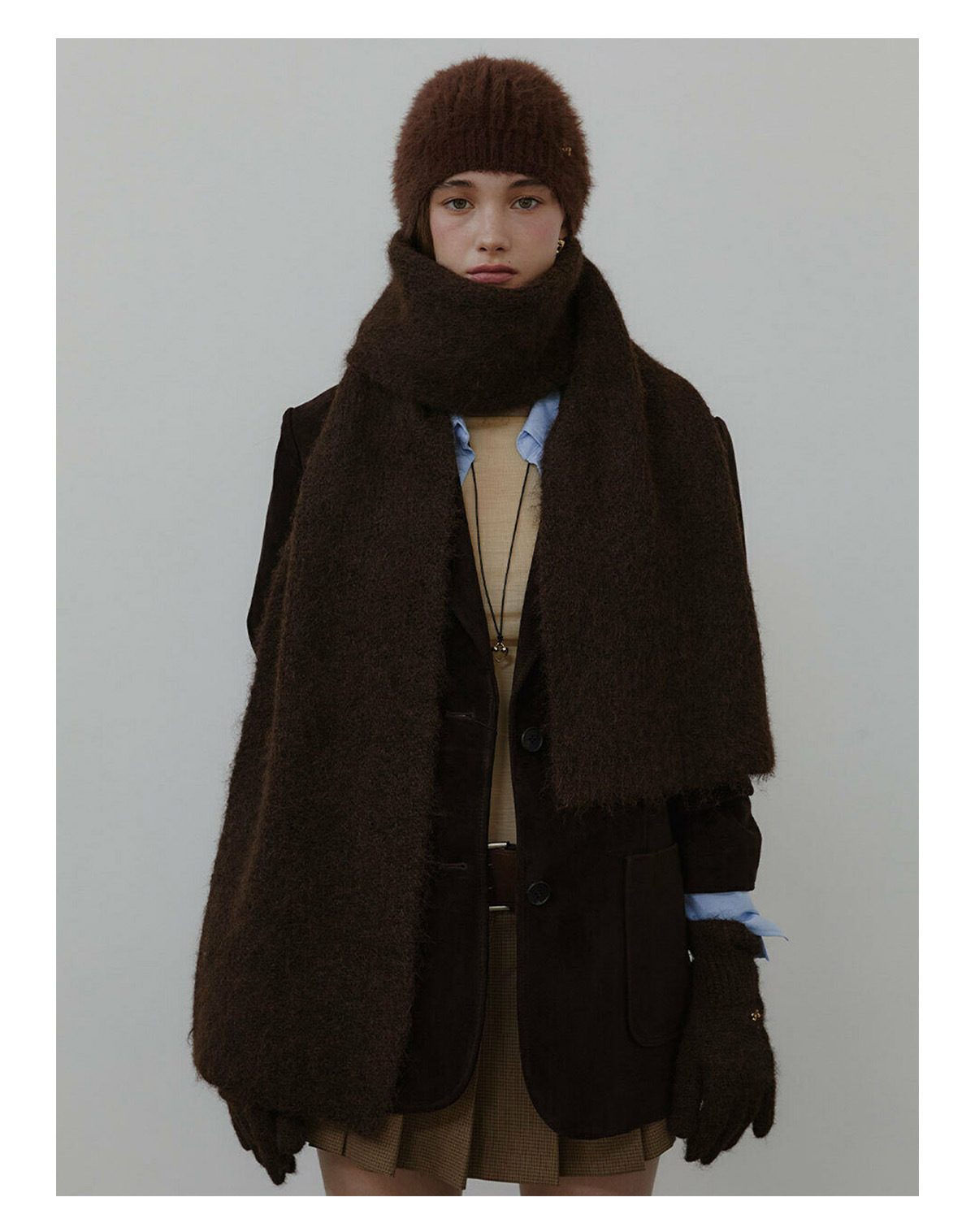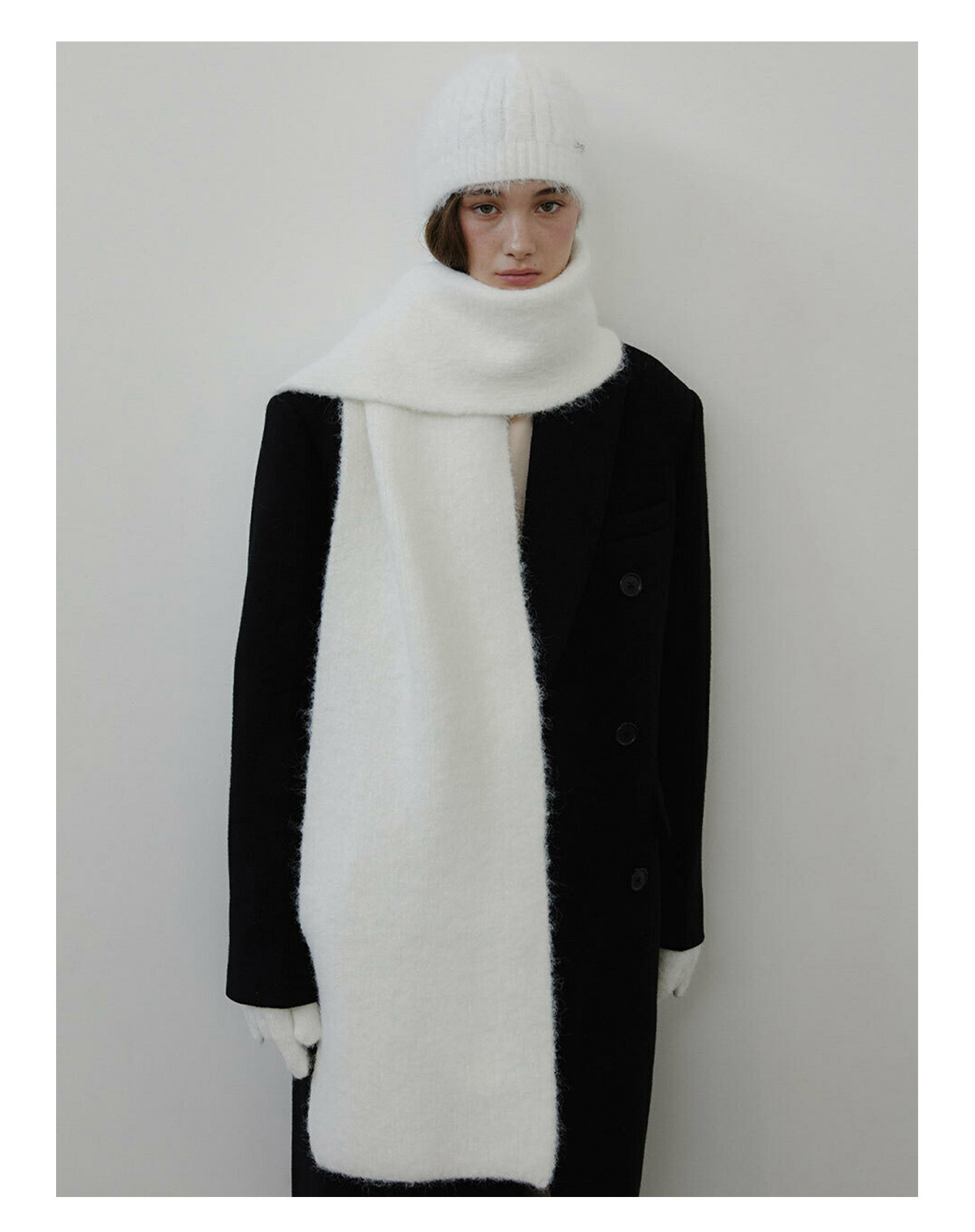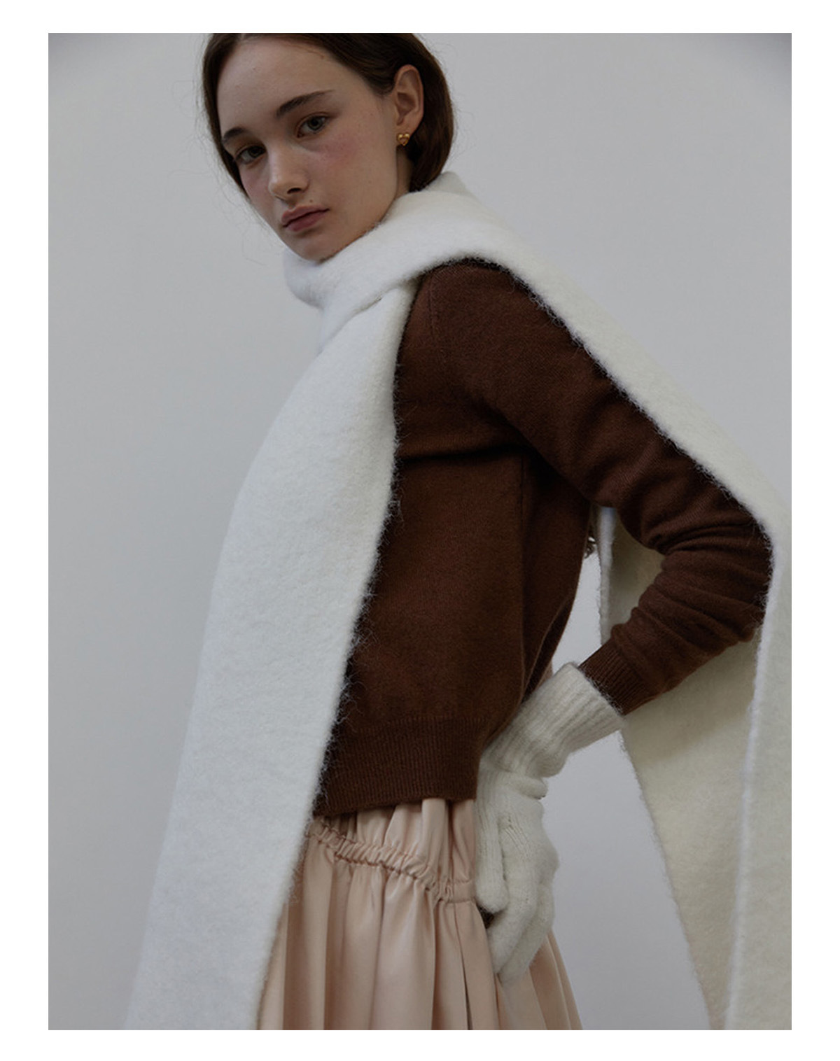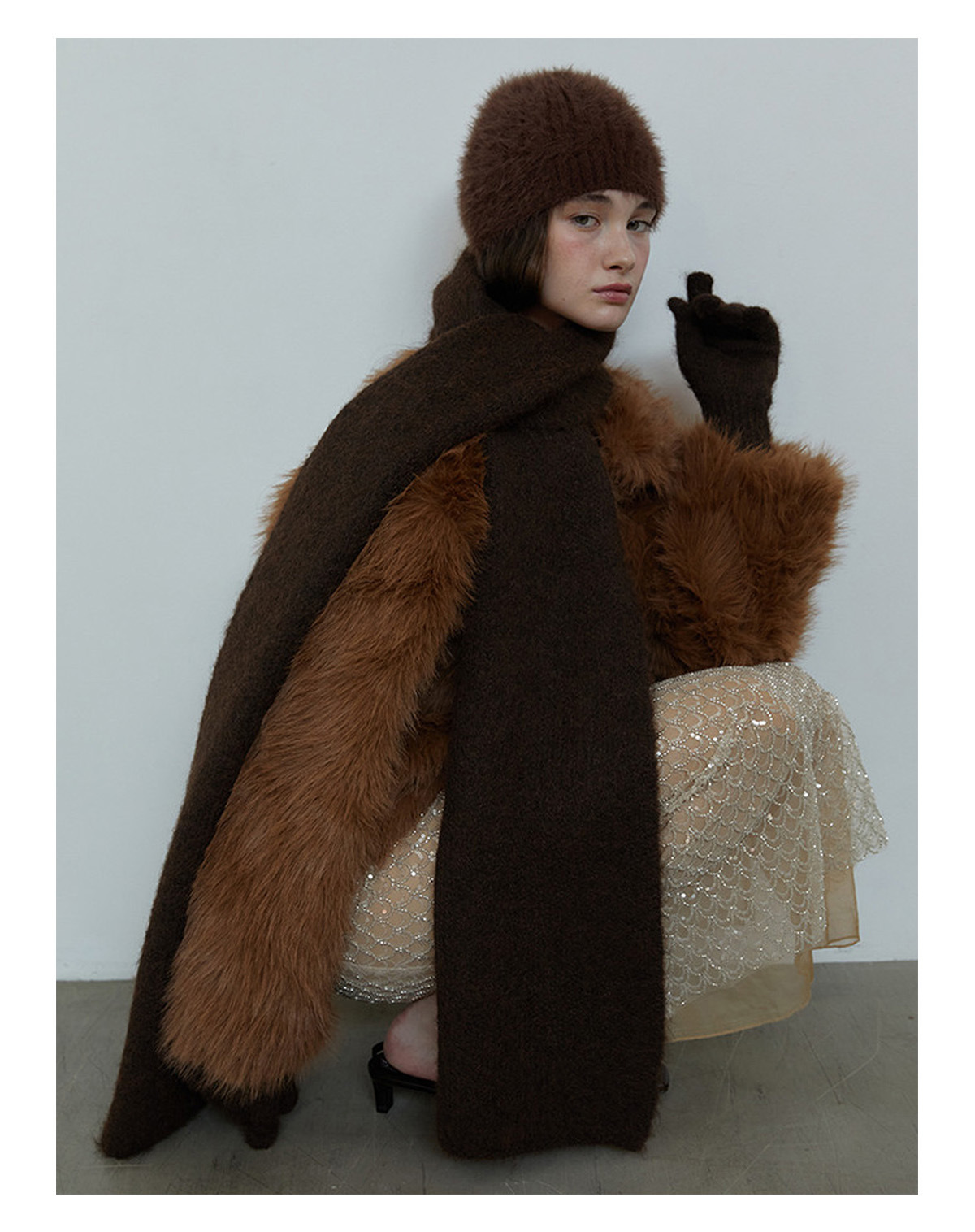 Korean designer wool-blend solid-color knitted scarf women's winter thickened atmosphere and enlarged wool scarf