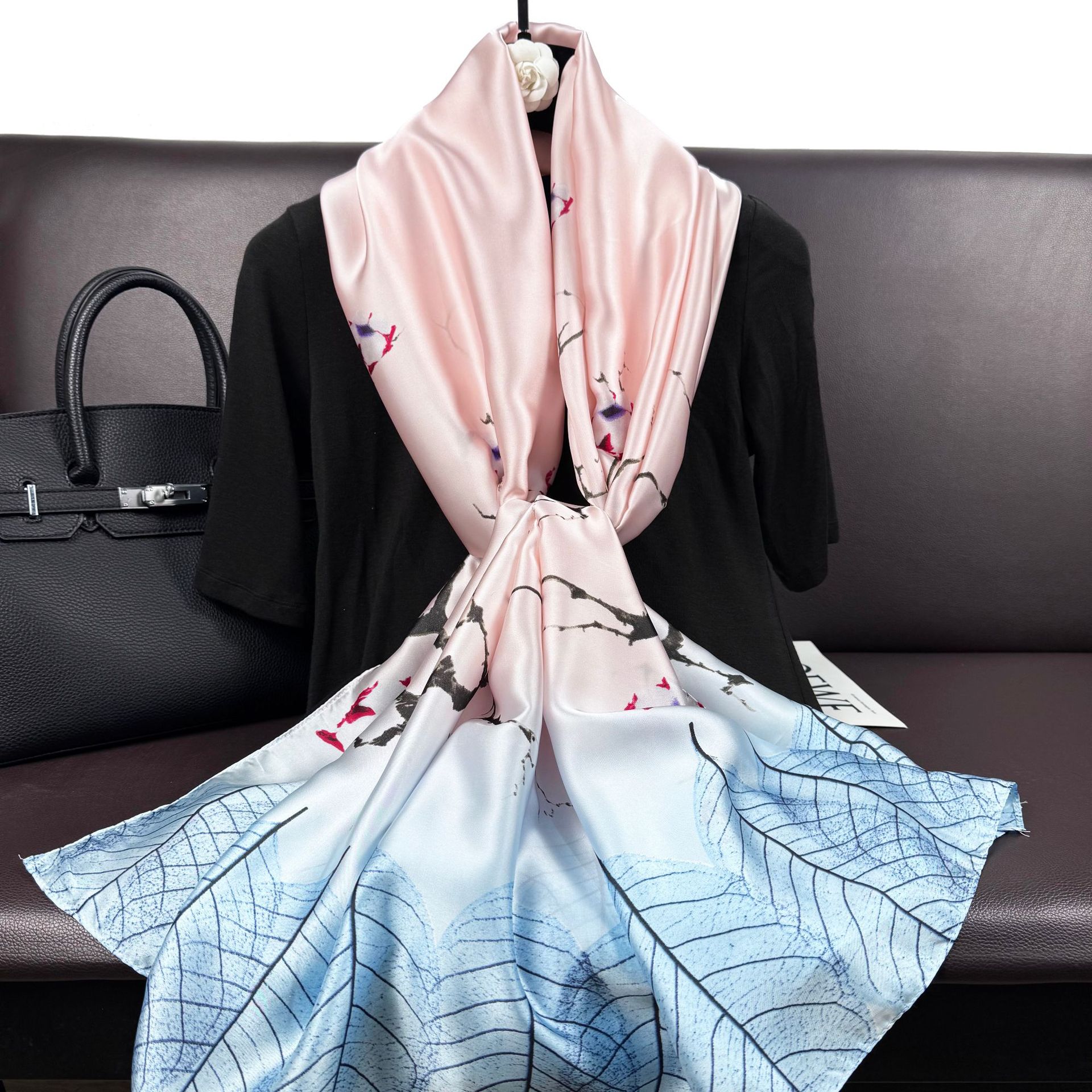 Korean version of simple and versatile plants, flowers, leaves, long silk scarves, elegant temperament, women's decoration, shawl scarf