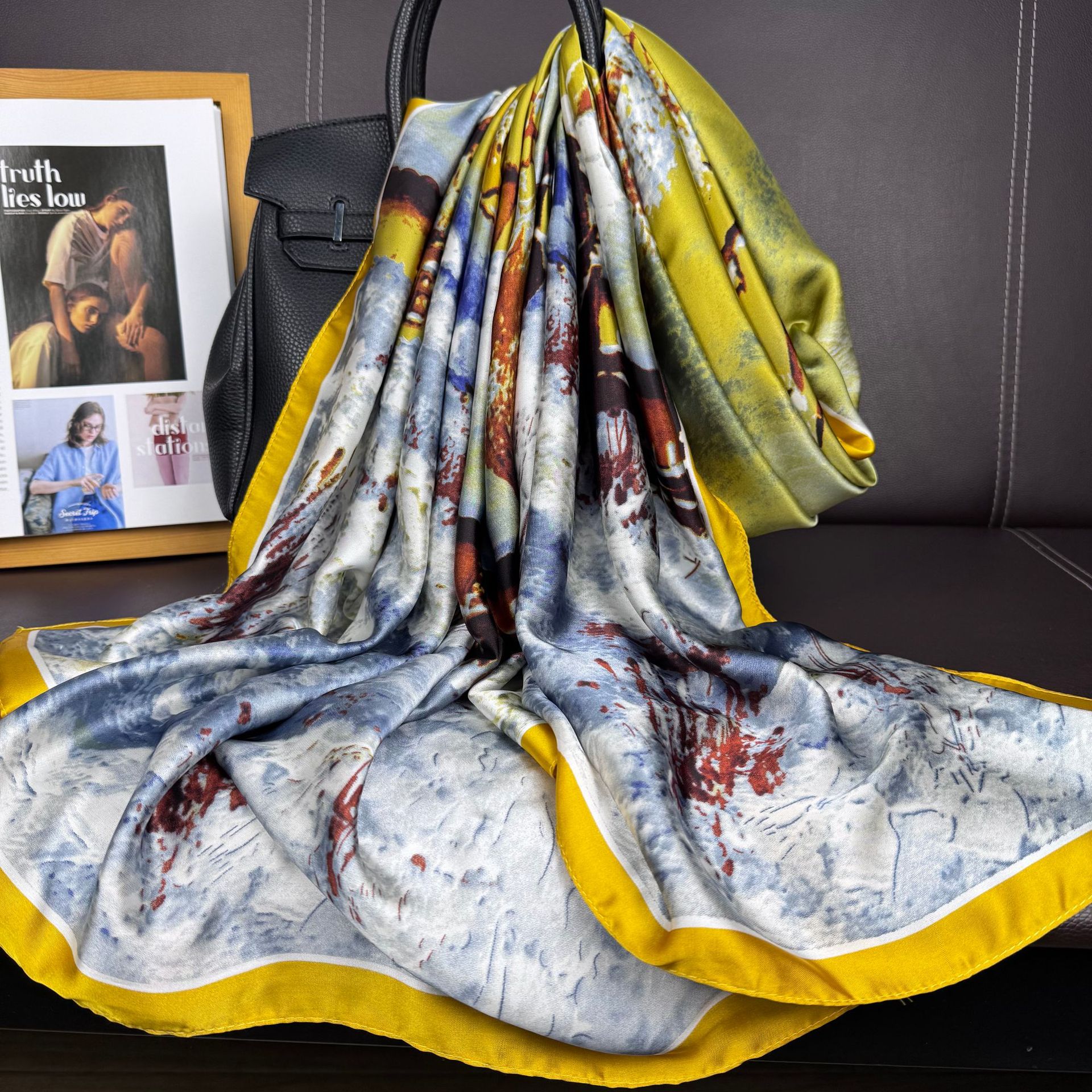 Literature and art Oil painting Beautiful brocade long silk scarf, fashionable and versatile girl air-conditioned room with shawl, scarf