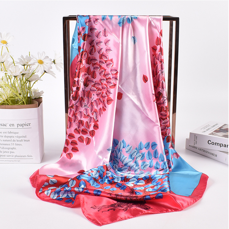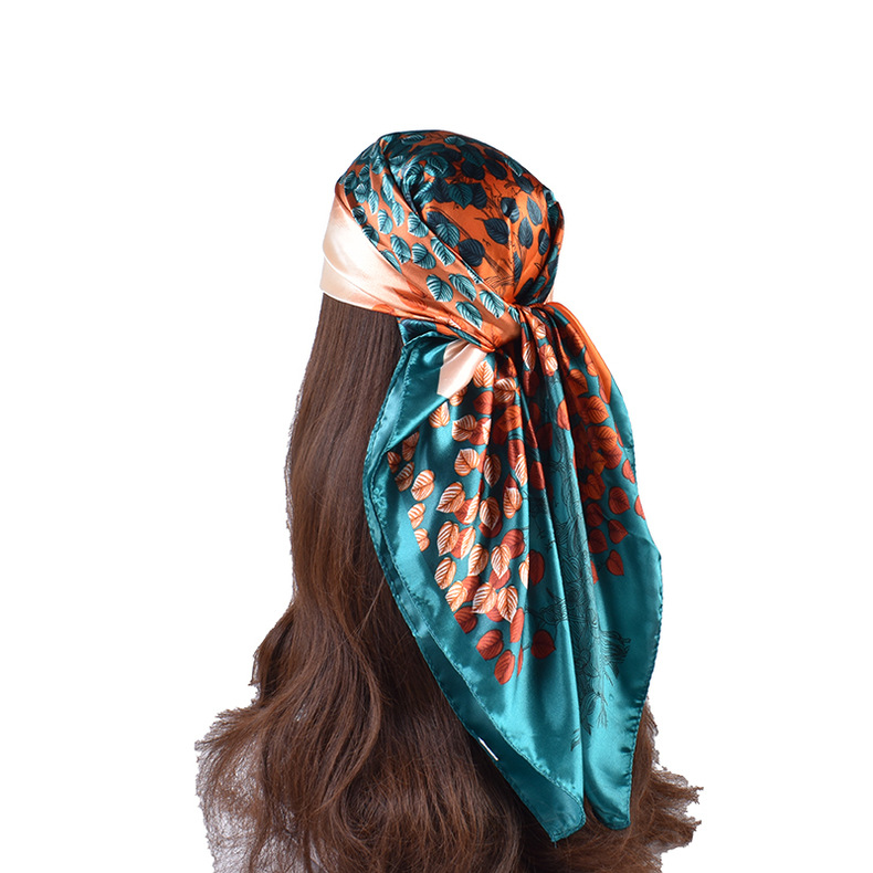 New fashionable retro multicolored leaf print 90-color diced large square scarf silk scarf headscarf