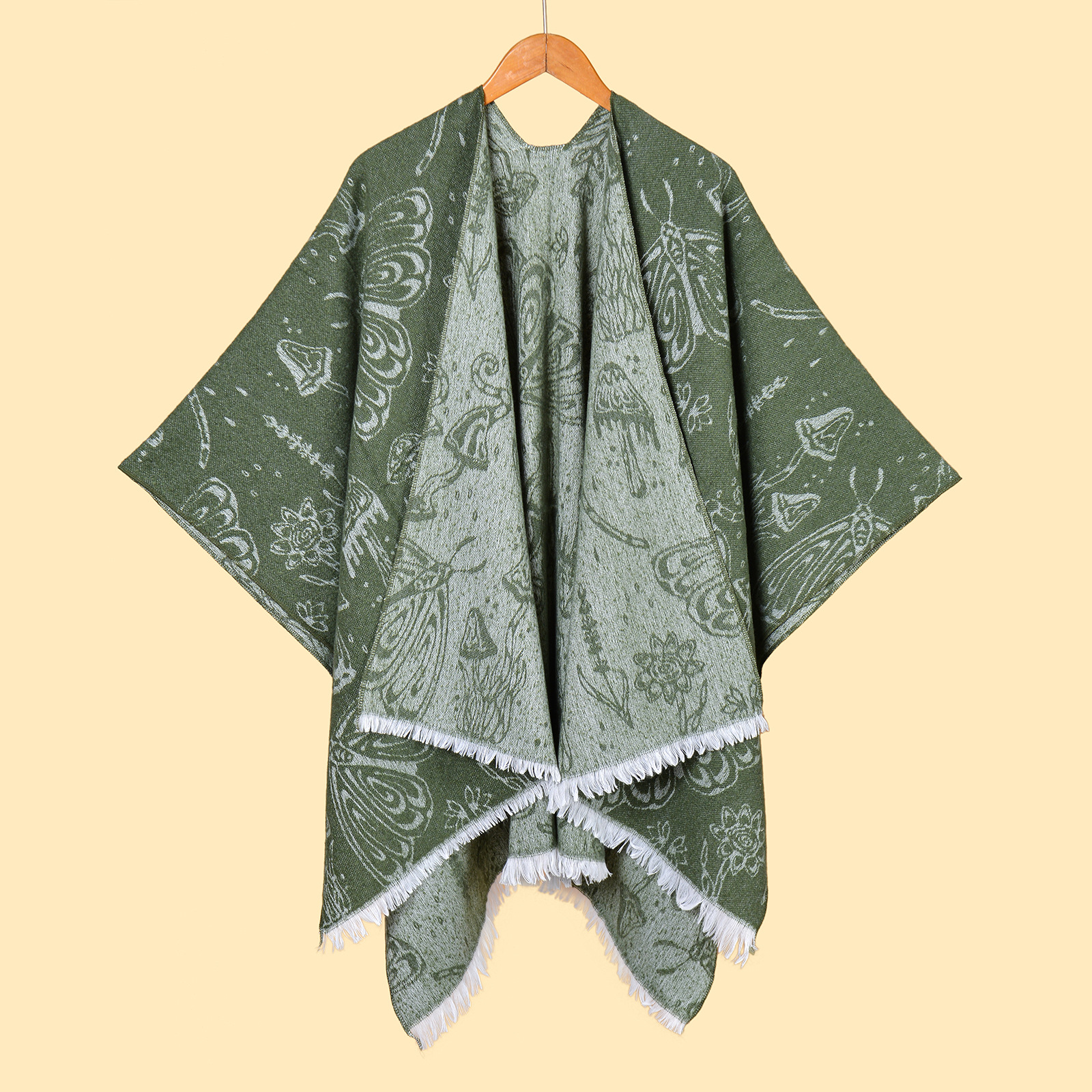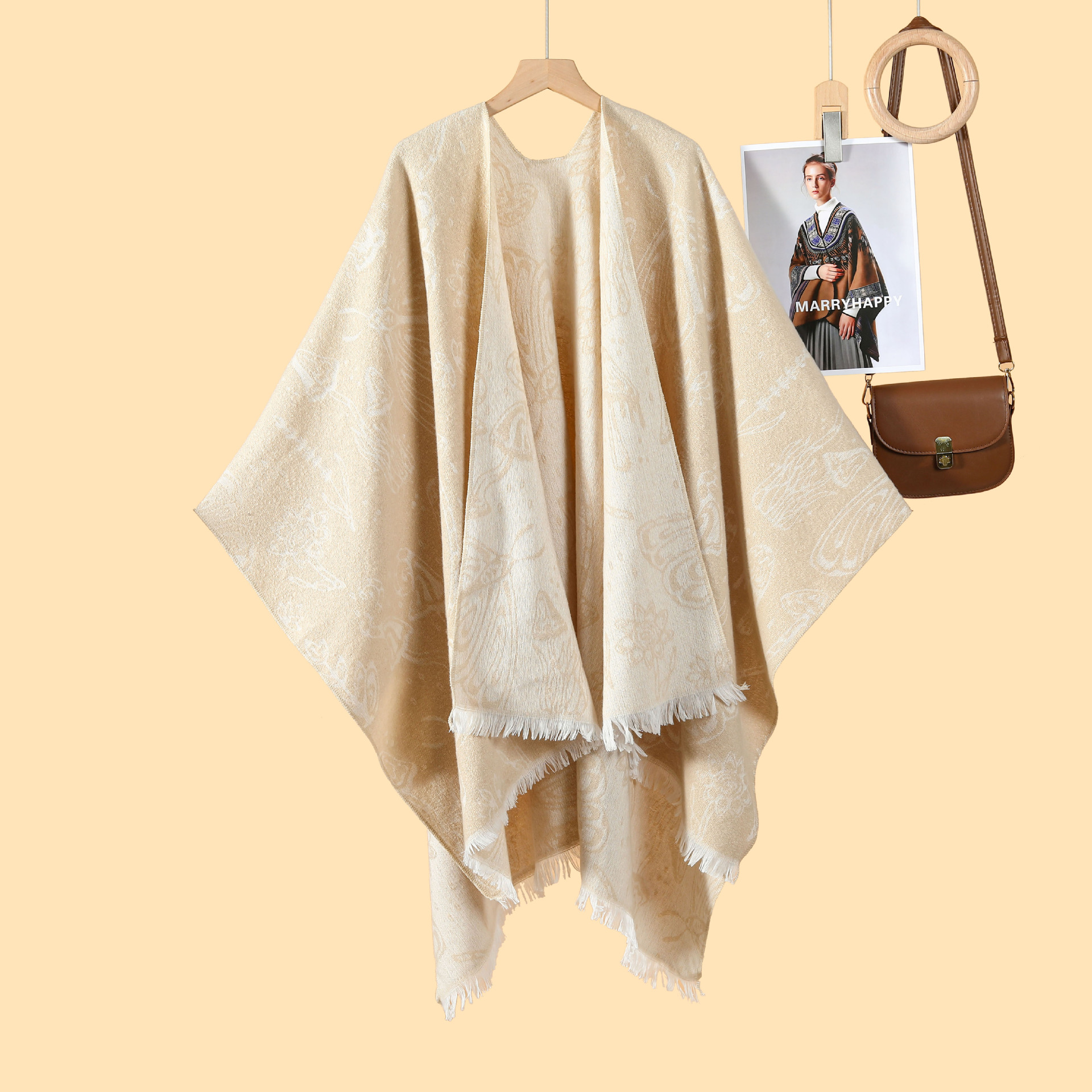 New idyllic ladies double-sided loose beard jacquard warm split fork outer cloak hot cloak