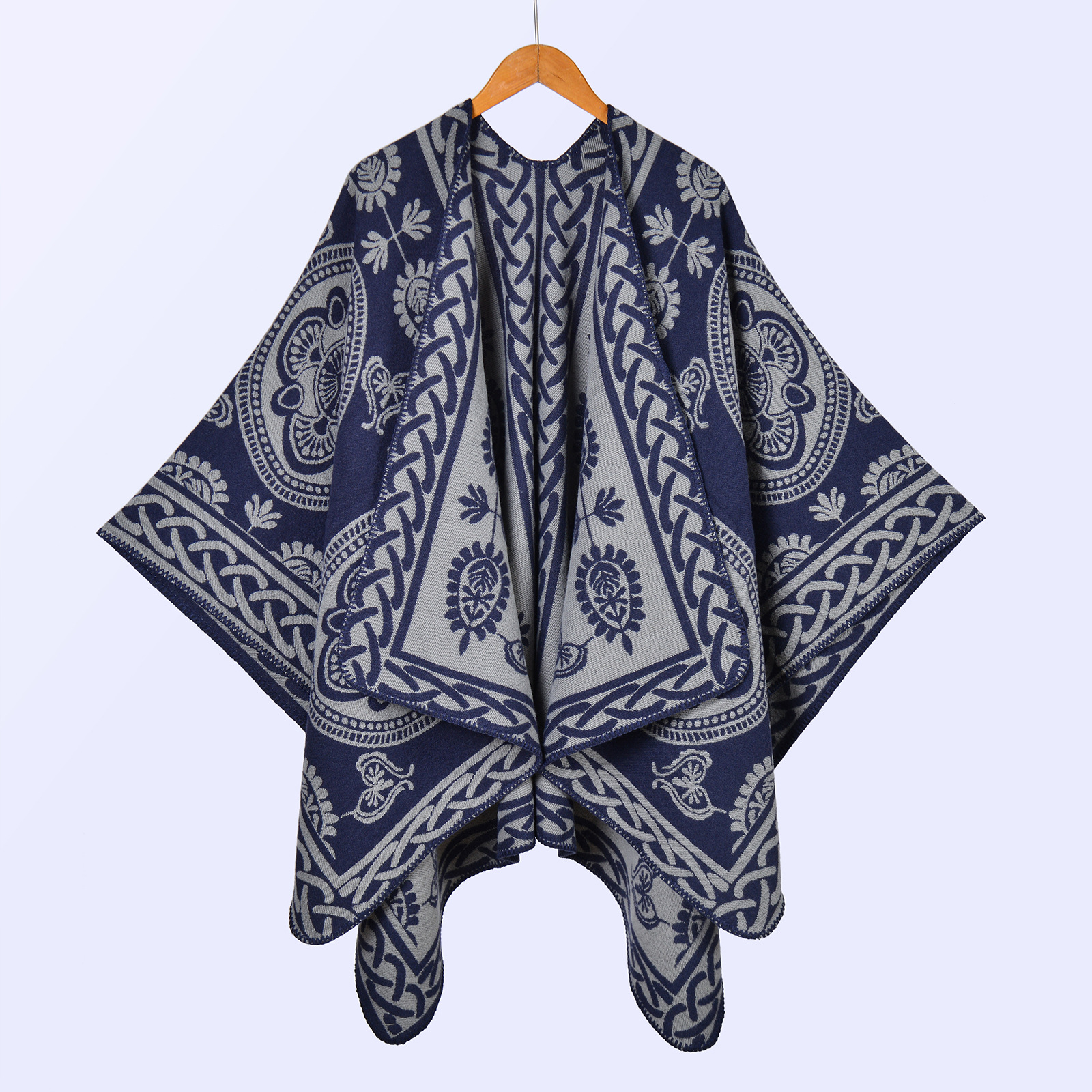 New women's scarves and shawls on European and American streets, thickened imitation cashmere jacquard split warm cape in autumn and winter
