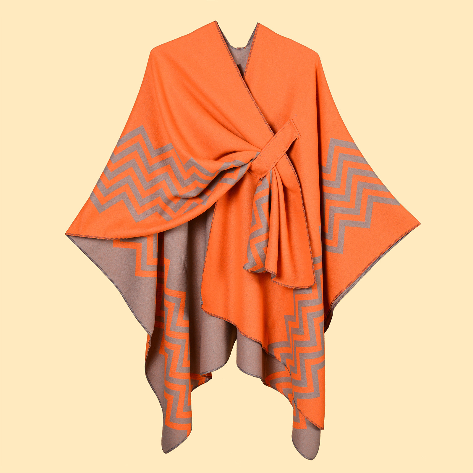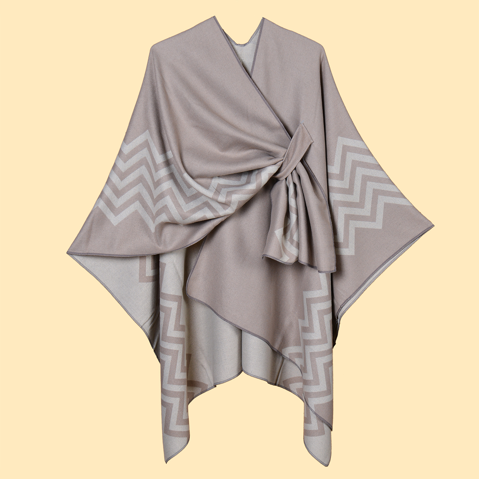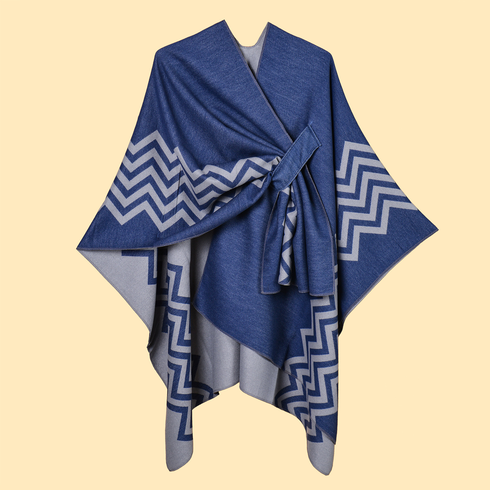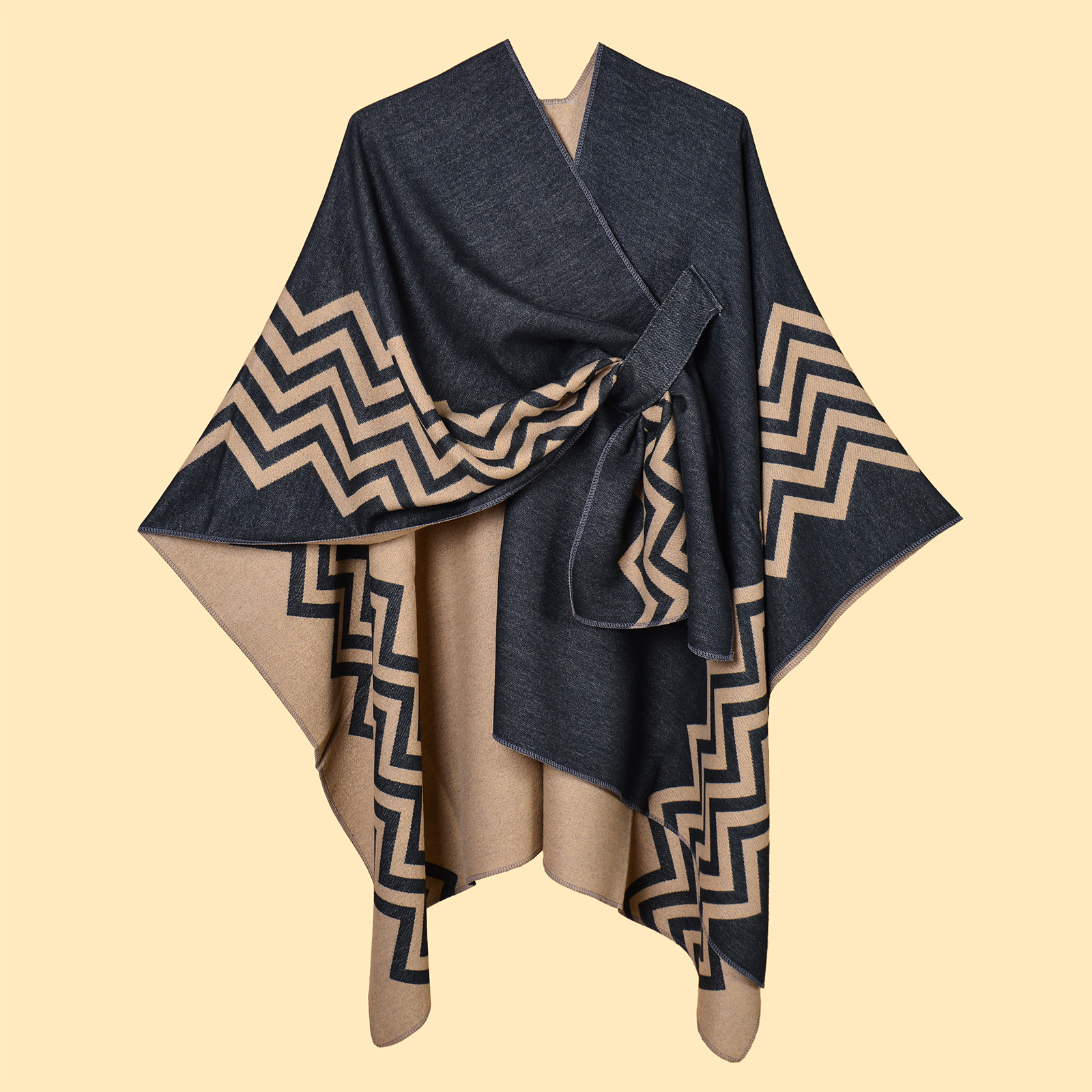 New Women's Wave Pattern Split Shawl Cardigan Multifunctional Autumn and Winter Straps Cloak Shawl New