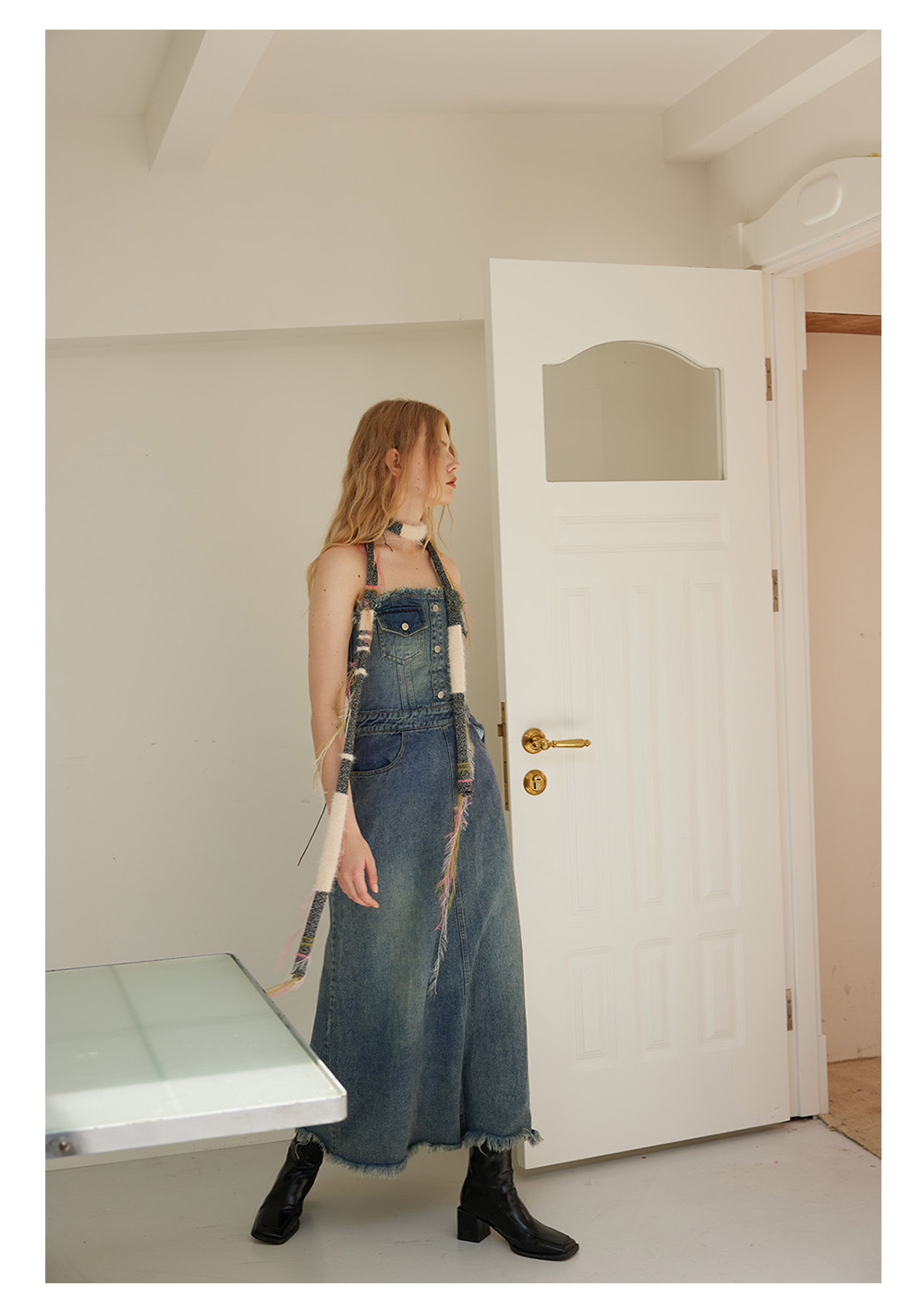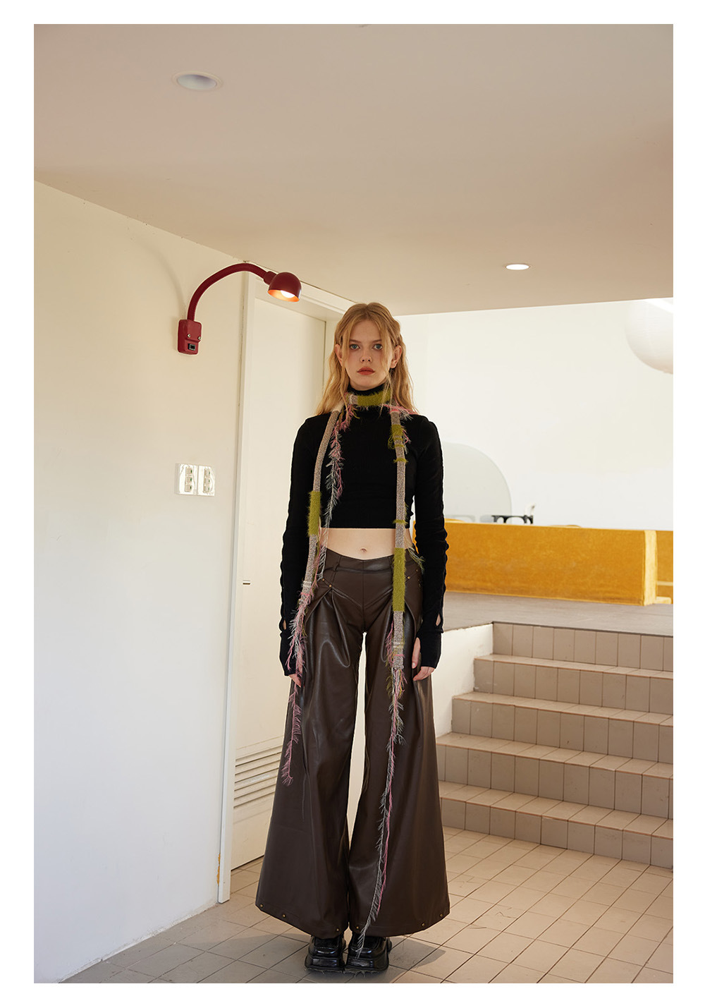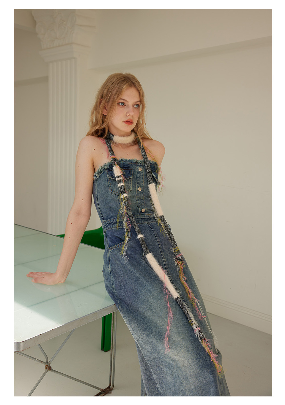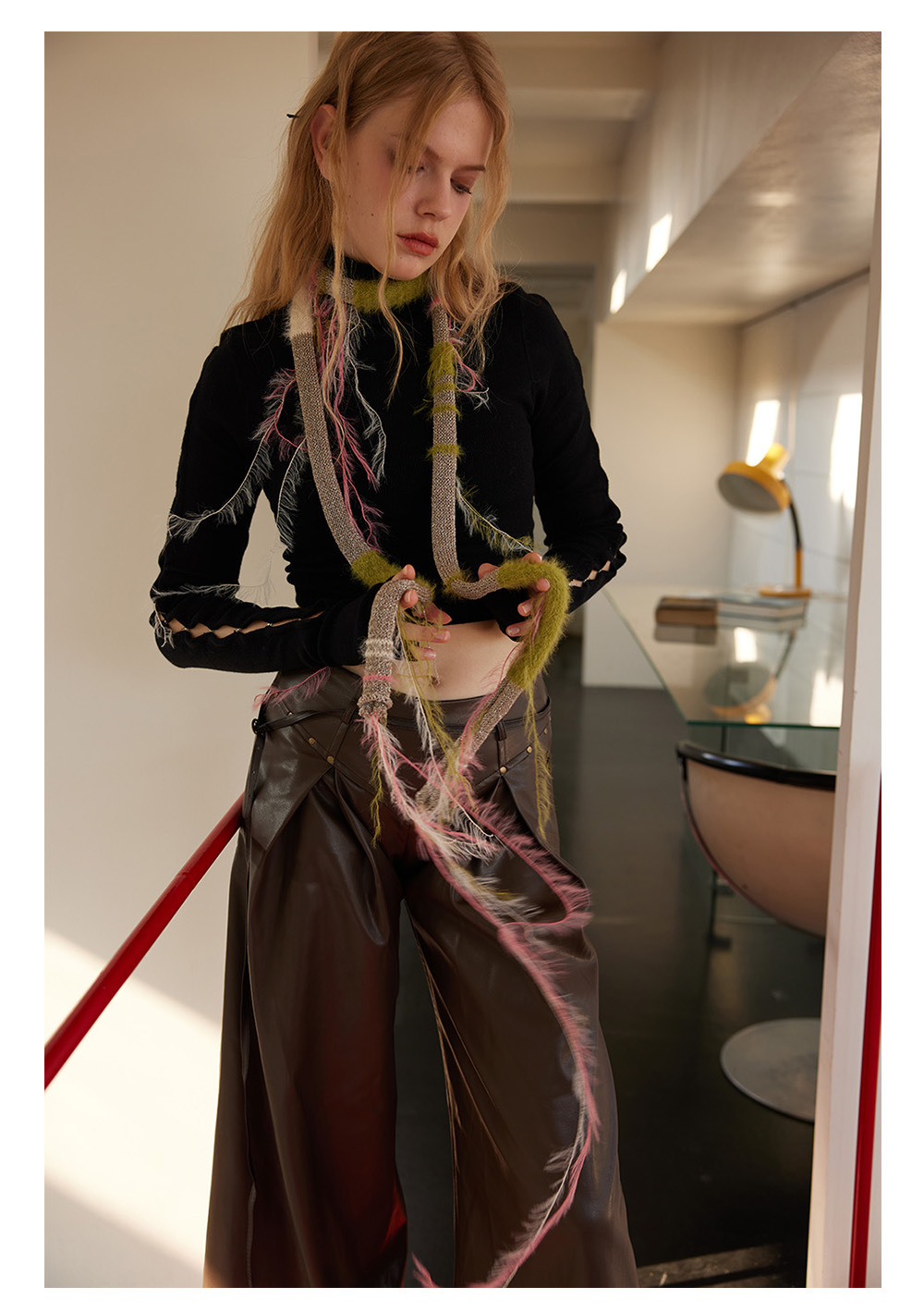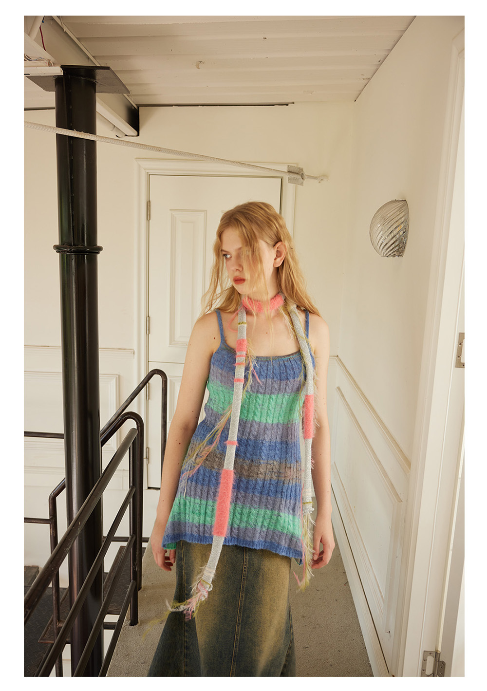 Niche broken retro mixed color hanging beard bright silk scarf scarf female slender shape dark wind JK fringed scarf