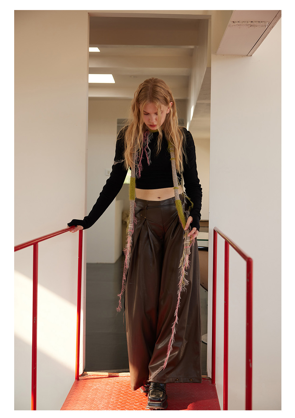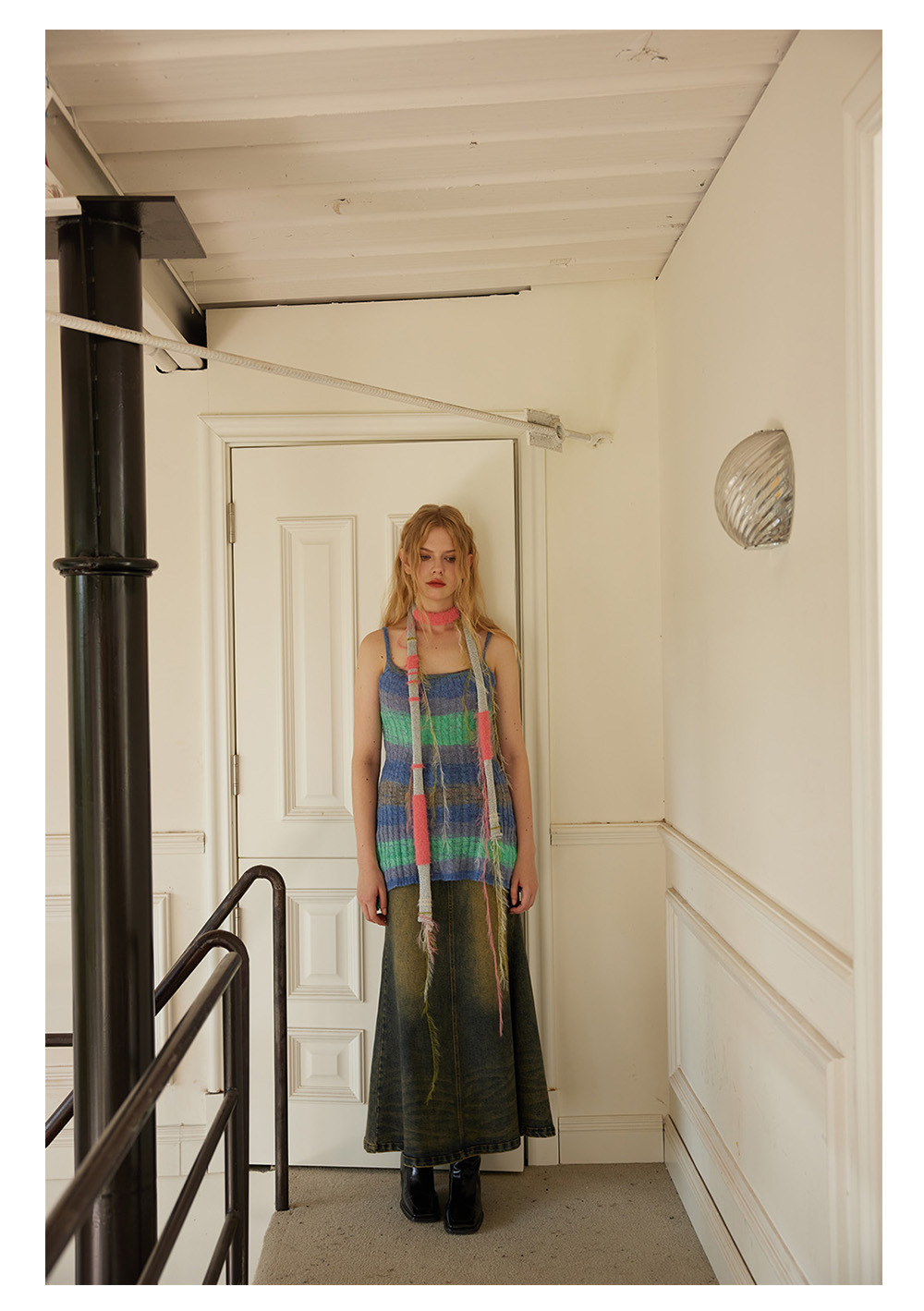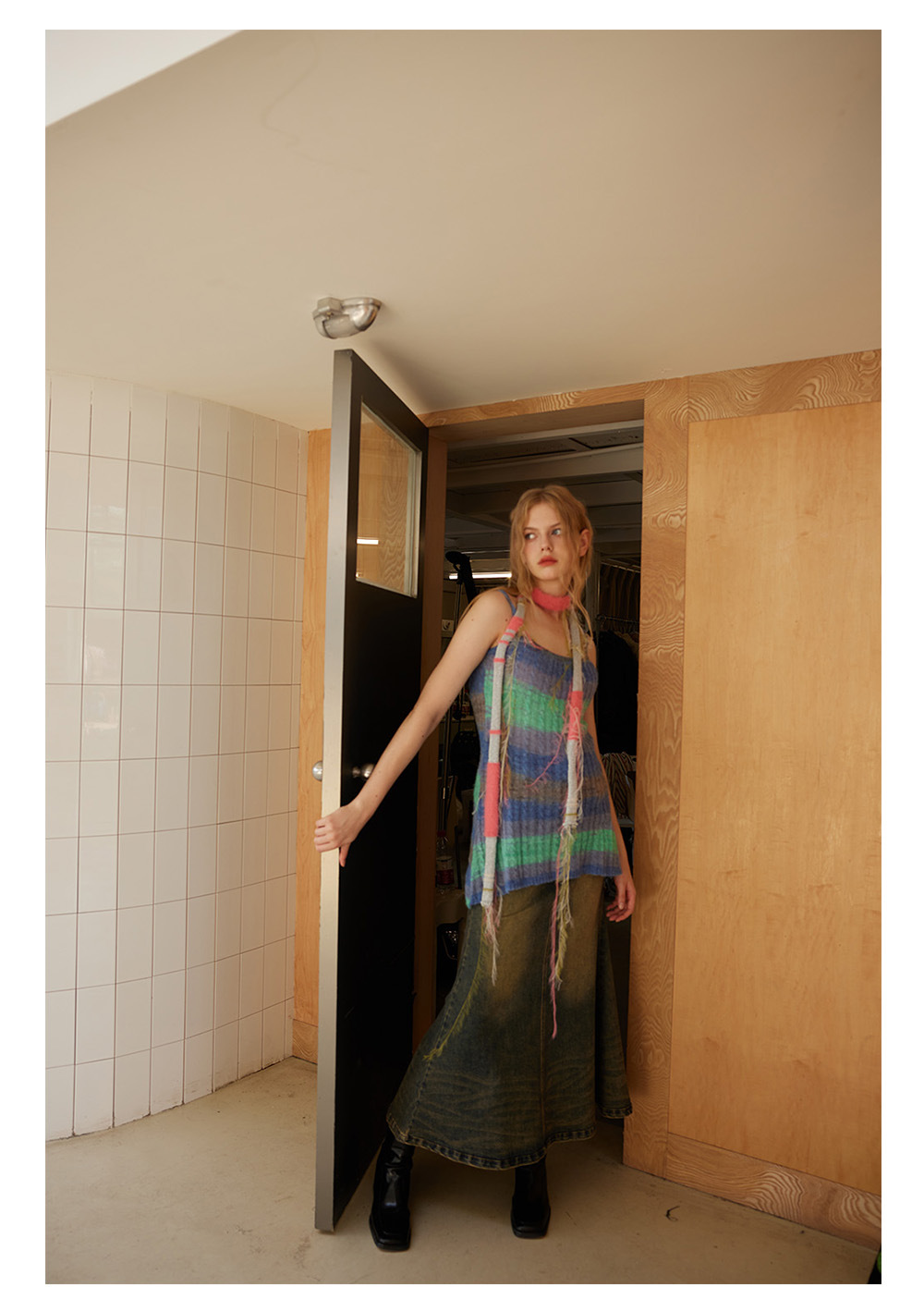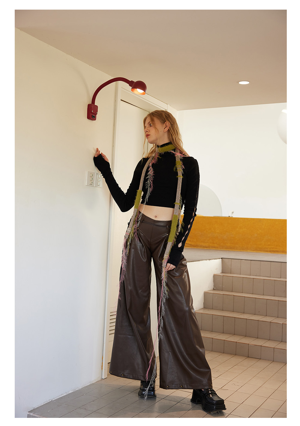 Niche broken retro mixed color hanging beard bright silk scarf scarf female slender shape dark wind JK fringed scarf