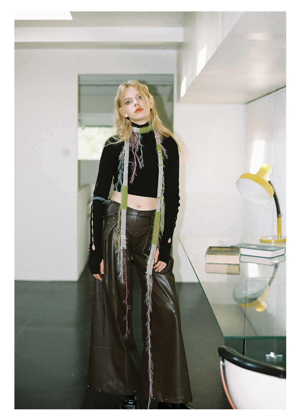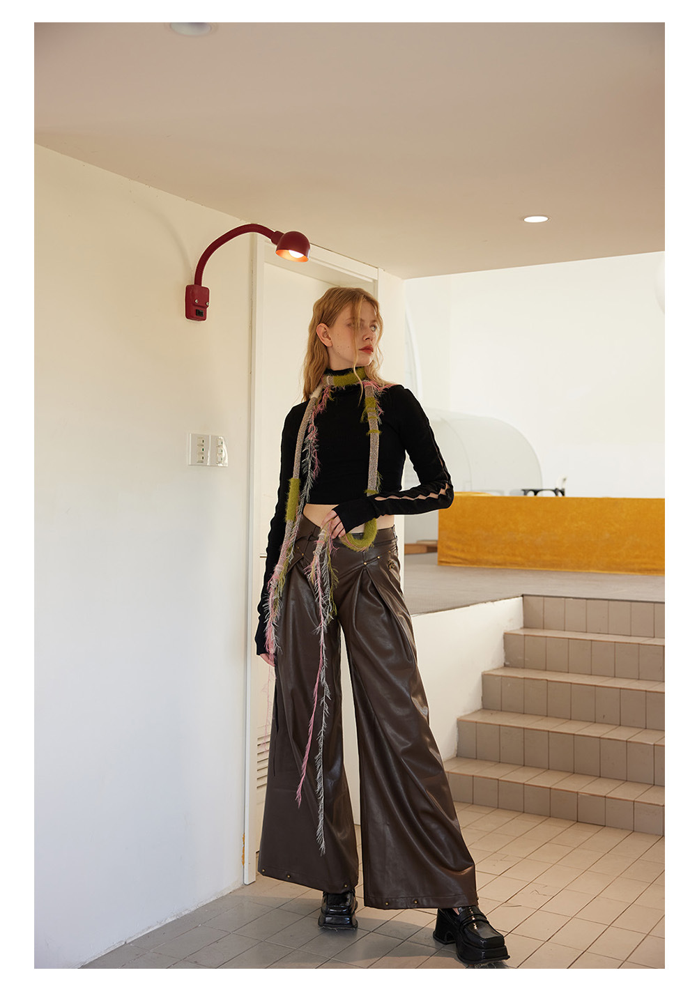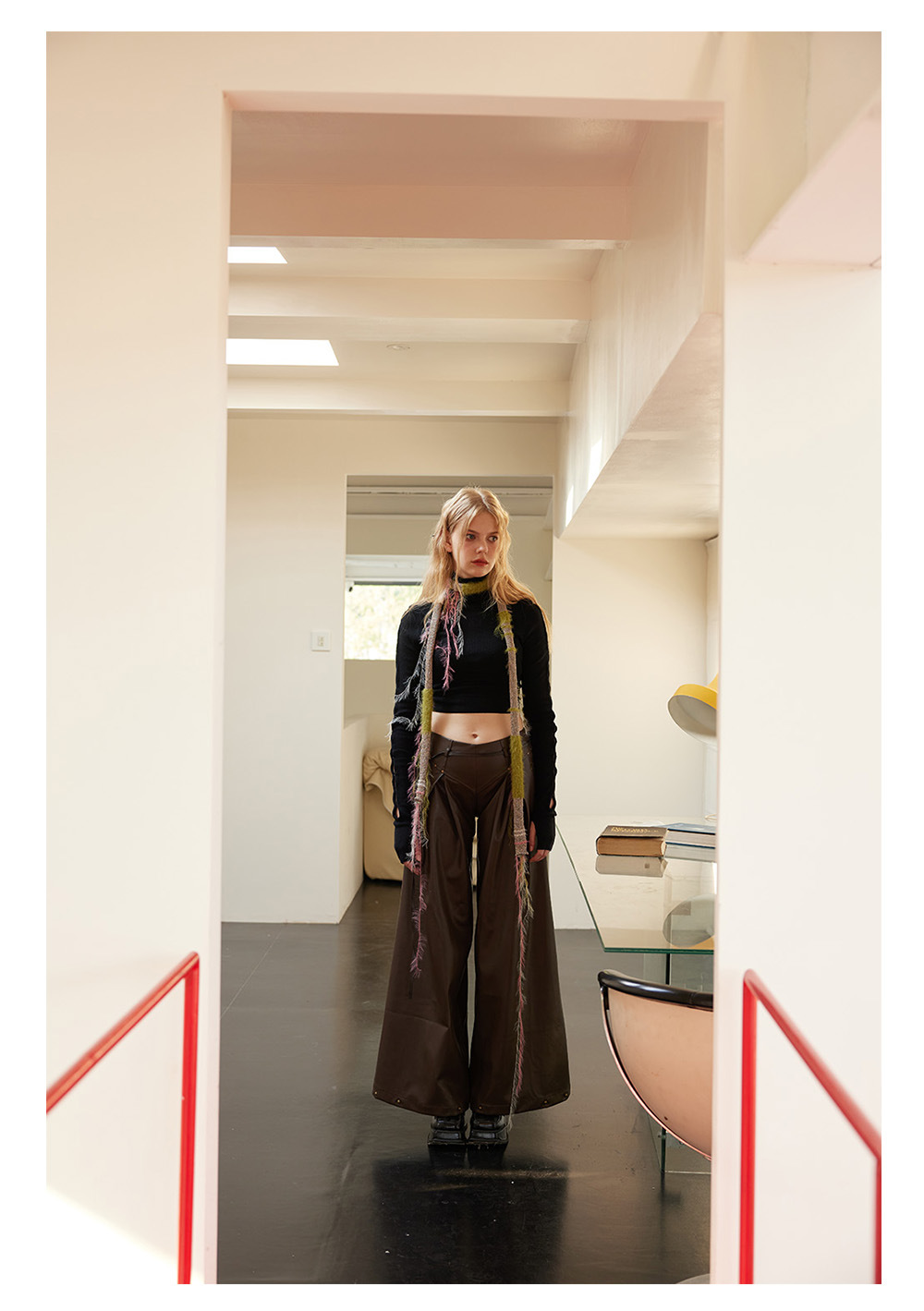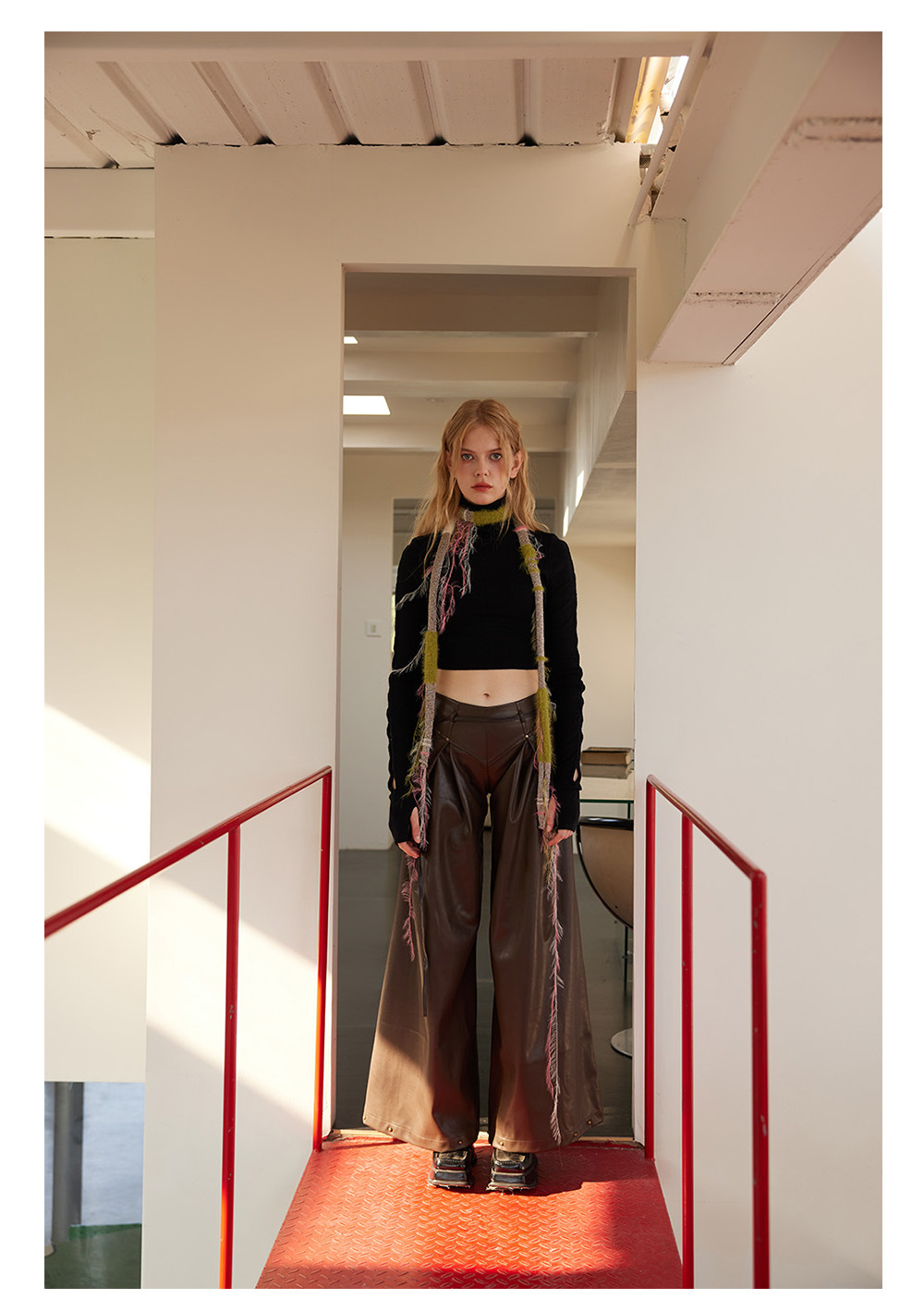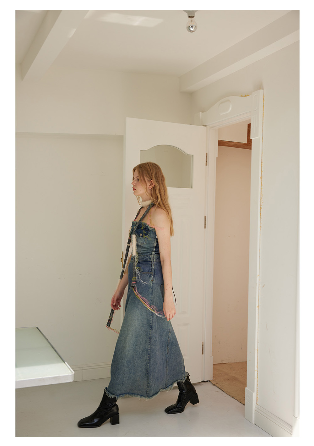 Niche broken retro mixed color hanging beard bright silk scarf scarf female slender shape dark wind JK fringed scarf