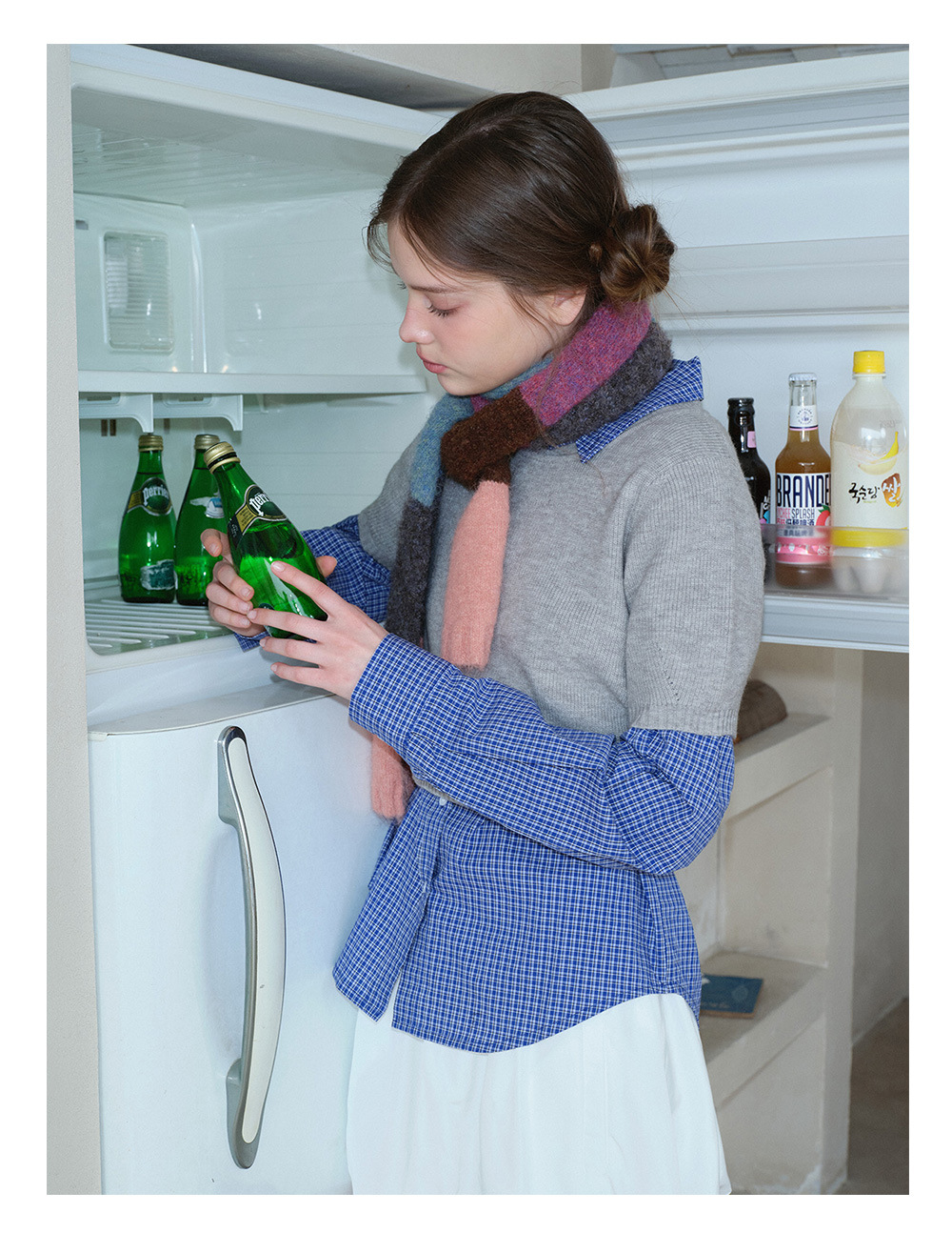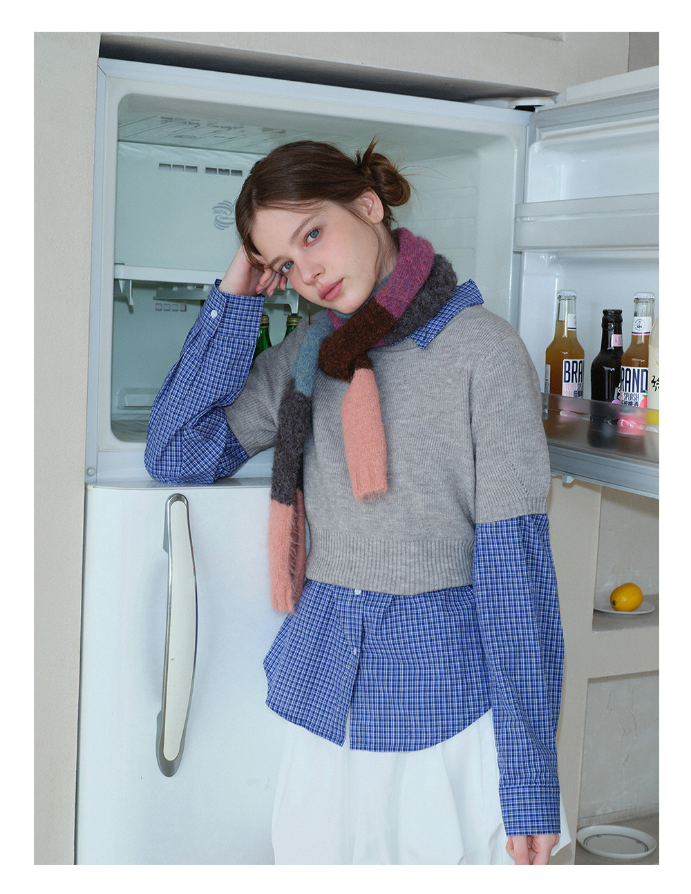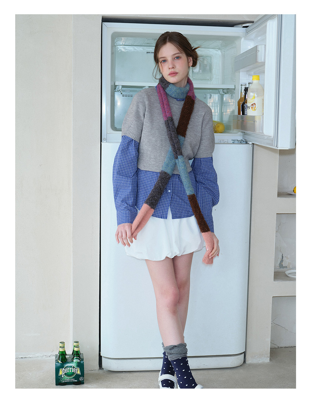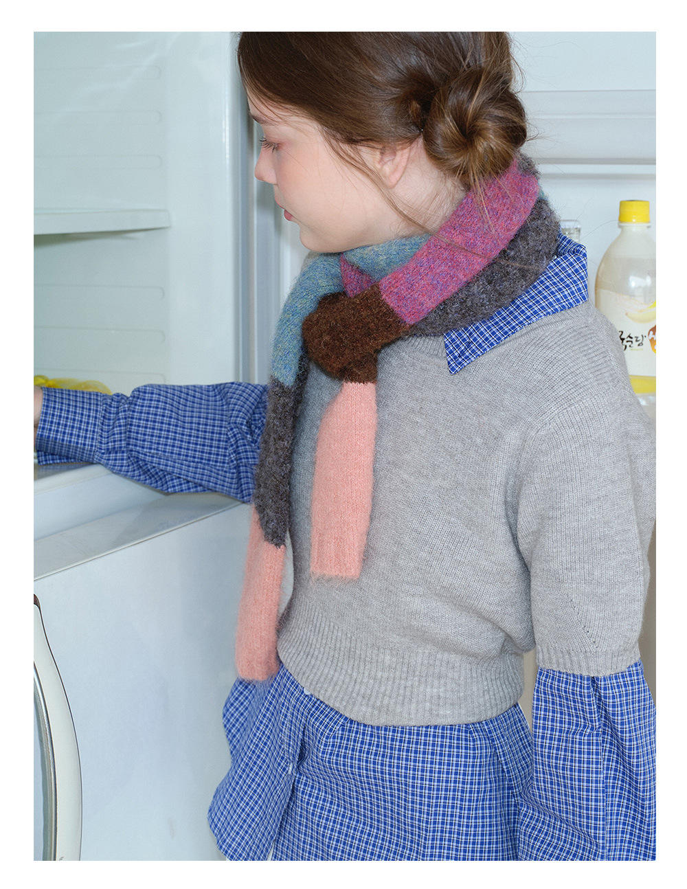 Niche color matching wool blended sausage knitted scarf women's early autumn concave shape y2k fine and narrow wool scarf
