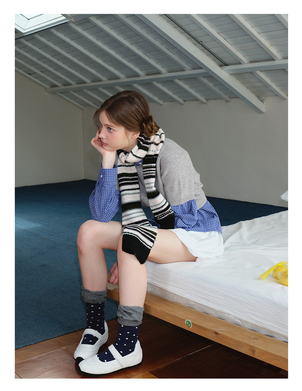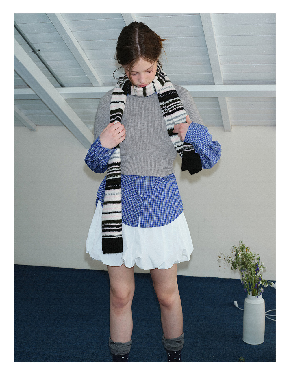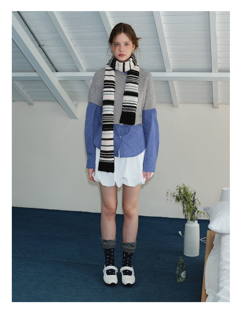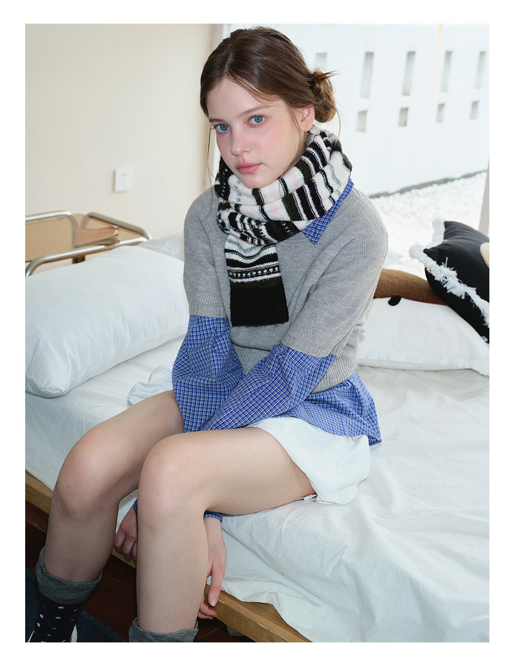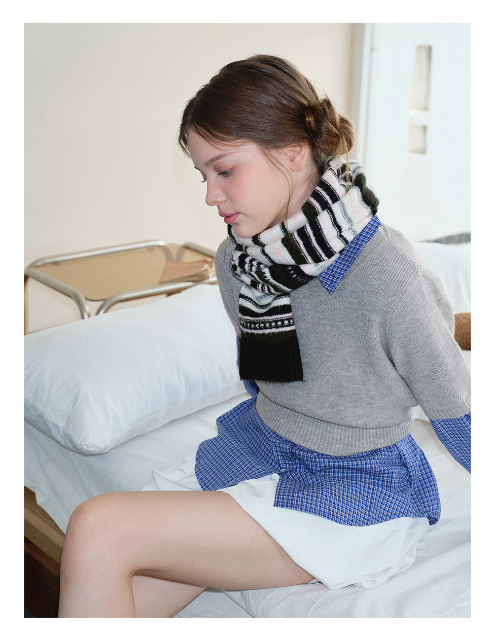 Niche designer wool blended multi-color striped scarf women's autumn and winter with soft knitted color matching scarf