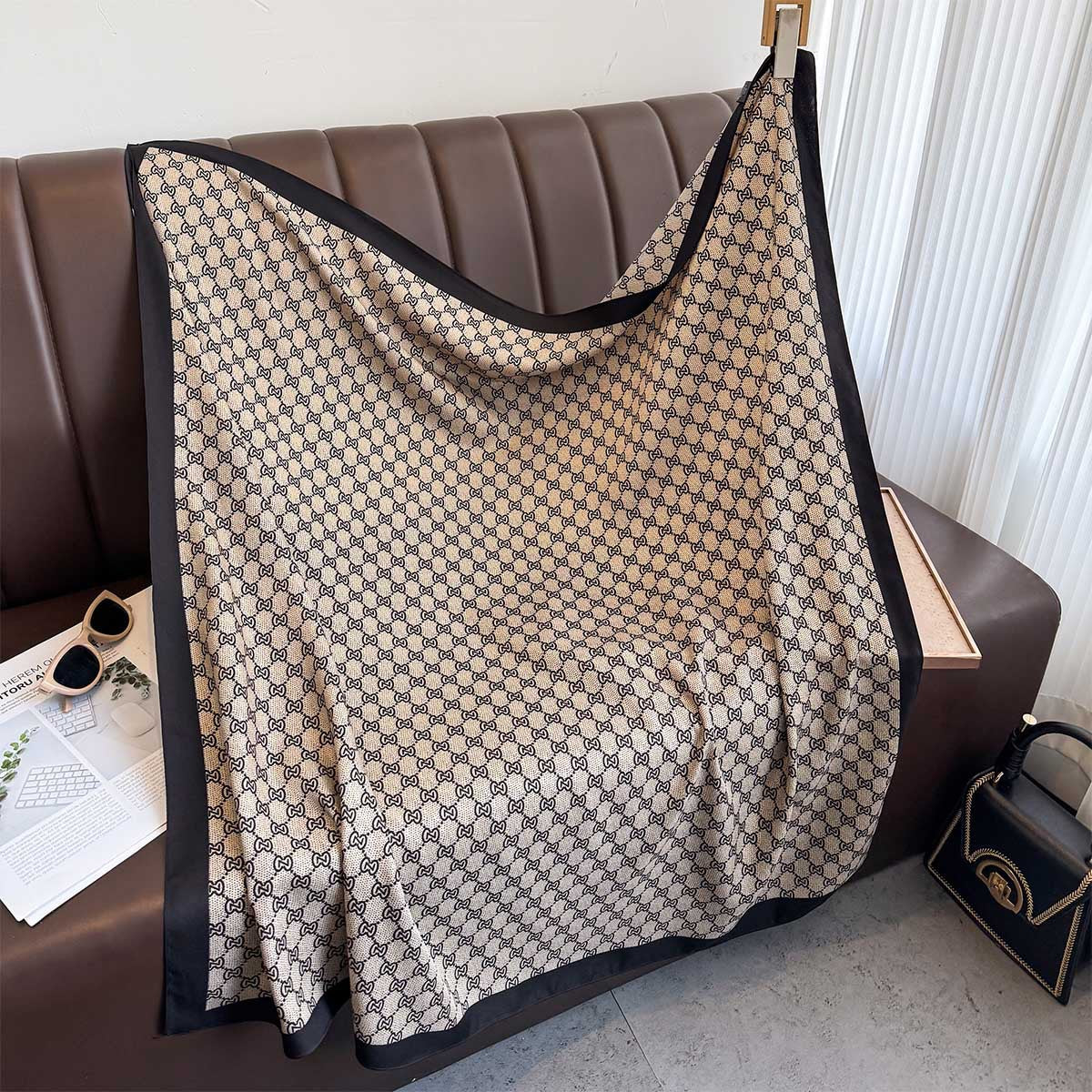 Plaid scarf twill silk large square scarf travel sunscreen shawl decorative headscarf 90cm letter silk scarf new