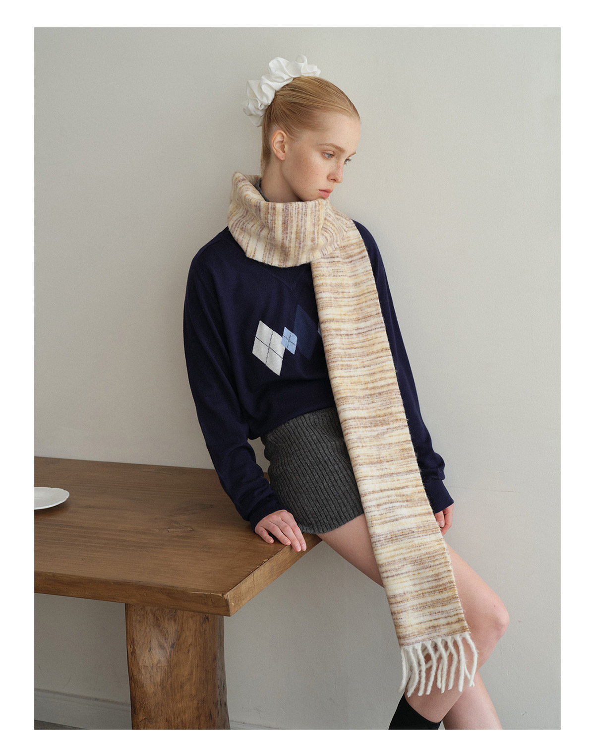 Scarf containing wool gradual change women's winter niche segment dye soft Korean brushed soft fringed wool scarf