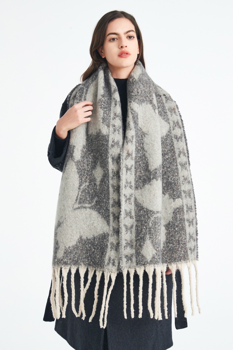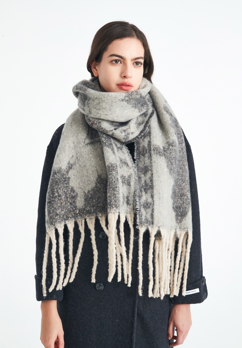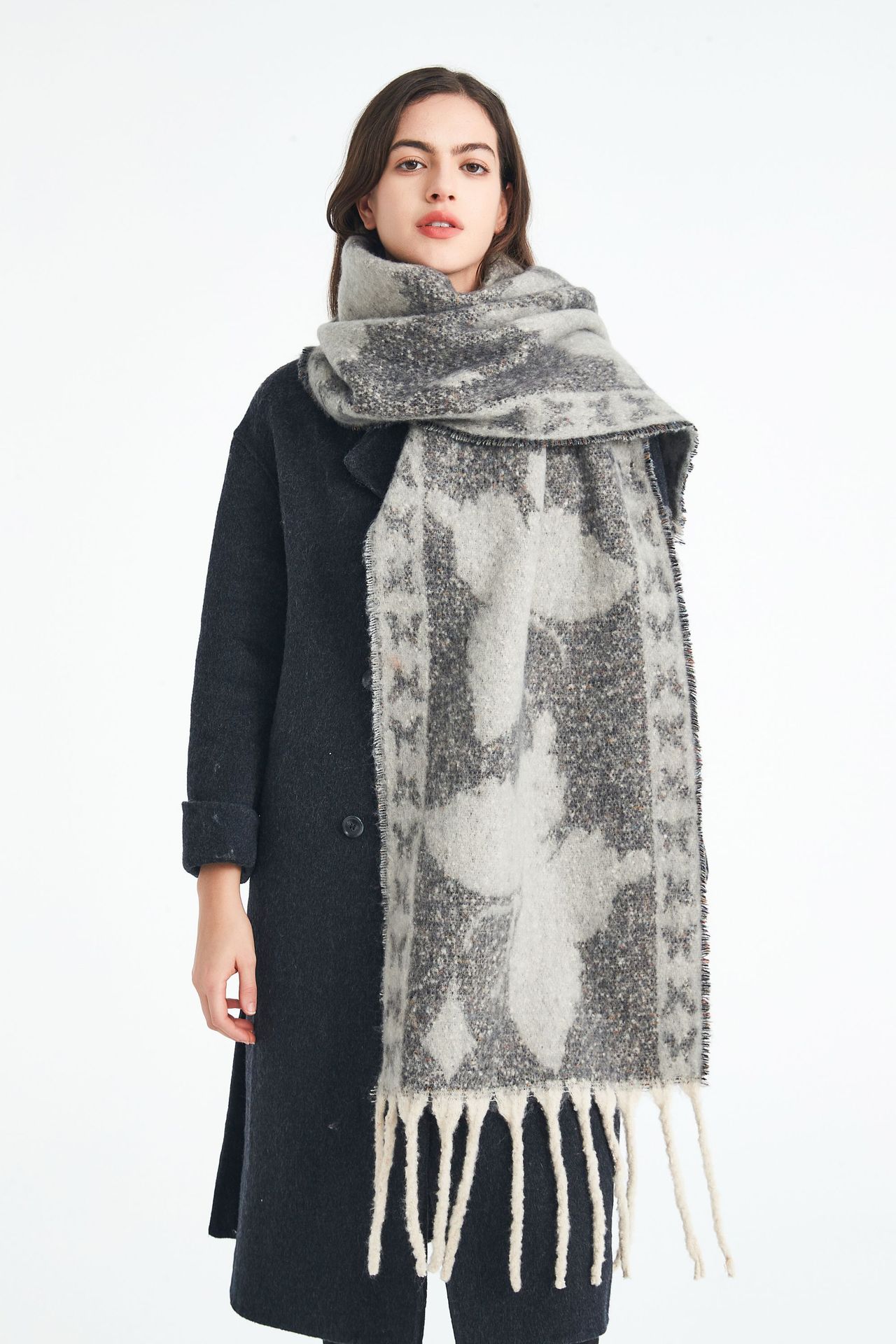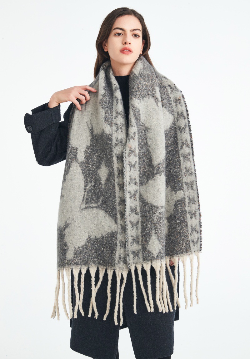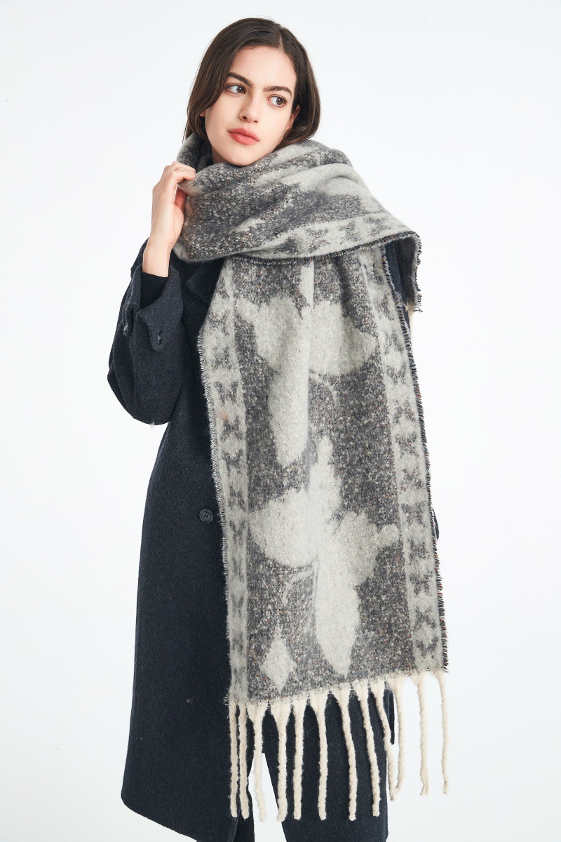 Scarf European, American autumn and winter thickened imitation mohair loop yarn butterfly jacquard scarf