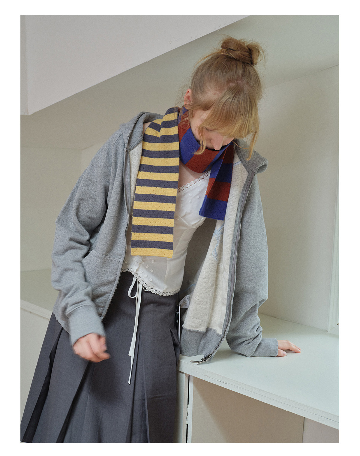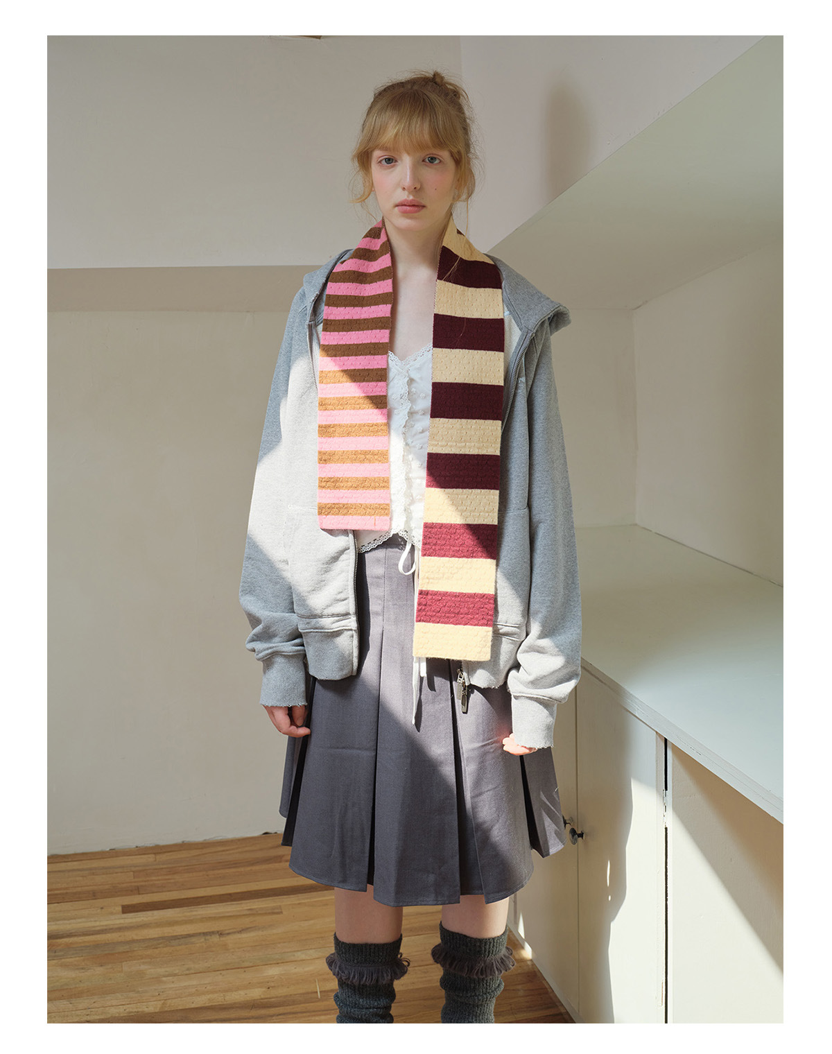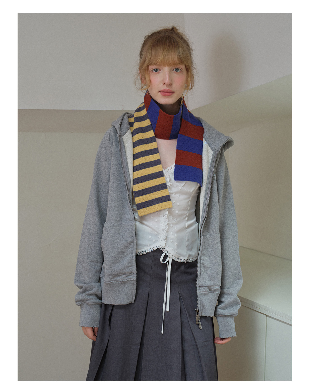 Selected 100% High Count Merino Wool Splicing Striped Scarf Women's Autumn and Winter Narrow Girly Scarf