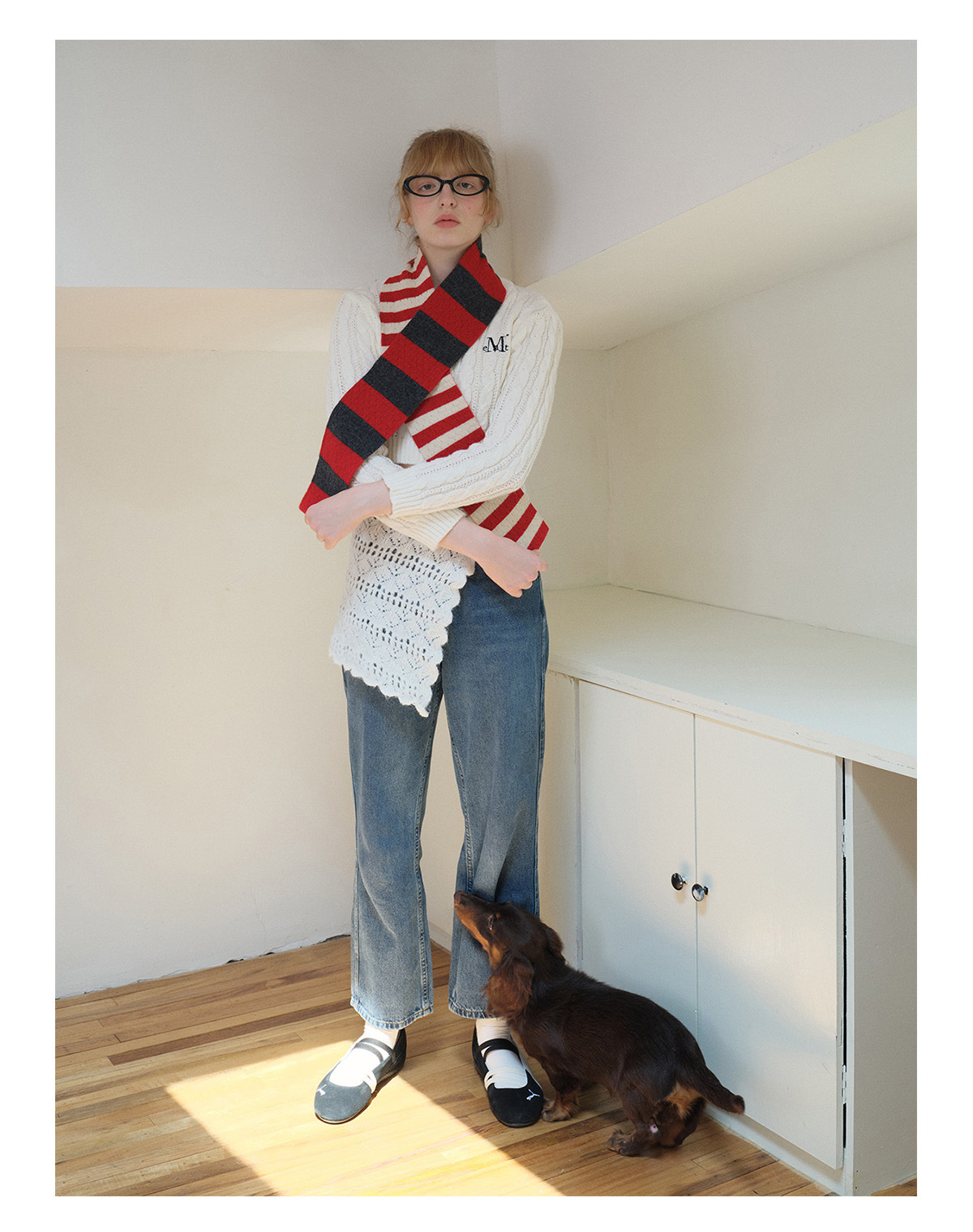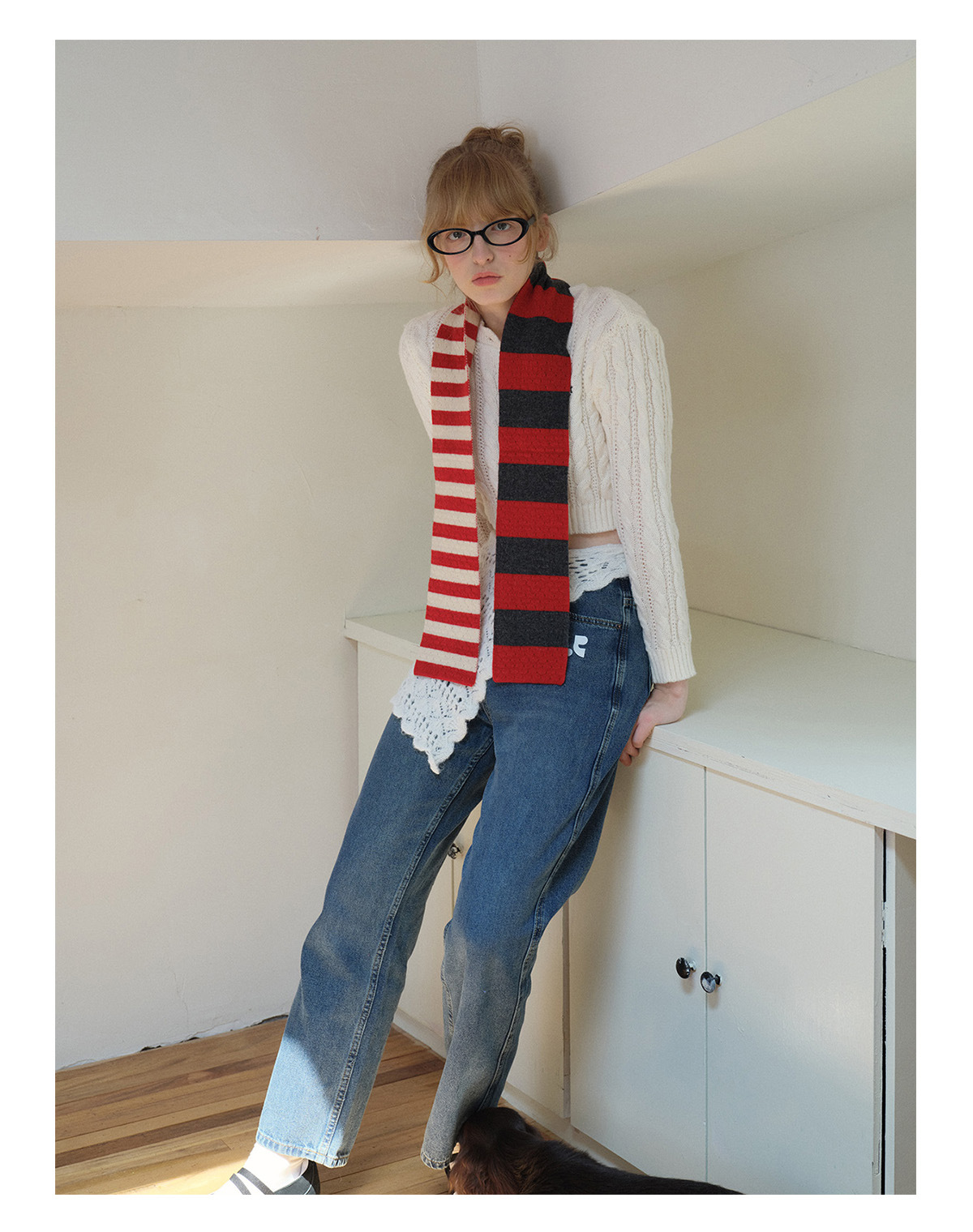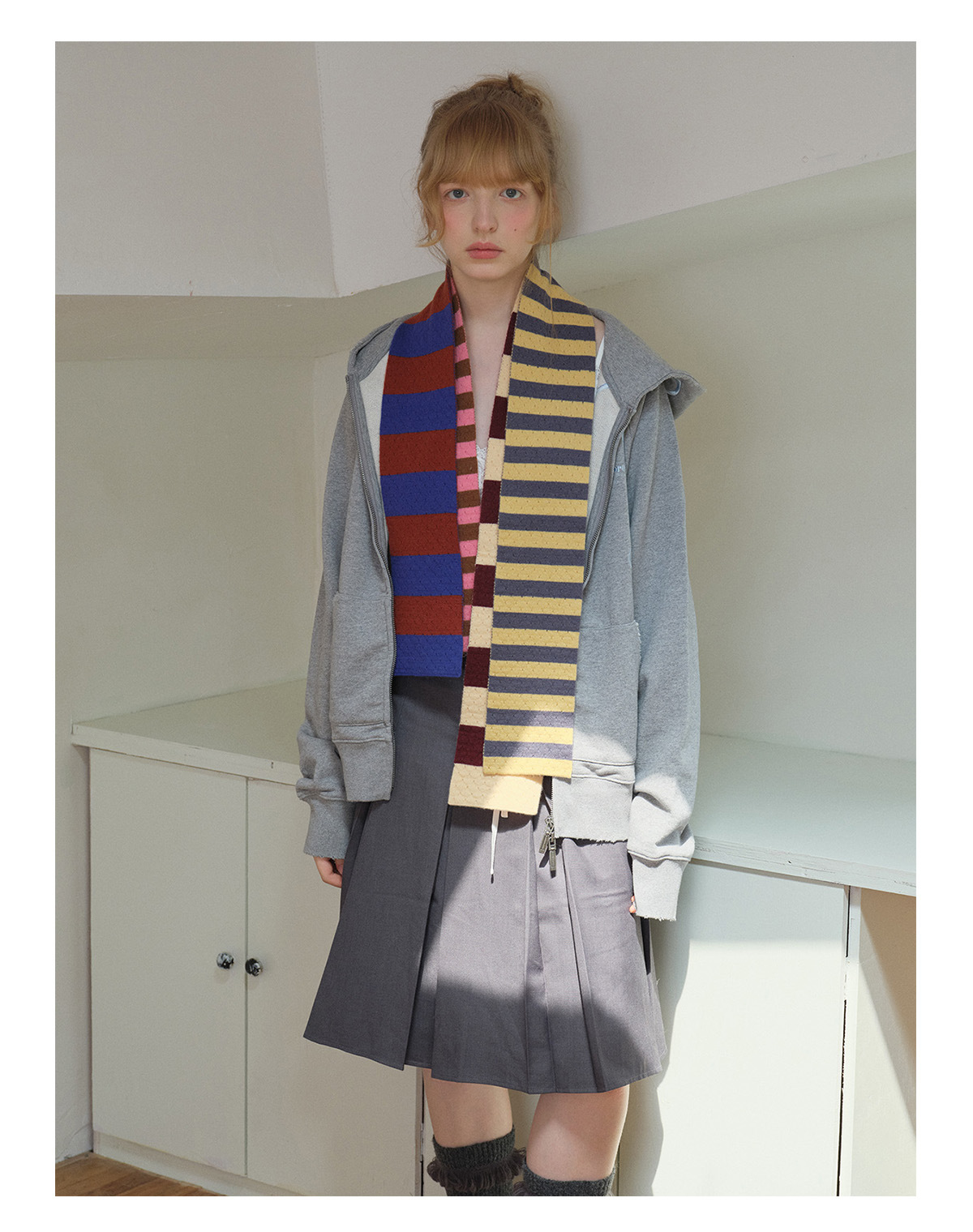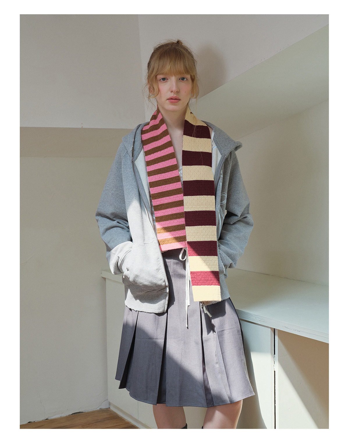 Selected 100% High Count Merino Wool Splicing Striped Scarf Women's Autumn and Winter Narrow Girly Scarf