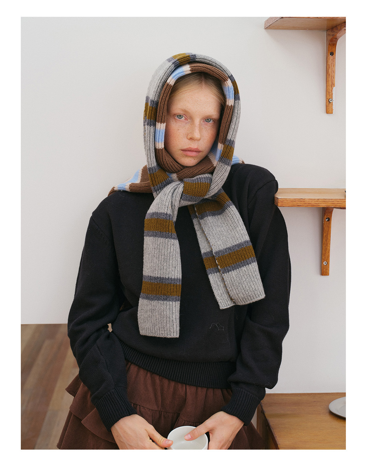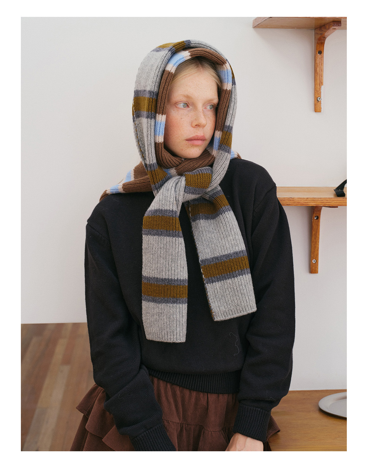 Selected 100% wool striped knitted scarf women's autumn and winter Korean atmosphere soft waxy wool scarf