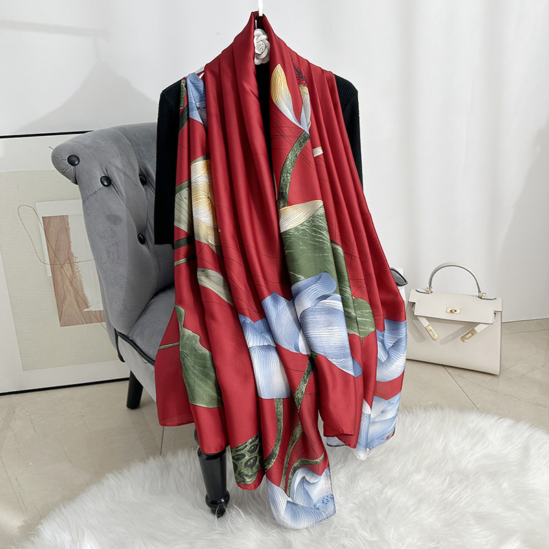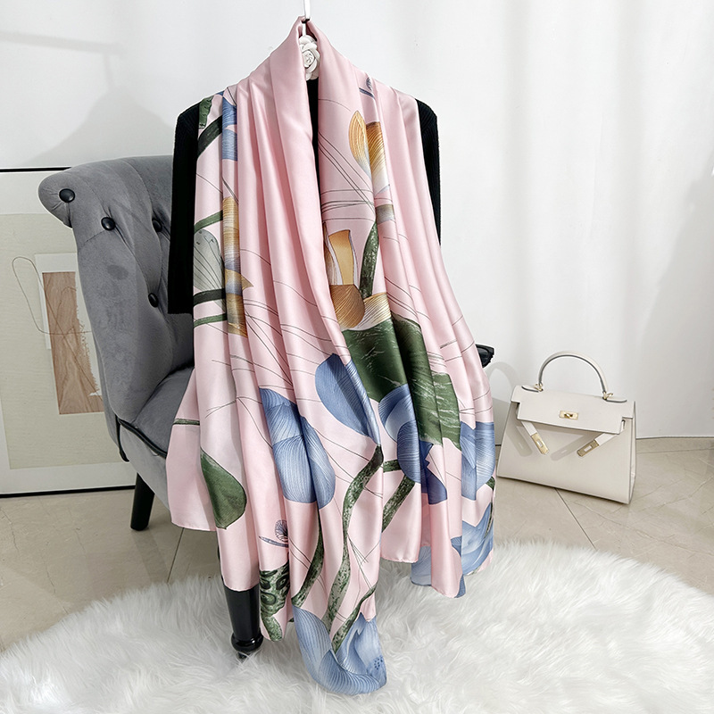 Spring and summer new fashionable and foreign long silk scarves give mother gifts, Lijing satin long scarves travel versatile and light shawls