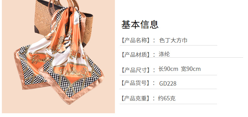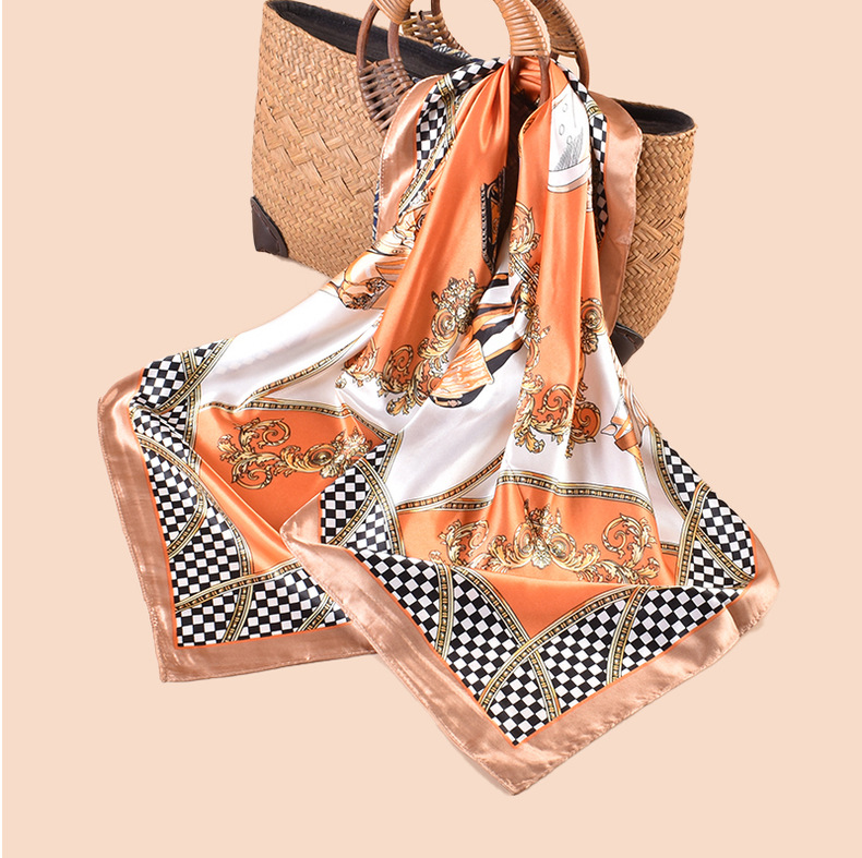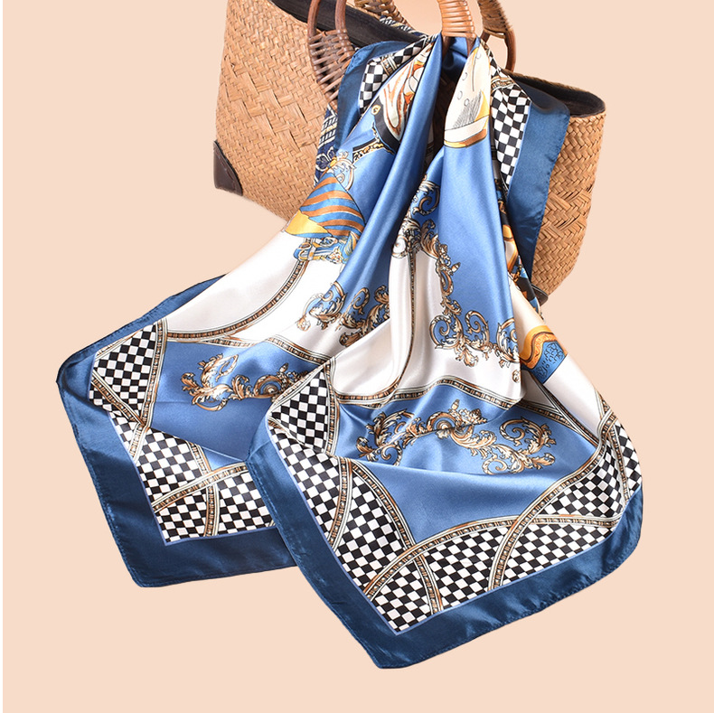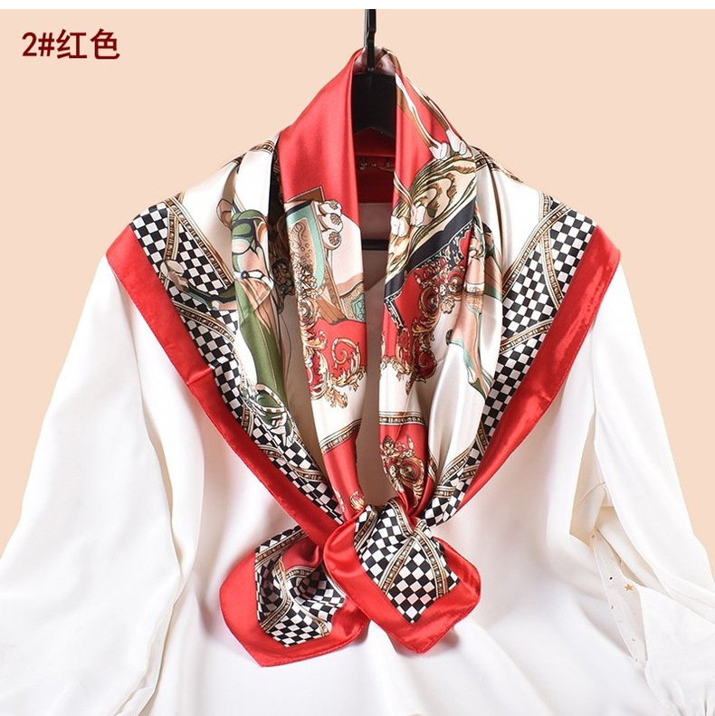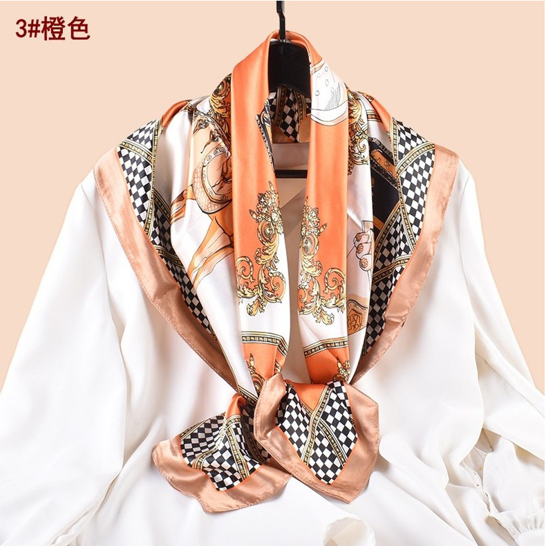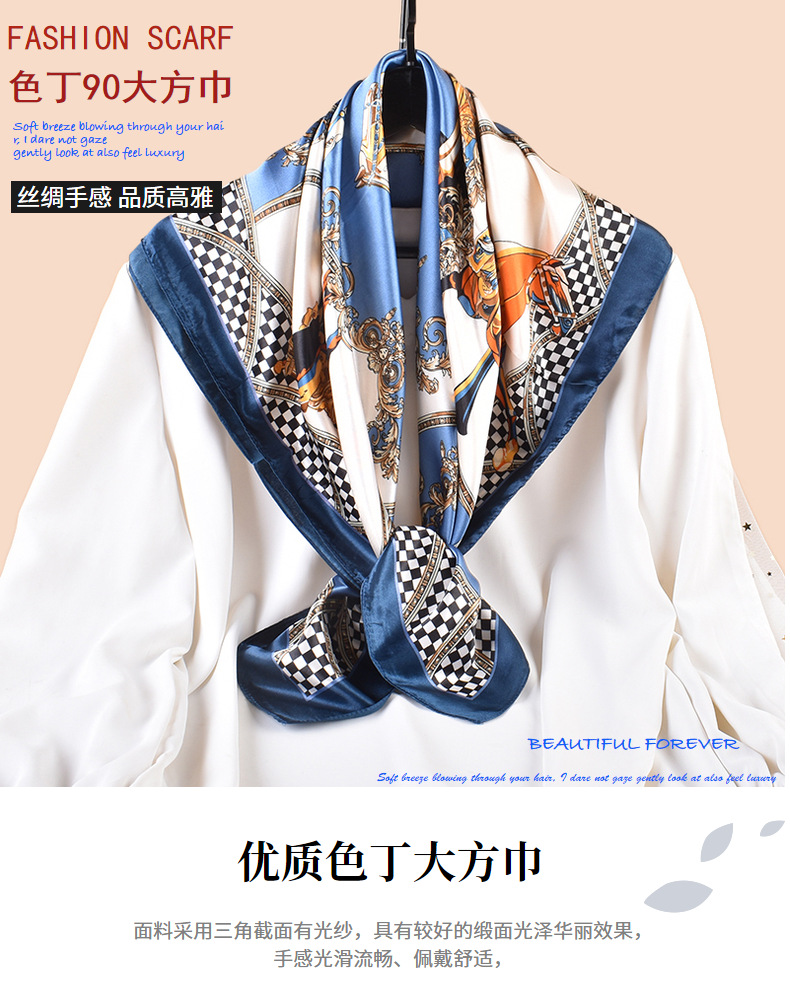 Spring and summer scarf carriage pattern printing versatile decorative scarf silk scarf 90 high-quality satin large square scarf scarf