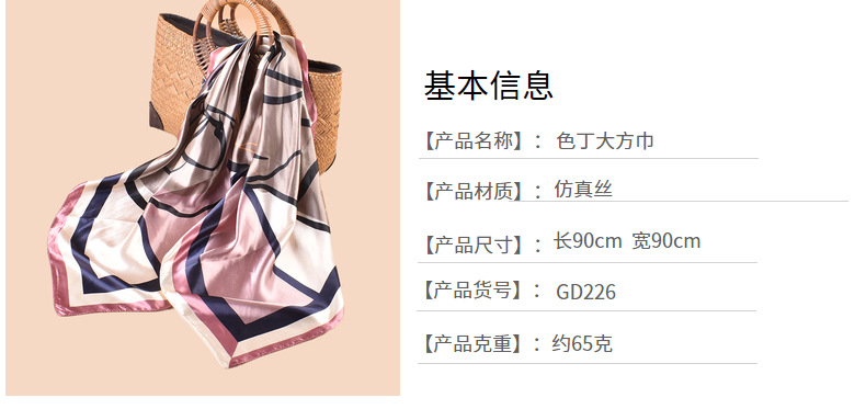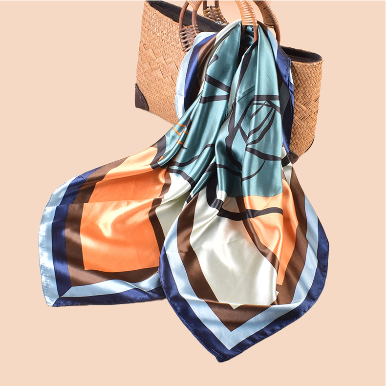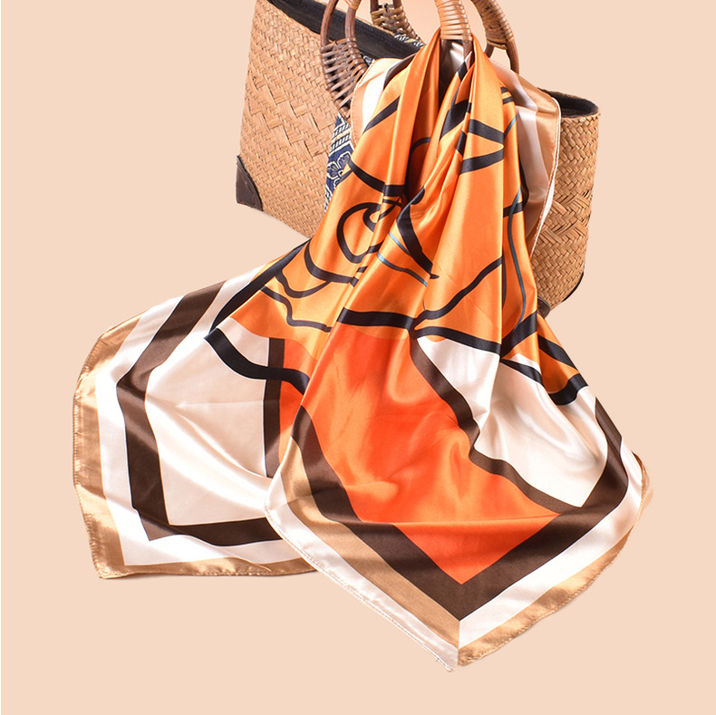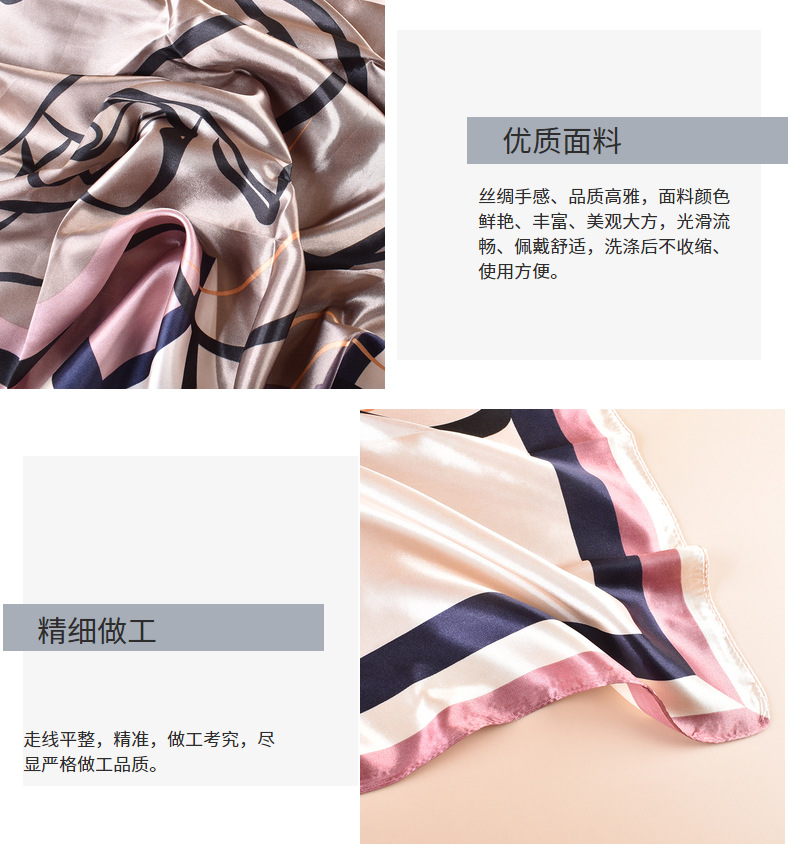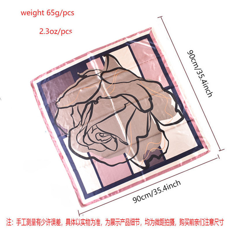 Spring and summer versatile decorative scarf silk scarf temperament rose printing high-quality satin 90 satin square scarf