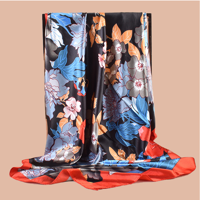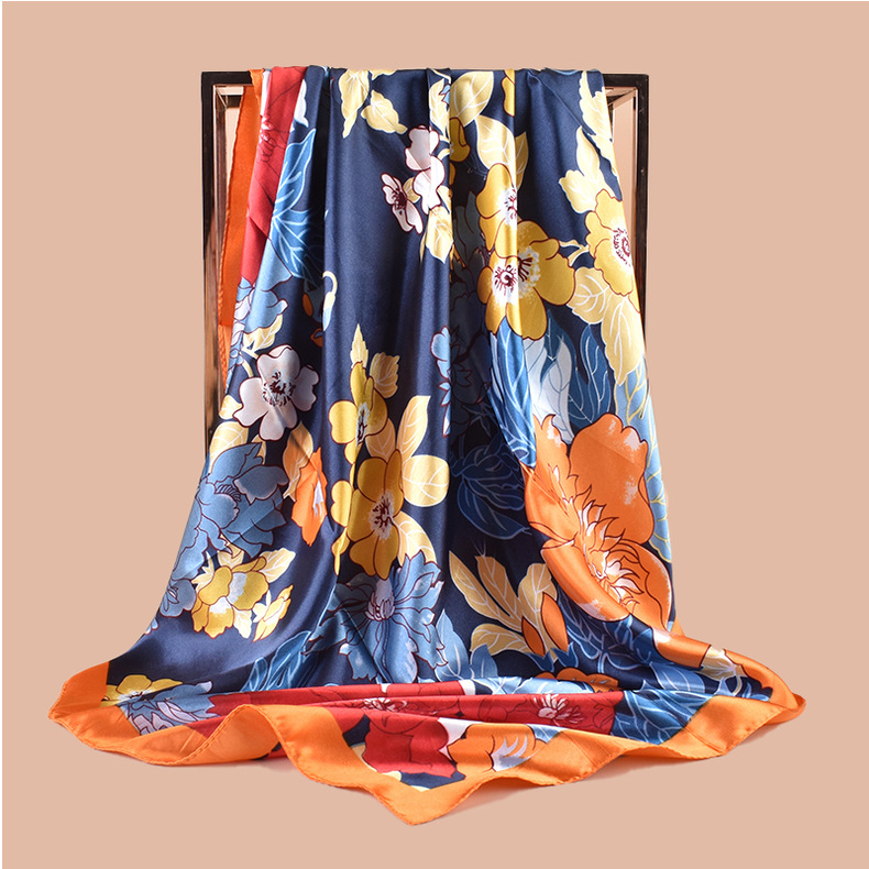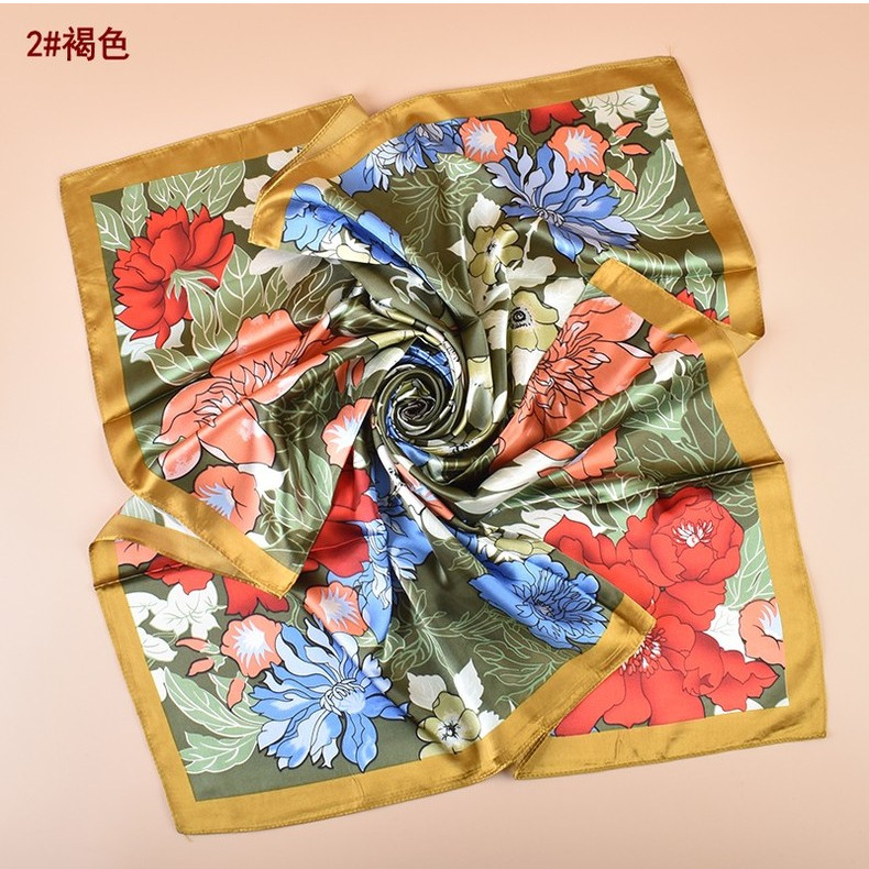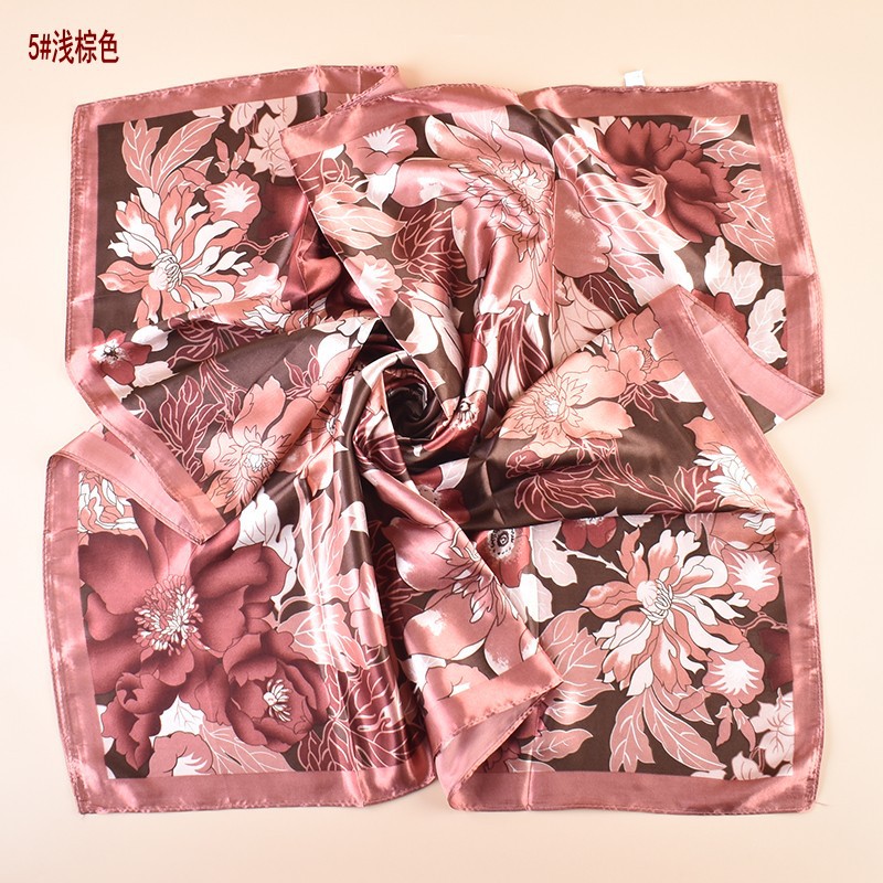 Spring new sweet flower simulation silk printing silk scarf head scarf 90 color diced light luxury square scarf